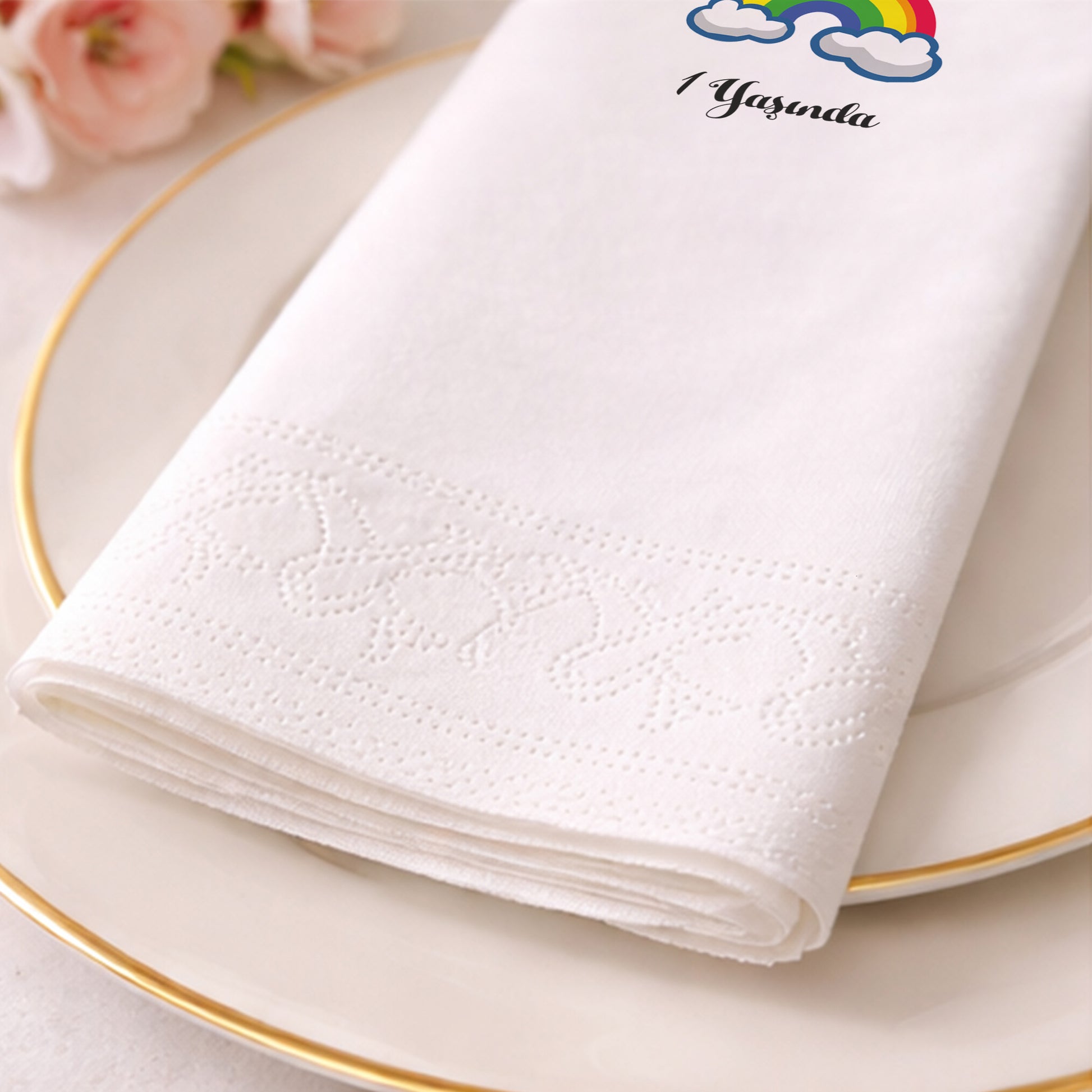 Bebeğinizin ilk yaş gününü, neşe saçan bir gökkuşağı ile kutlayın! "1 Yaşında" ibaresiyle bu dönüm noktasını öne çıkaran peçeteler, canlı renkleri ve bulut detaylarıyla partinize bahar havası getiriyor. Masumiyeti ve mutluluğu simgeleyen bu tasarım, bir yaş partilerinde ihtiyaç duyduğunuz tüm enerjiyi masanıza taşır. Kaliteli dokusu sayesinde hem dekoratif bir obje hem de kullanışlı bir gereç olarak görev yapar. Fotoğraflarda harika bir arka plan detayı oluşturan bu peçeteler, konsept partilerinizin tamamlayıcısıdır. Misafirlerinize sunduğunuz pastaların yanında en şık eşlikçi olacak bu ürünle, bebeğinizin ilk doğum gününü masalsı bir atmosferde gerçekleştirebilirsiniz. Hijyenik ve pratik kullanımıyla ebeveynlere kolaylık sağlar.