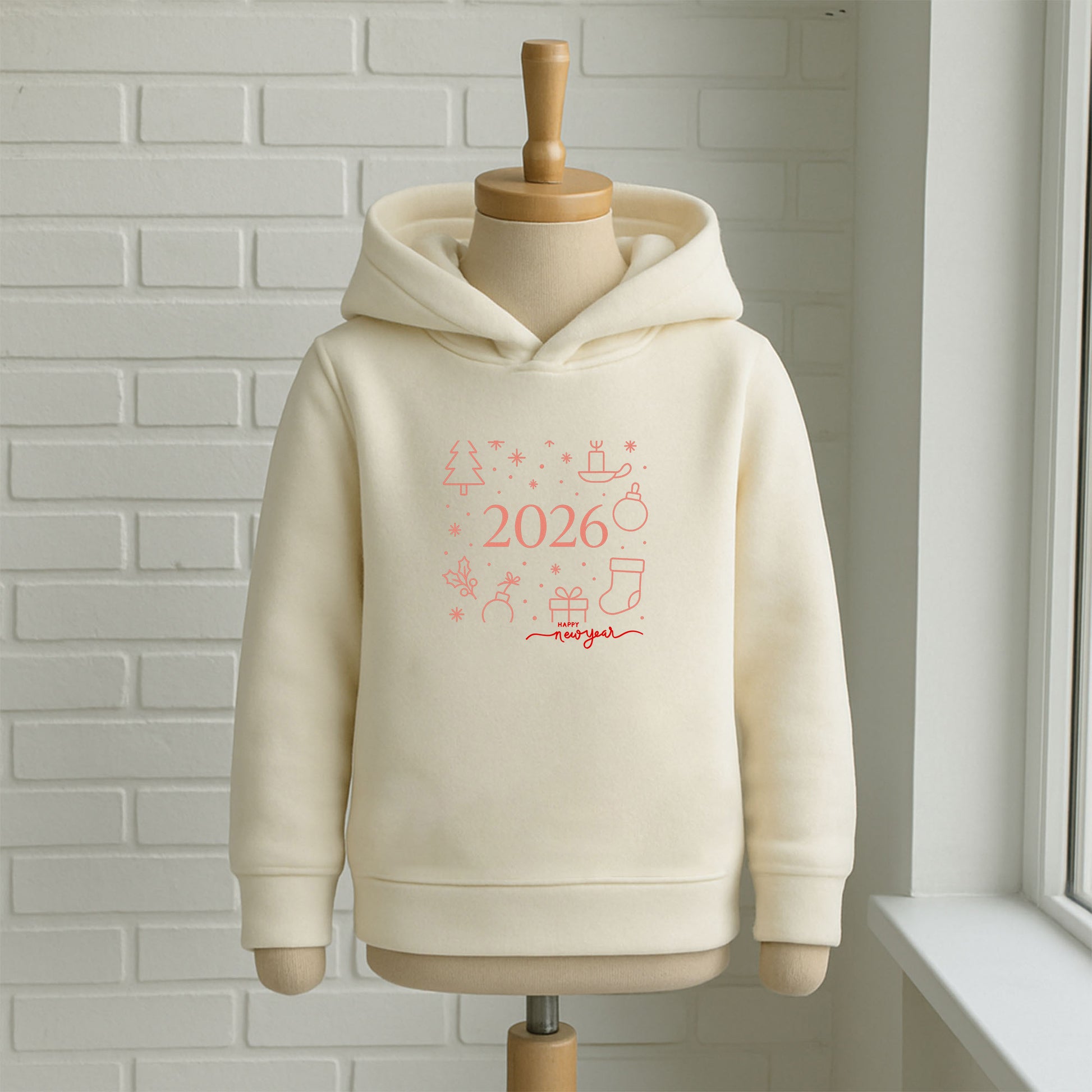 2026 yazılı bu minimal yılbaşı temalı çocuk sweatshirt’ü, sade ve modern tasarımıyla her kombine uyum sağlar. Yumuşak şardonlu iç yapısı kış aylarında sıcak tutar. Cildi tahriş etmeyen kumaşı sayesinde çocuklar için güvenlidir. Dayanıklı baskısı uzun süre solmadan kullanılabilir.