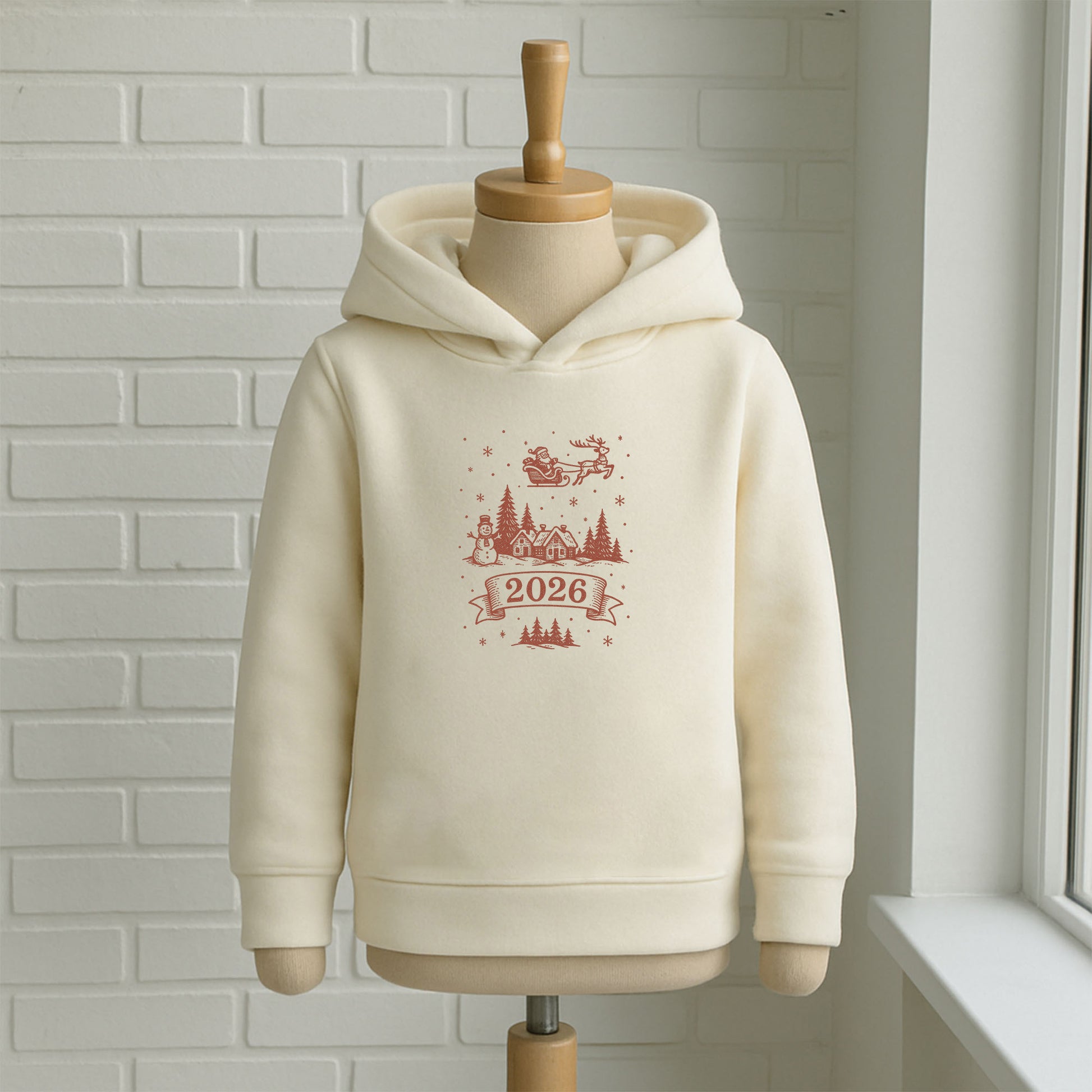 2026 yılbaşı temalı bu özel köy desenli çocuk sweatshirt’ü, masalsı yılbaşı atmosferini sıcacık bir konforla buluşturur. Yumuşak şardonlu iç yüzeyi sayesinde kış aylarında sıcak tutar. Cildi tahriş etmeyen kumaşı çocuklar için güvenlidir. Dayanıklı ve canlı baskısı uzun süre solmadan kullanılabilir.