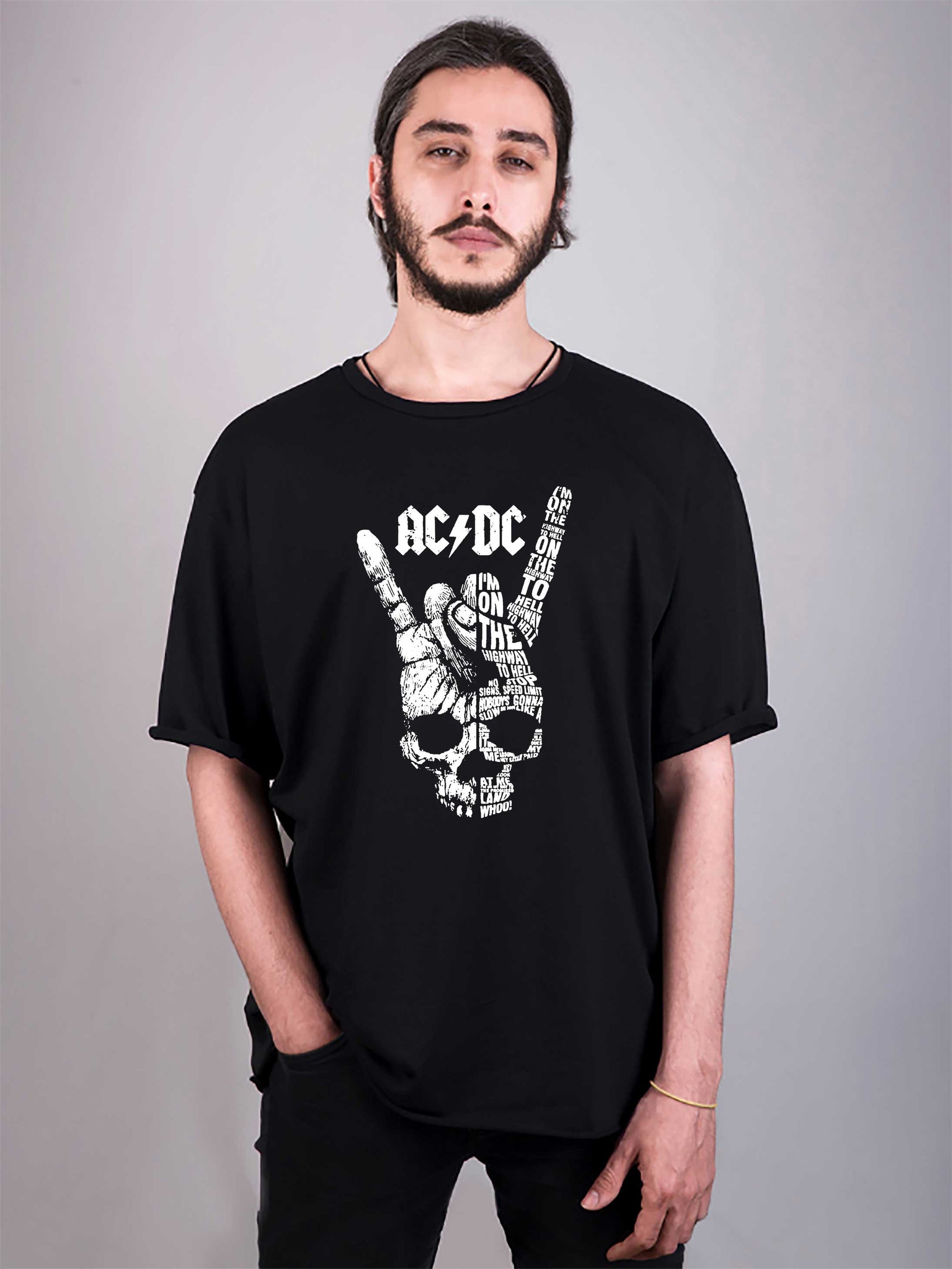 acdc baskılı oversize tişört