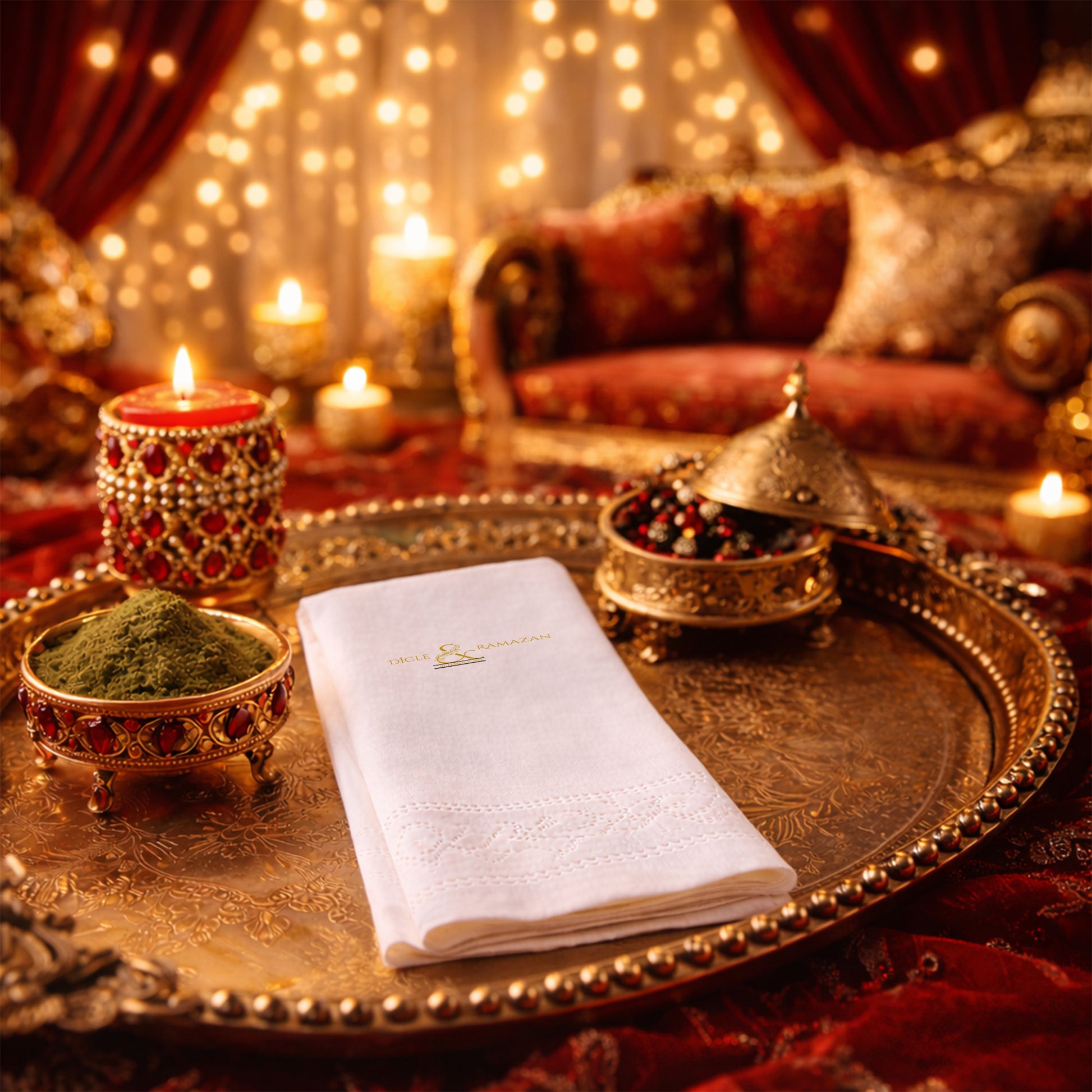 Altın Amblemli Özel Gün Peçetesi – Şık Düğün ve Nişan Tasarımı