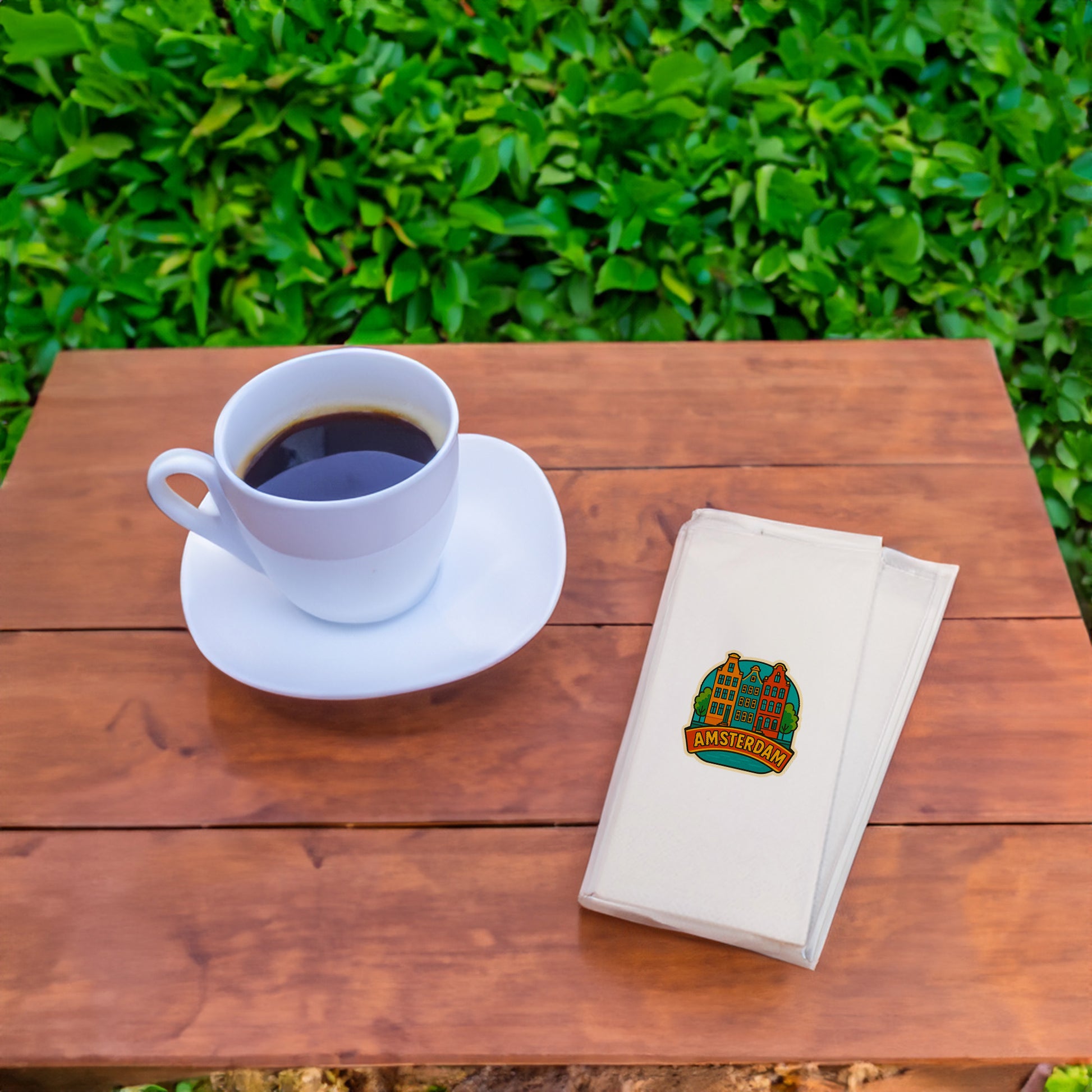 Amsterdam temalı bu özel tasarım peçete, sofralarda Hollanda şehir estetiğini ve neşeli yaşam stilini bir araya getirir.