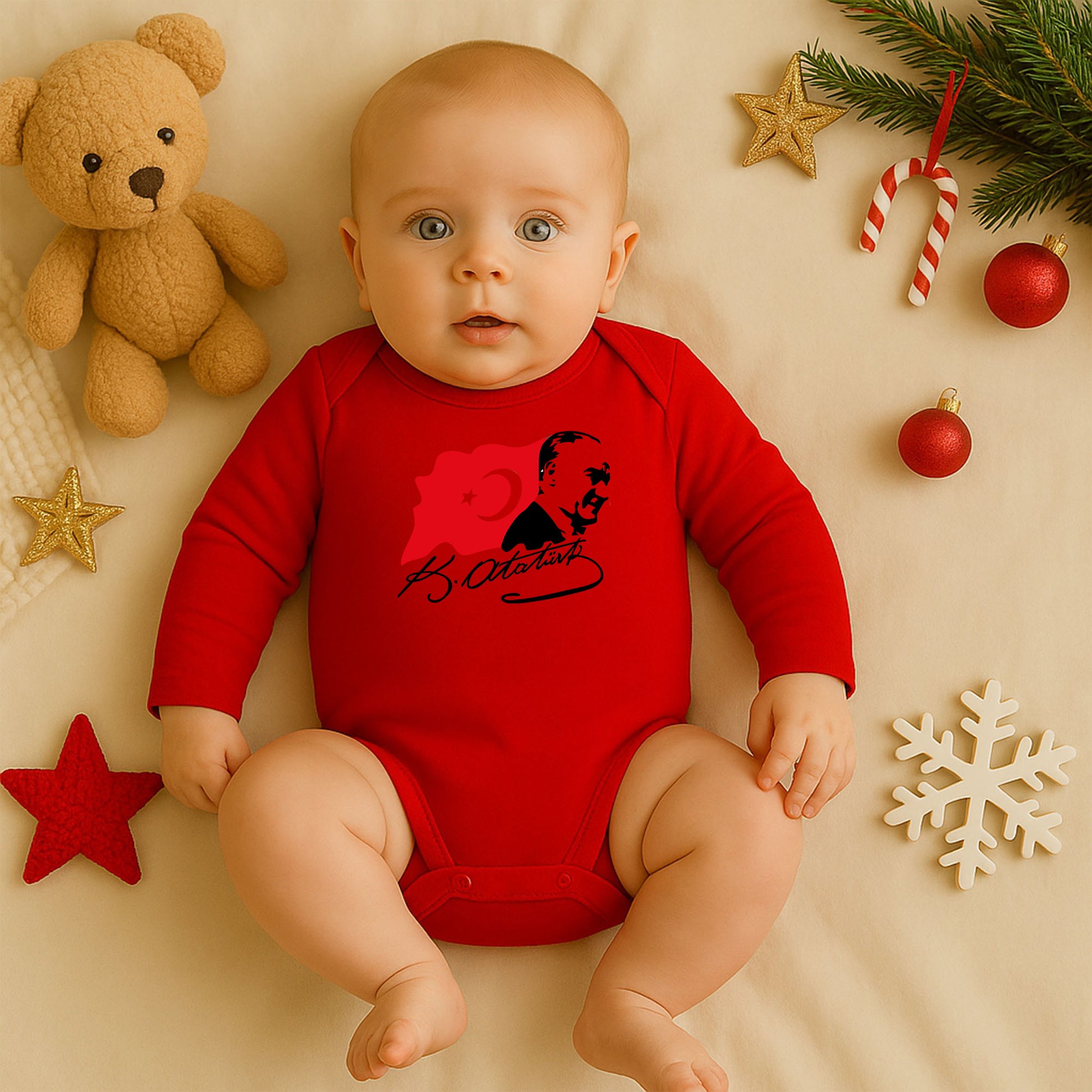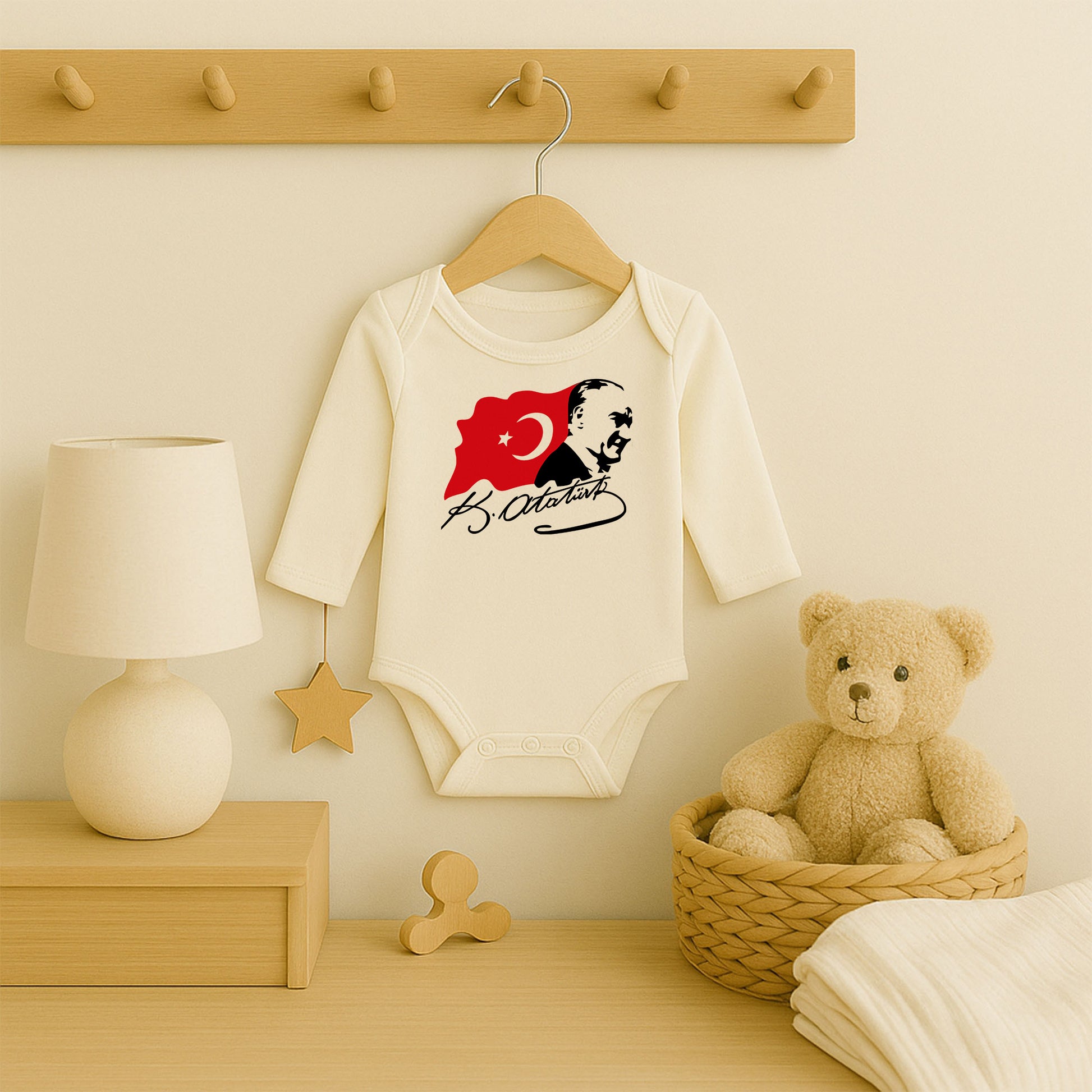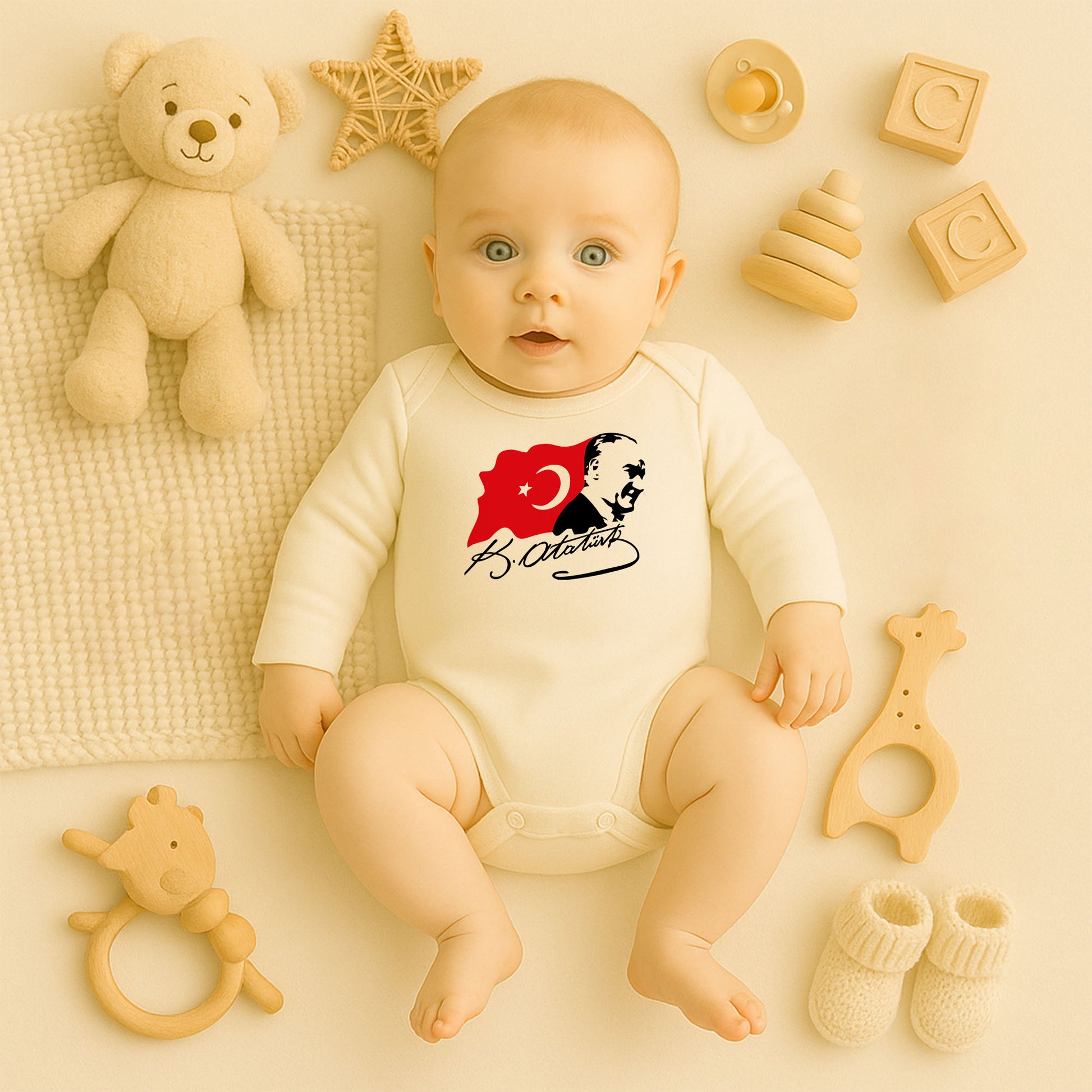 Atatürk Silüeti & Türk Bayrağı Bebek Zıbını | 1–36 Ay