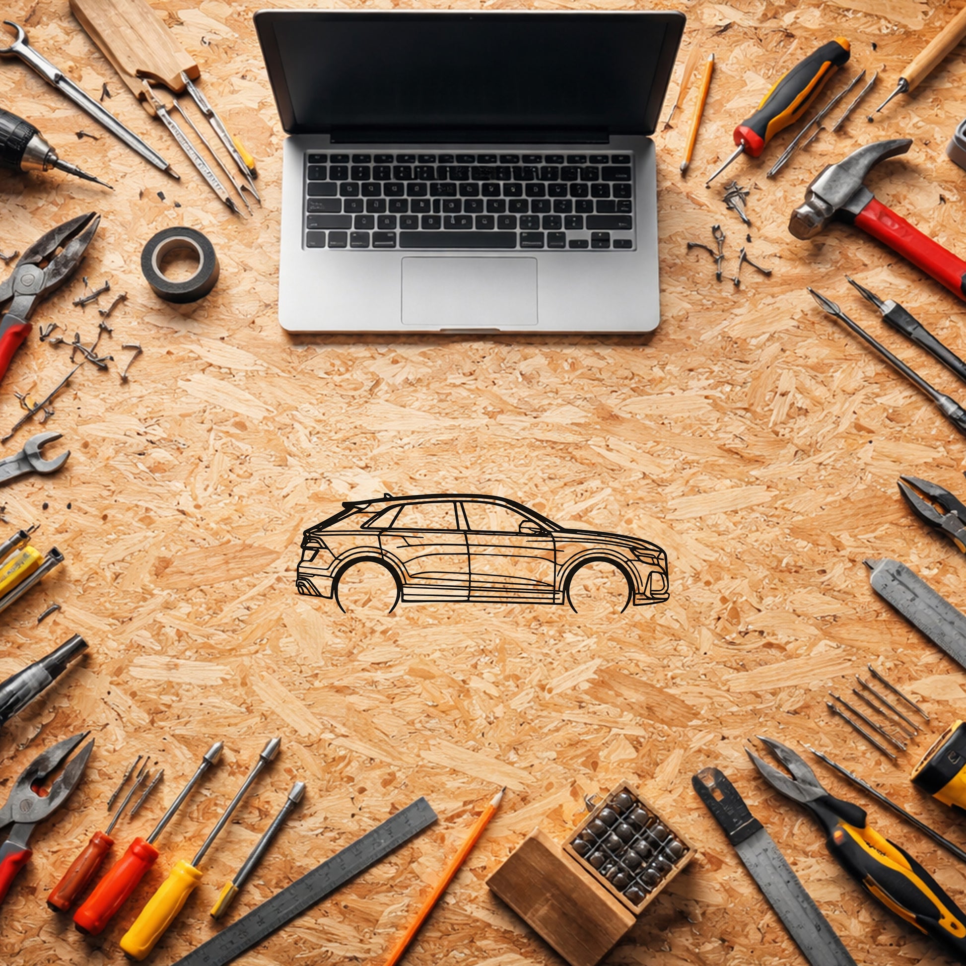 Audi Q8 metal duvar tablosu, lazer kesim detaylara sahip metal tasarımı ve elektrostatik siyah boya kaplaması ile net ve temiz bir görünüm sunar. Minimal çizgileri sayesinde bulunduğu ortama kolayca uyum sağlar ve dekorasyonu yormadan tamamlar. Hafif yapısı sayesinde duvara kolayca monte edilebilir ve iç mekân kullanımında bakım gerektirmeden uzun süre estetik görünümünü korur. Keskin hatlarla oluşturulan siluet, aracın güçlü ve modern karakterini net biçimde yansıtır.