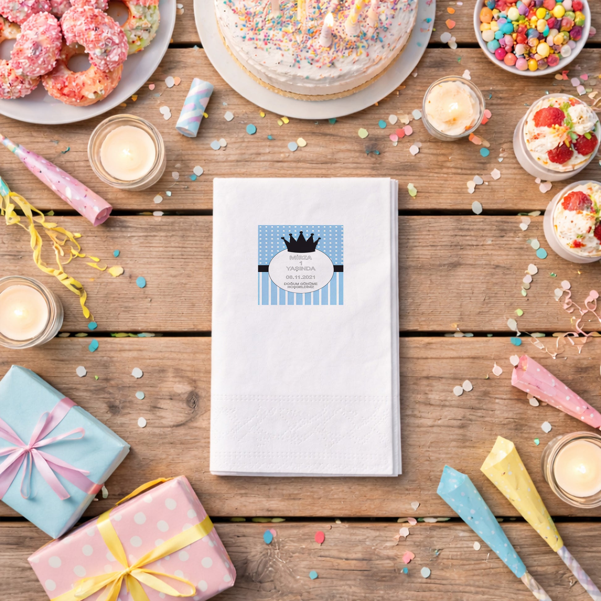 Kidzia baskılı peçeteler premium, çift katlı ve ipeksi dokuya sahip peçetelerden üretilir. Hem sunumlarda hem davetlerde estetik ve dayanıklı bir kullanım sunar.