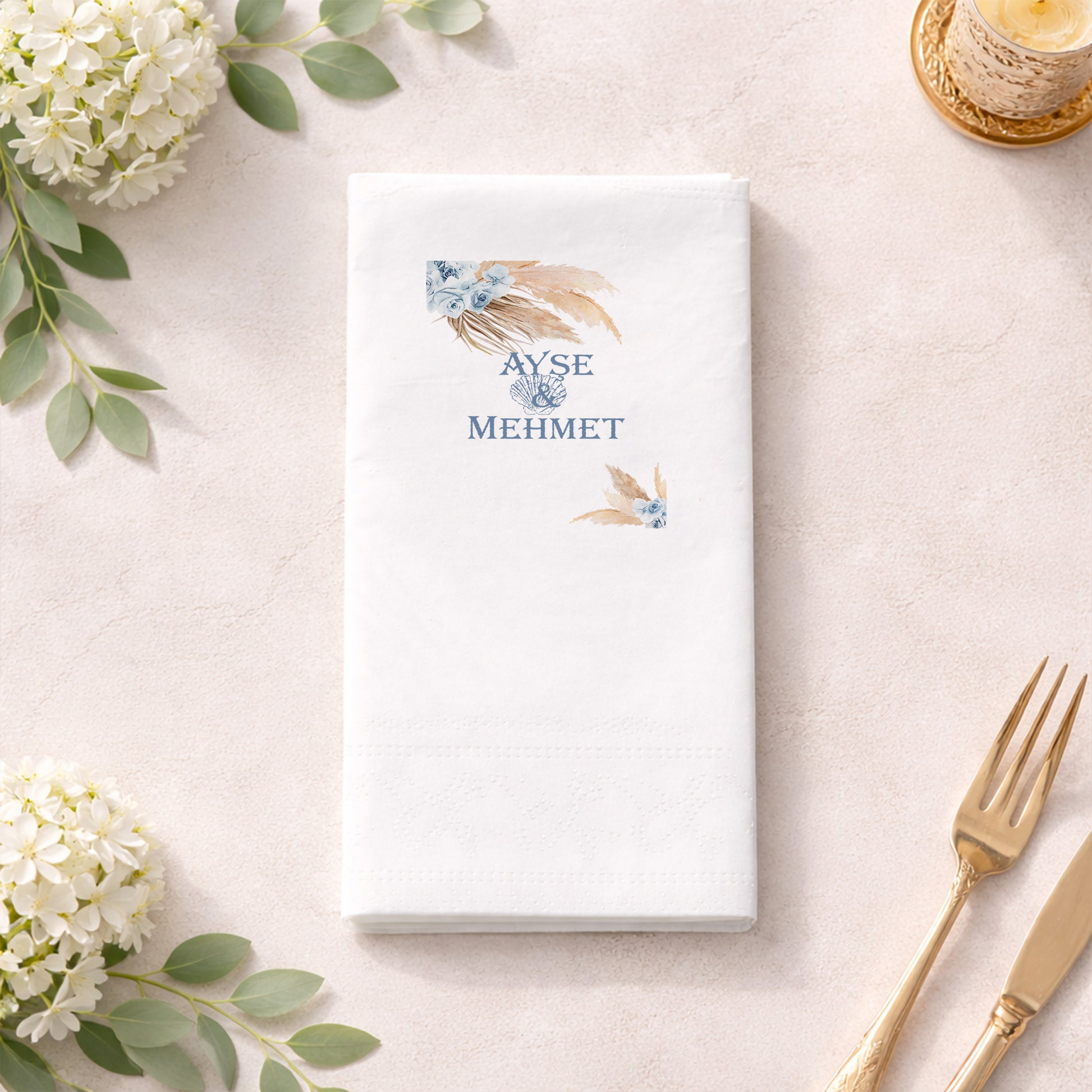 Ayşe & Mehmet Bohem Stil Rose ve Mavi Çiçek Desenli Kişiye Özel Baskılı Peçete