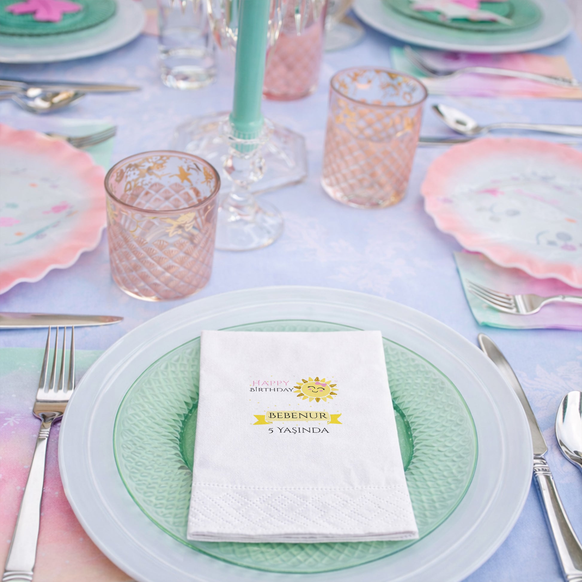 Bebenur 5 Yaş Gülen Güneş Desenli Eğlenceli Doğum Günü Peçetesi
