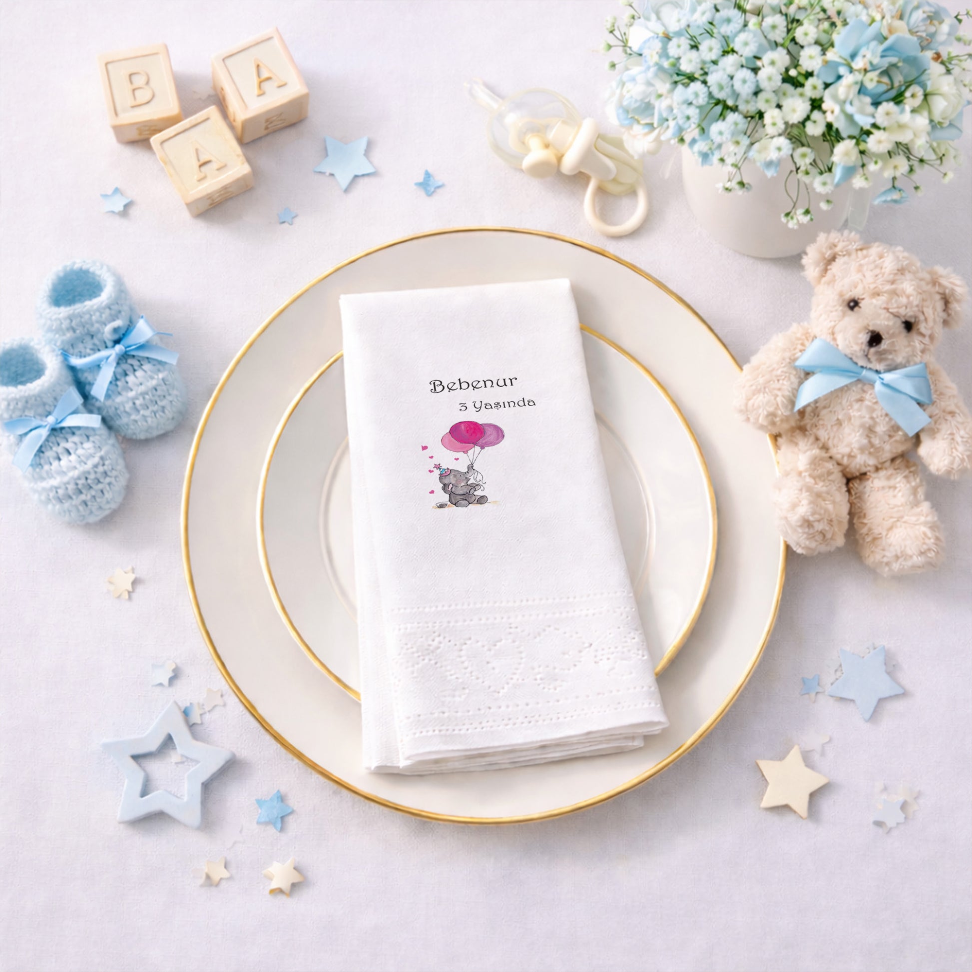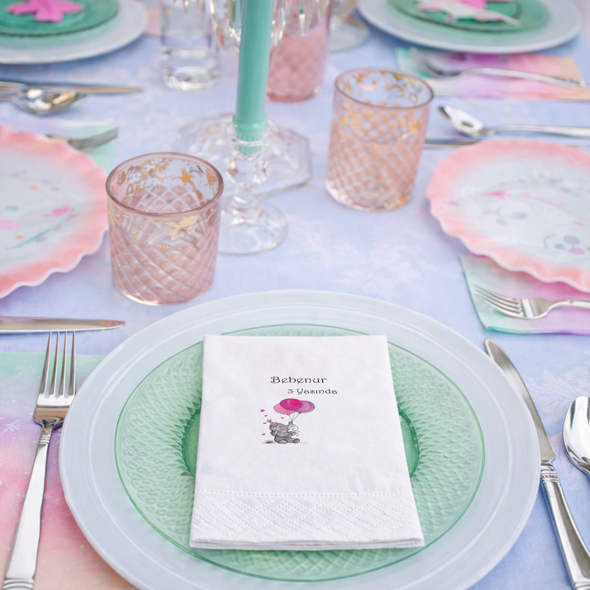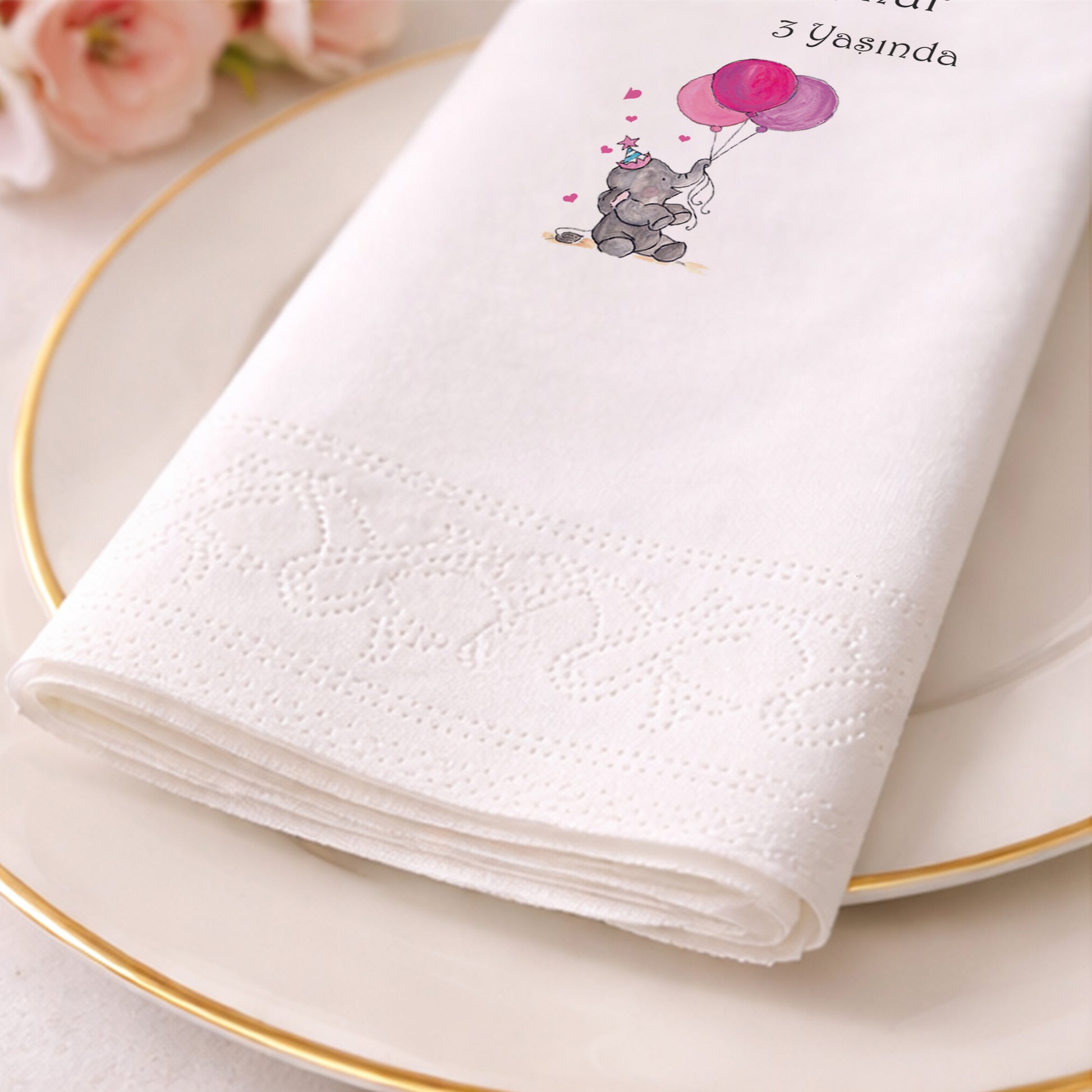 Pembe Balonlu Fil Figürlü Bebenur 3 Yaş Peçetesi