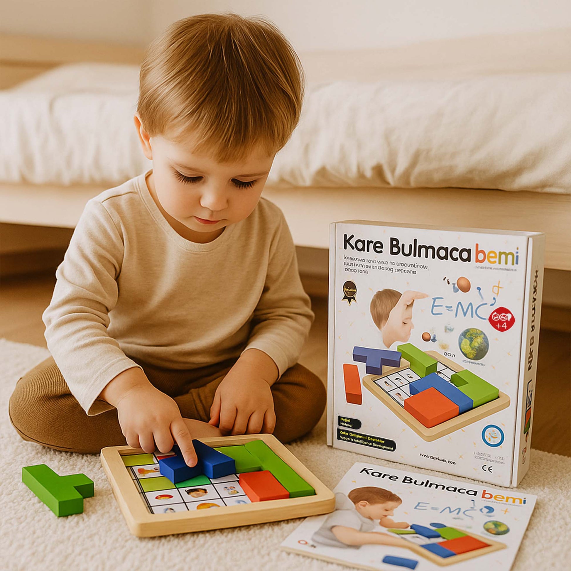 Bemi Kare Bulmaca, çocukların zeka, dikkat ve mantık yürütme becerilerini geliştiren eğitici bir kutu oyunudur. 5+ yaş için mükemmel seçim!