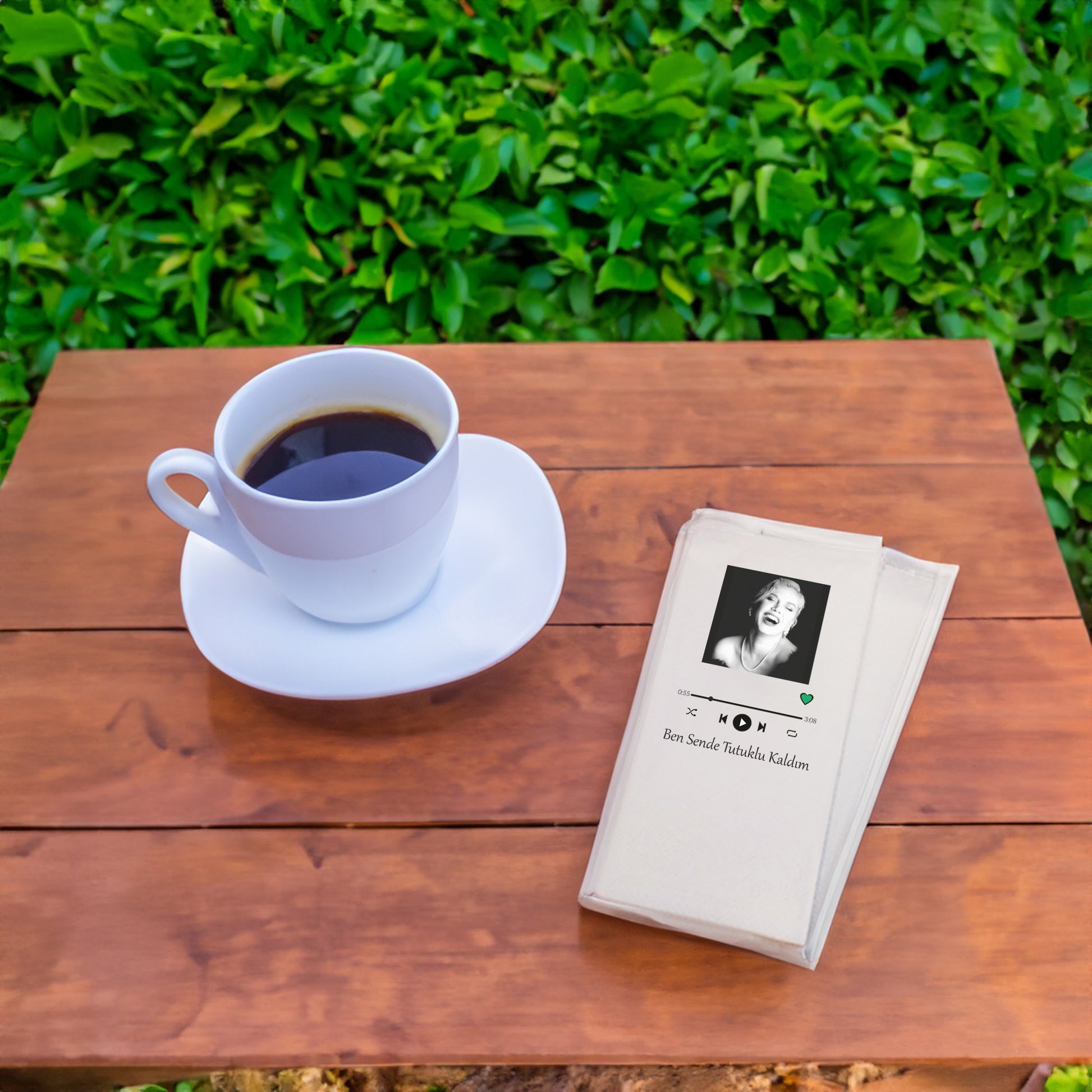 “Ben Sende Tutuklu Kaldım” şarkısının çalar ekran tasarımıyla hazırlanmış bu özel baskılı peçete; ister günlük kullanıma ister özel davetlerine nostaljik, modern ve duygusal bir hava katar.