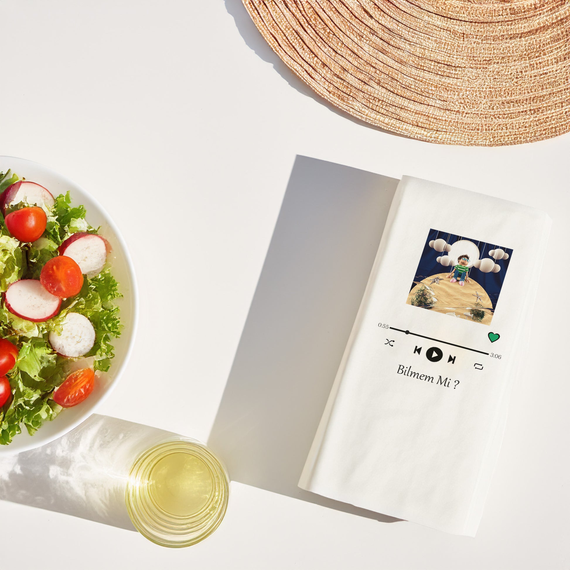“Bilmem Mi?” şarkısından ilham alınarak hazırlanan bu baskılı peçete; modern çizgisi, müzik oynatma çubuğu detayı ve ikonik renkleriyle sofralara bambaşka bir hava getiriyor.