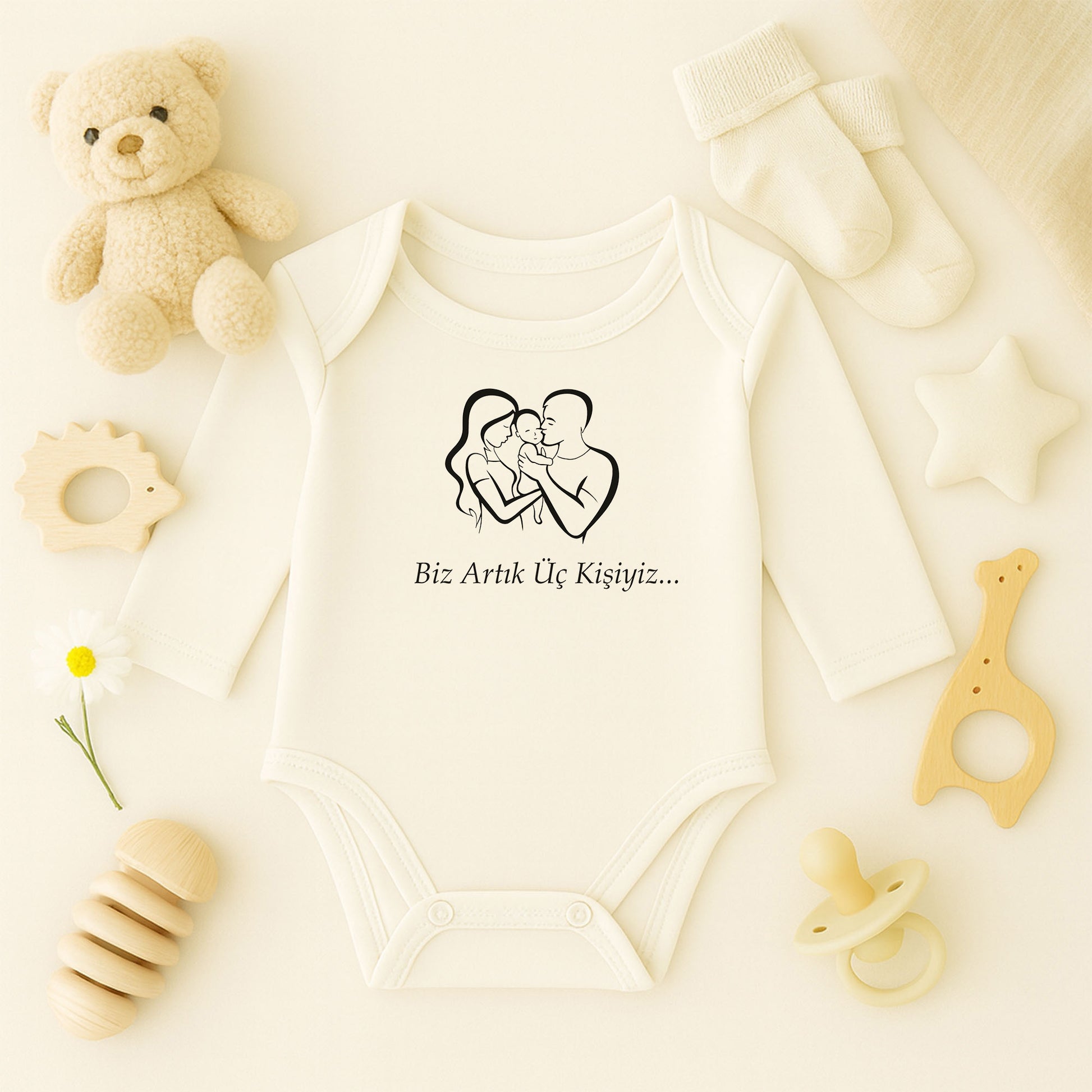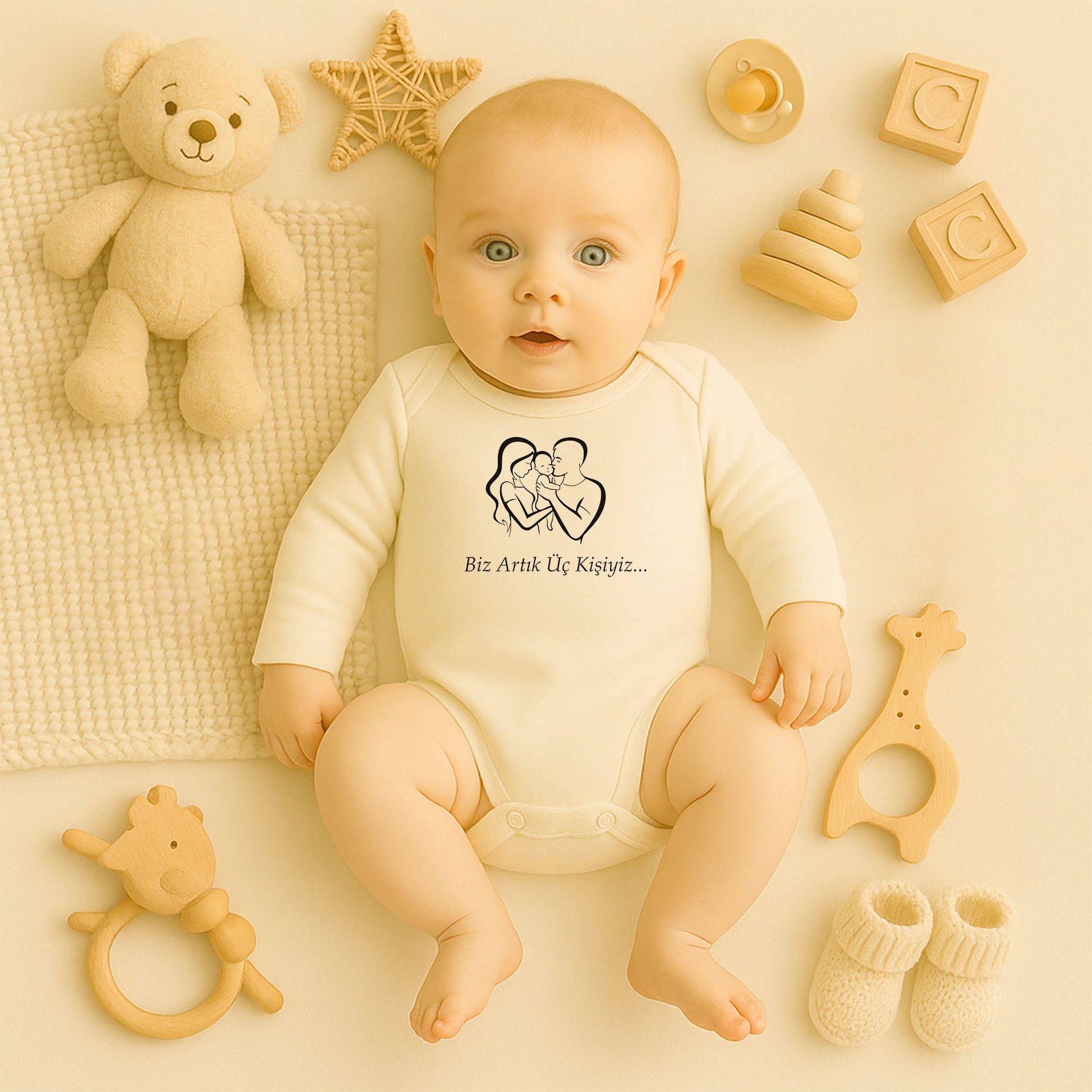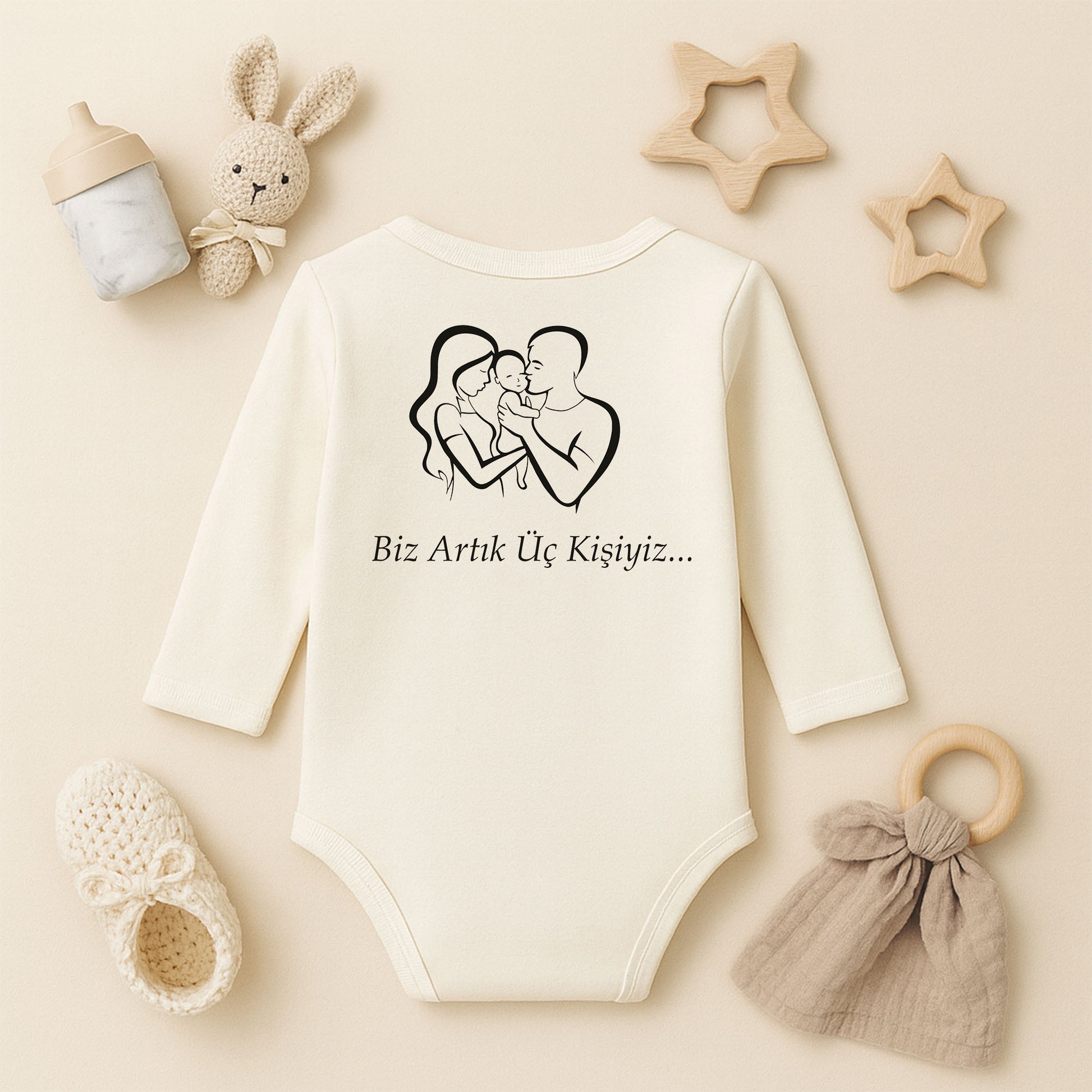 Kişiye Özel Bebek Zıbını – Biz Artık Üç Kişiyiz Tasarım | 1–36 Ay