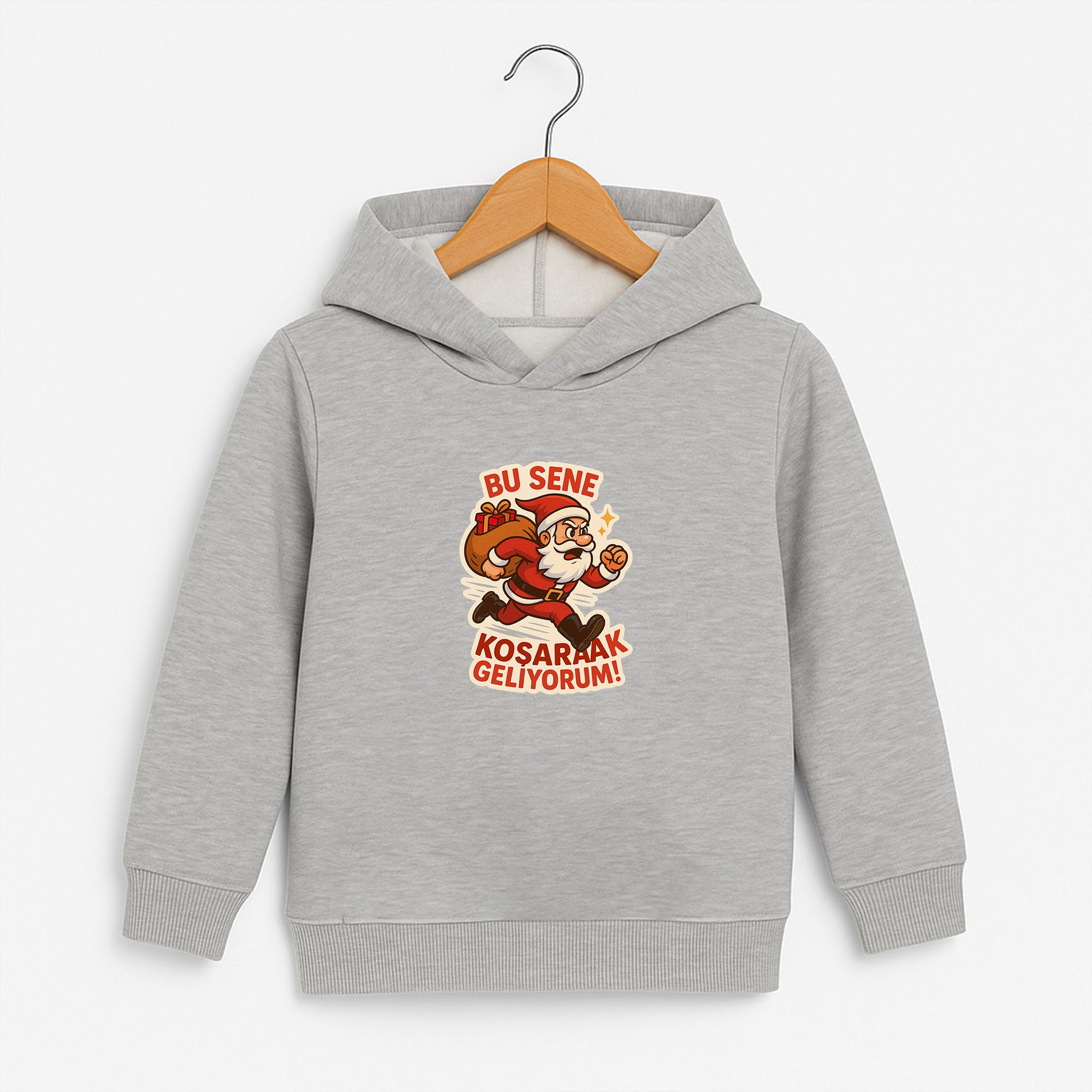 Bu Sene Koşarak Geliyorum Noel Baba Desenli Çocuk Sweatshirt