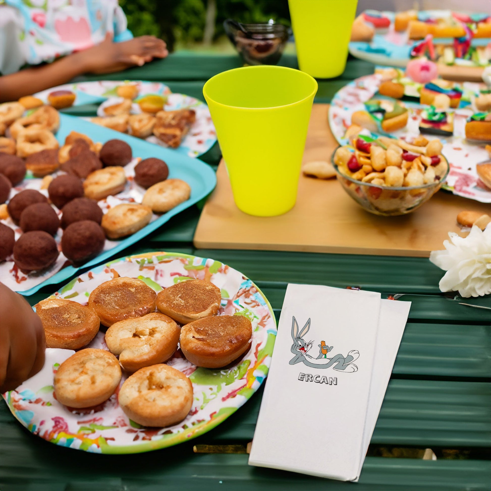 Her anınıza anlam katan ve duygularınızı yansıtan özel bir dokunuş: "Bugs Bunny " Baskılı Peçeteler! Doğum günü, Babyshower,Diş Buğdayı ve Sünnet Organizasyonlarınıza daha anlamlı hale getirecek ve sevdiklerinizle paylaşacağınız samimi anları renklendirecek.