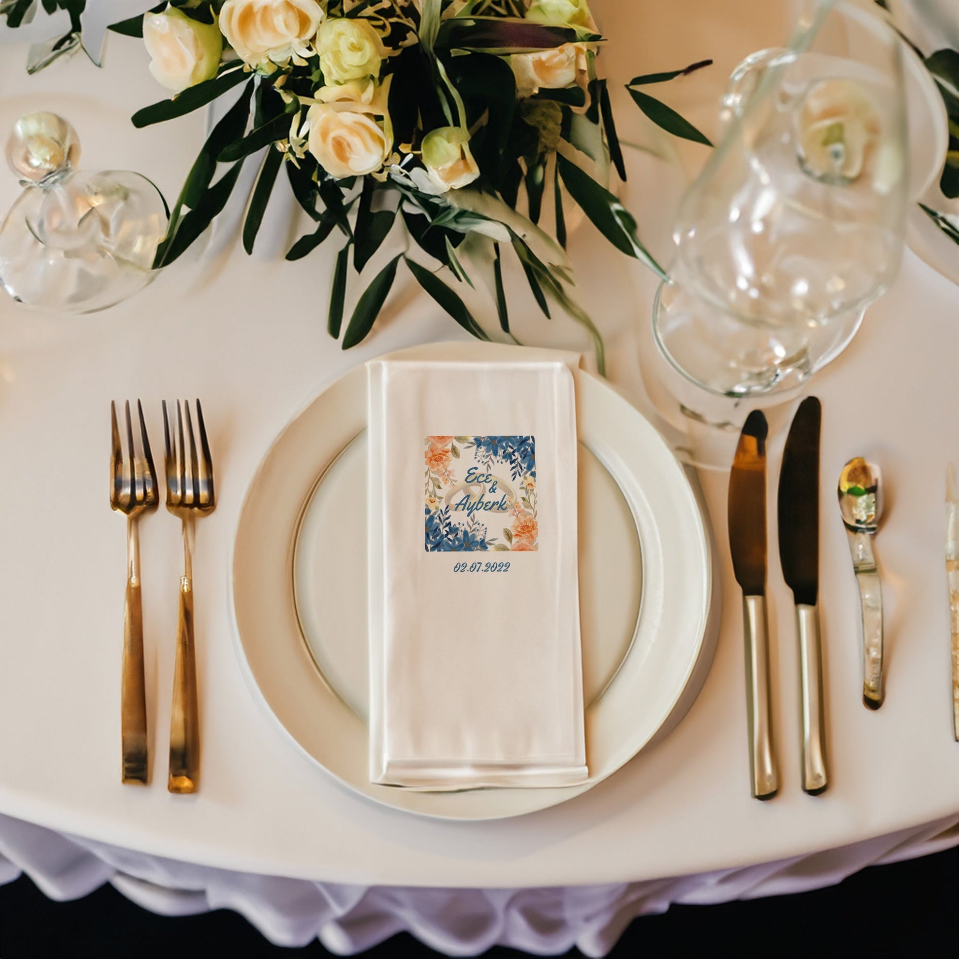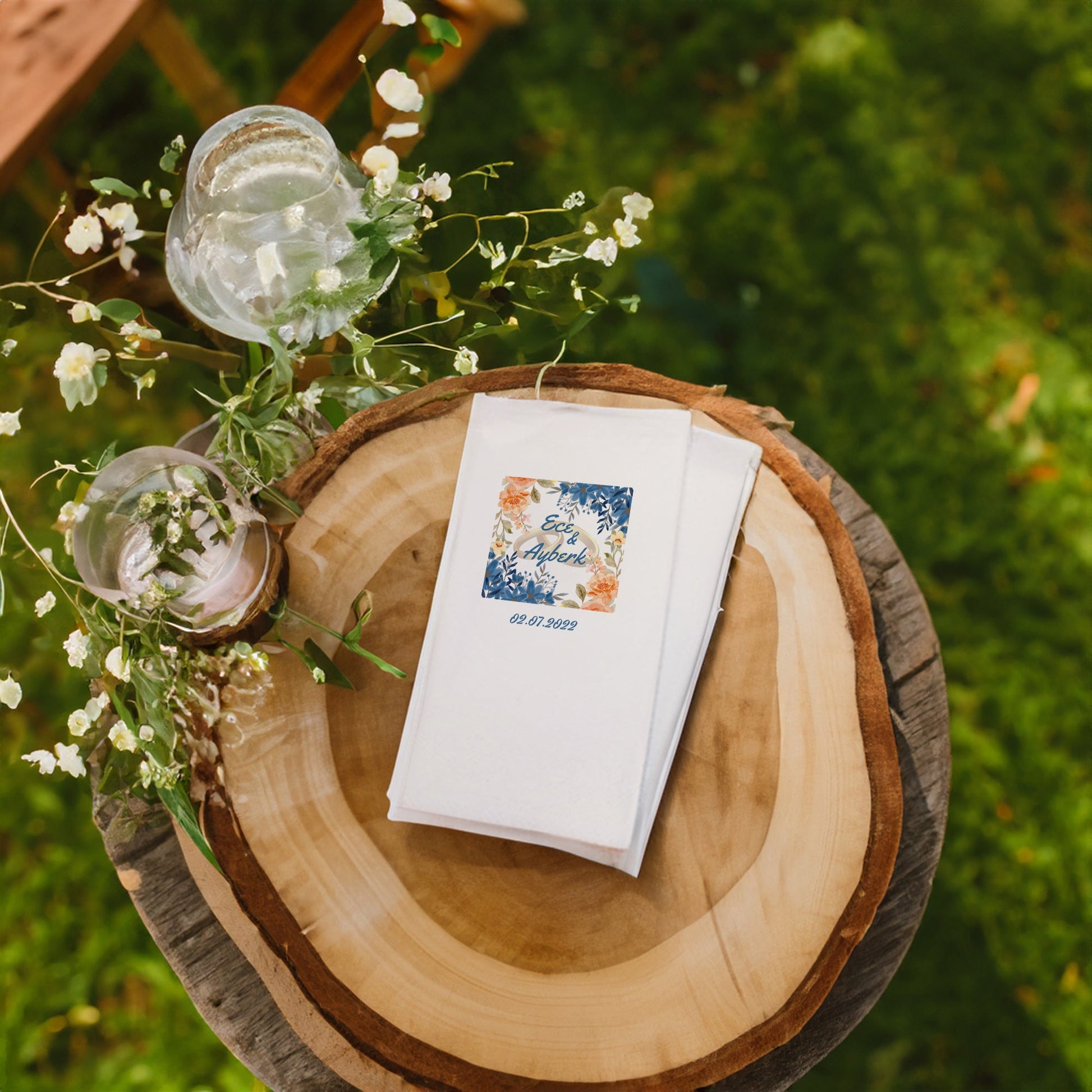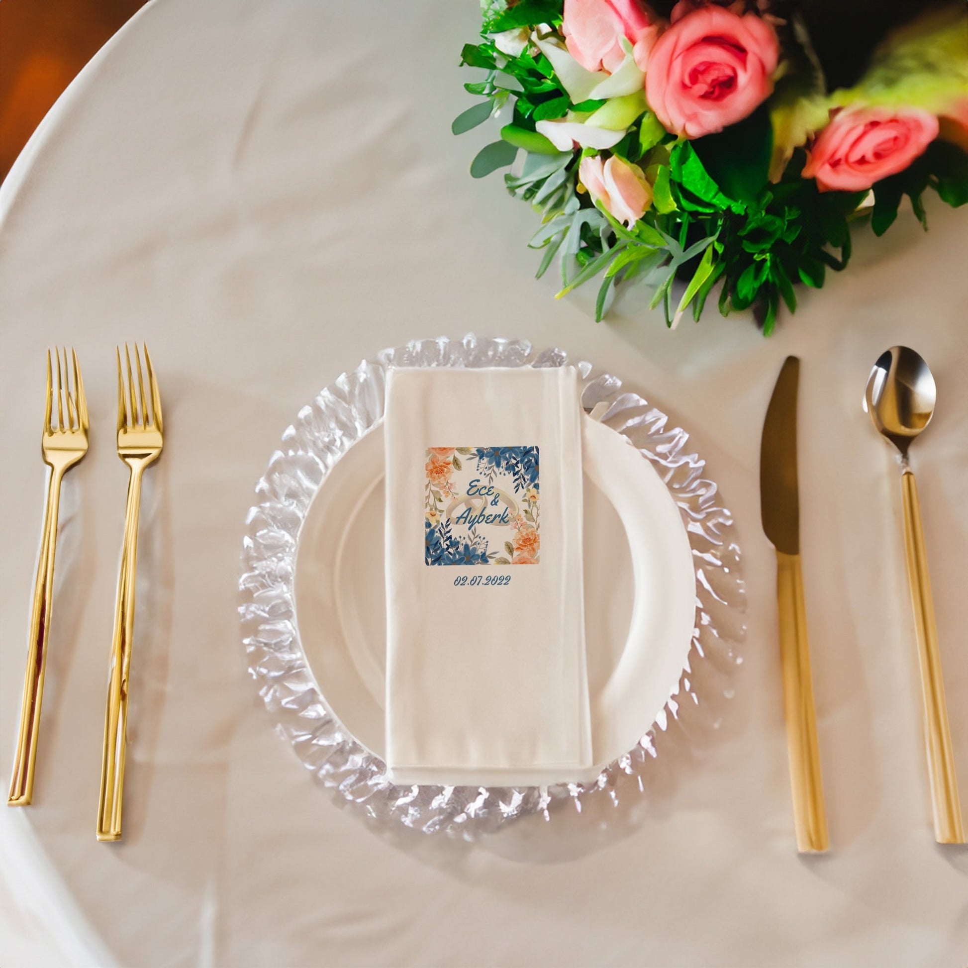 Özel günlerinizi unutulmaz kılacak zarif bir dokunuş: Renkli Arkaplanlı Düğün, Nişan, Söz ve Kına Peçetesi Seti!