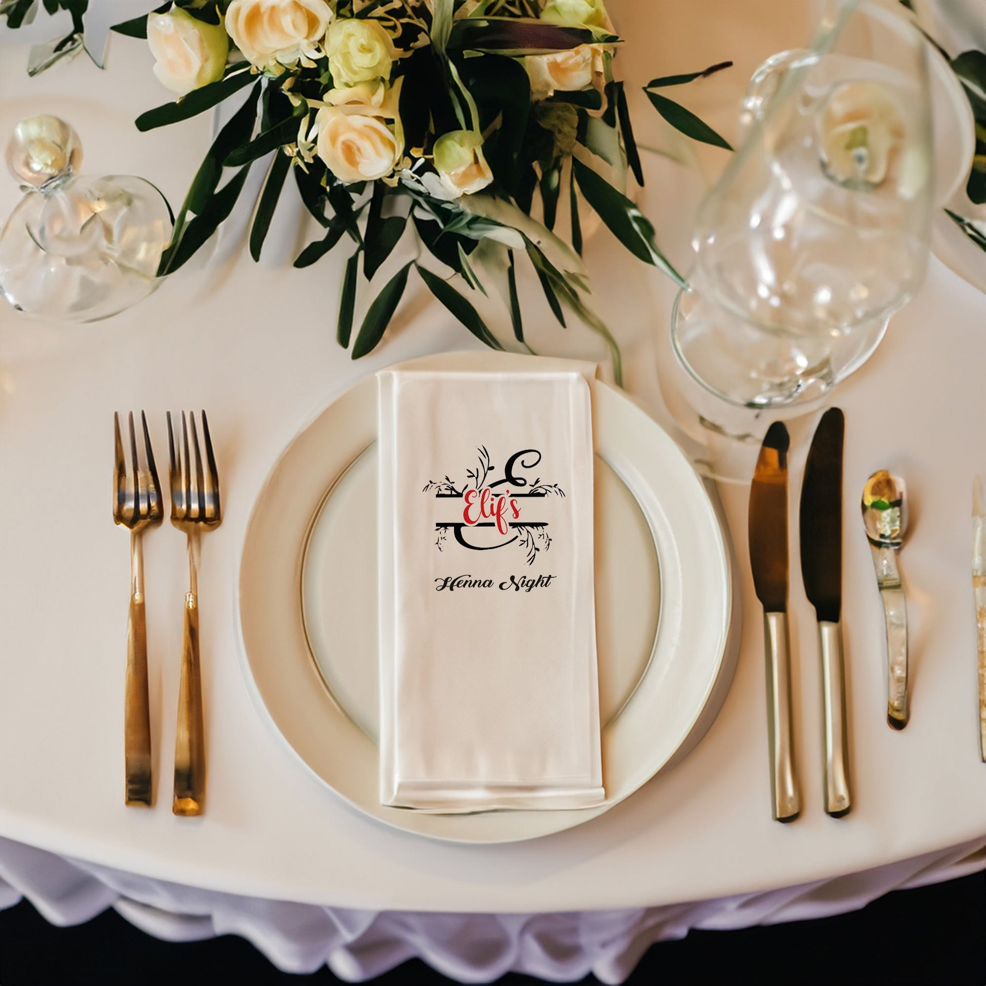 Özel günlerinizi unutulmaz kılacak zarif bir dokunuş: Harf Ve İsim Düğün, Nişan, Söz ve Kına Peçetesi Seti!