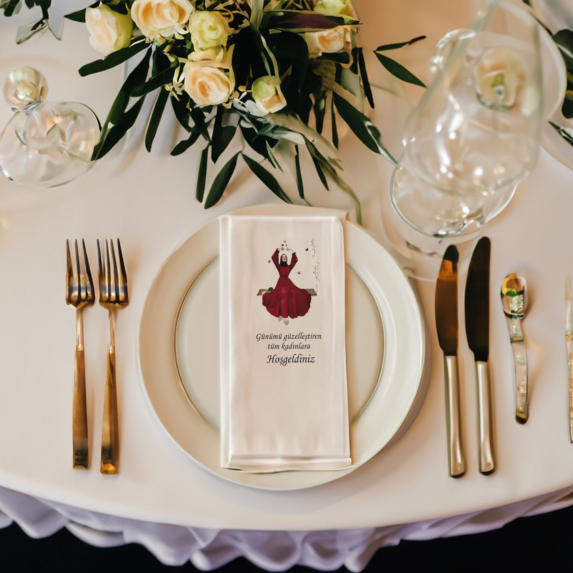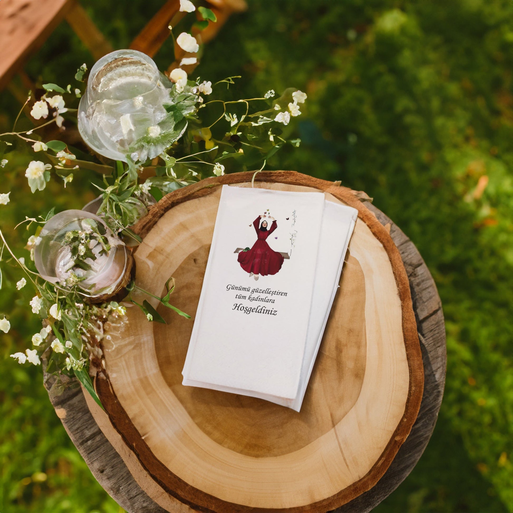 Özel günlerinizi unutulmaz kılacak zarif bir dokunuş: Tesettür Detaylı Düğün, Nişan, Söz ve Kına Peçetesi Seti!