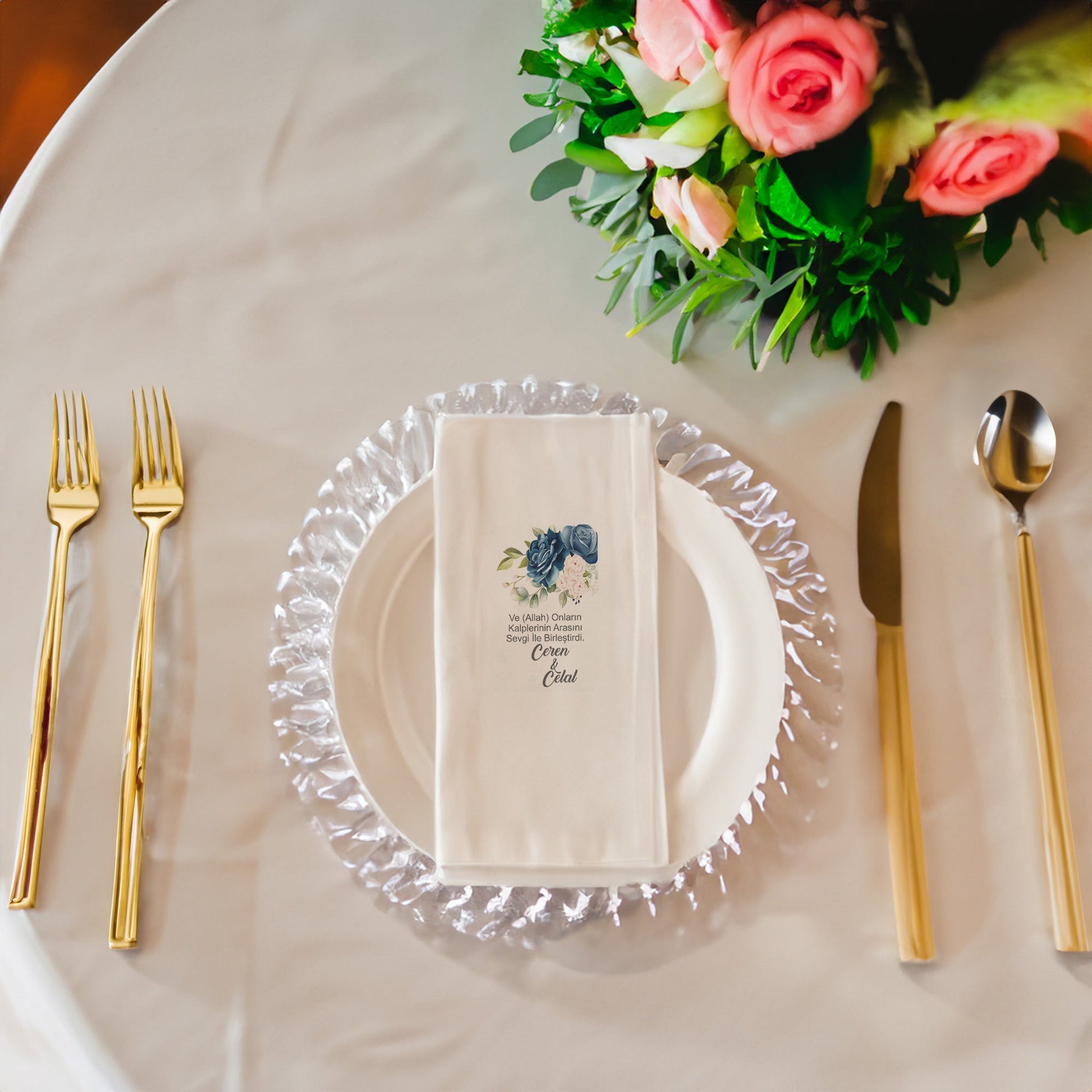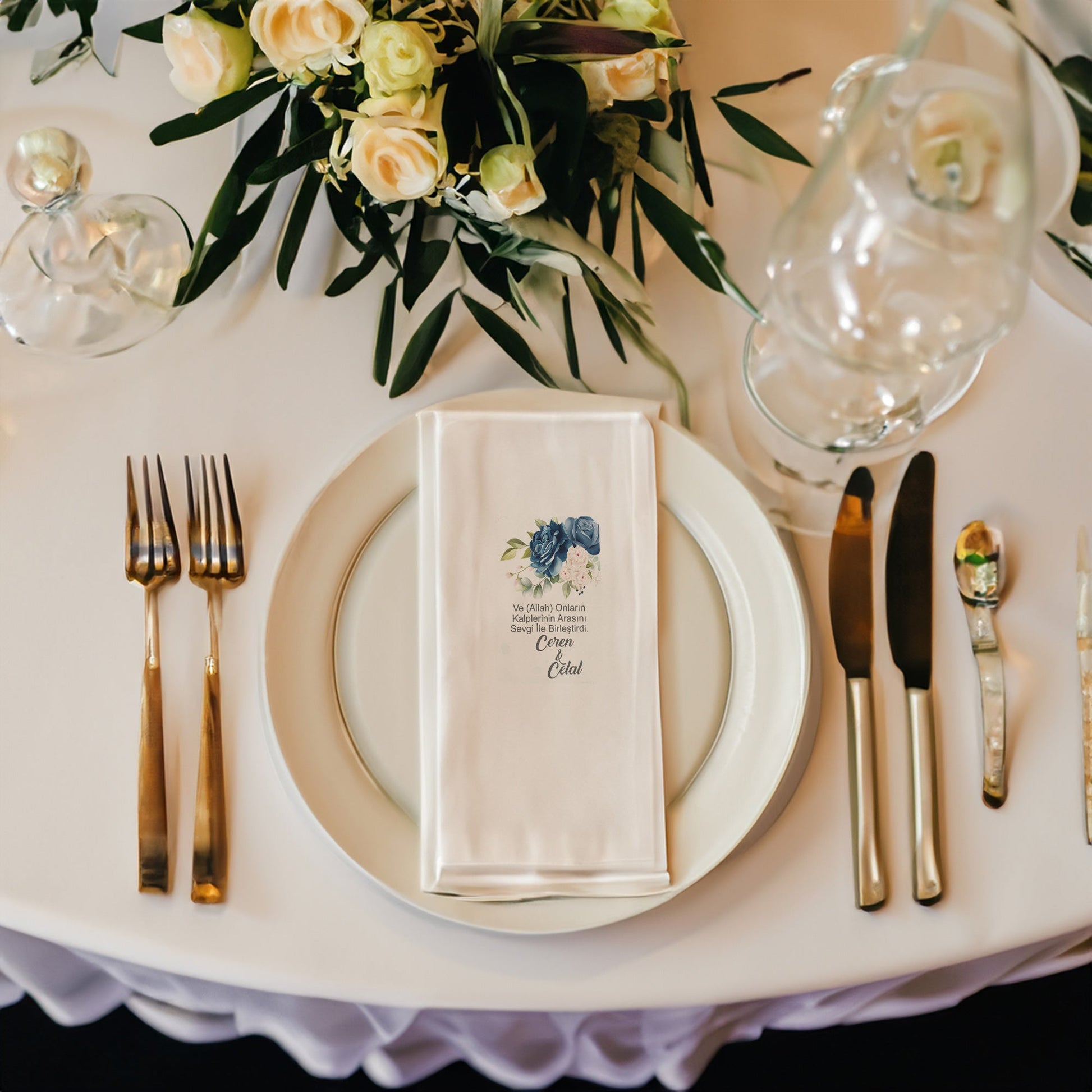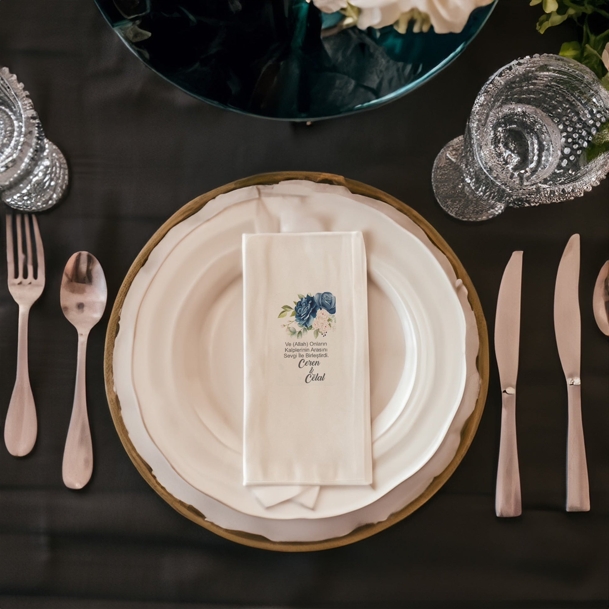 Özel günlerinizi unutulmaz kılacak zarif bir dokunuş: Mavi Gül Detaylı Düğün, Nişan, Söz ve Kına Peçetesi Seti!