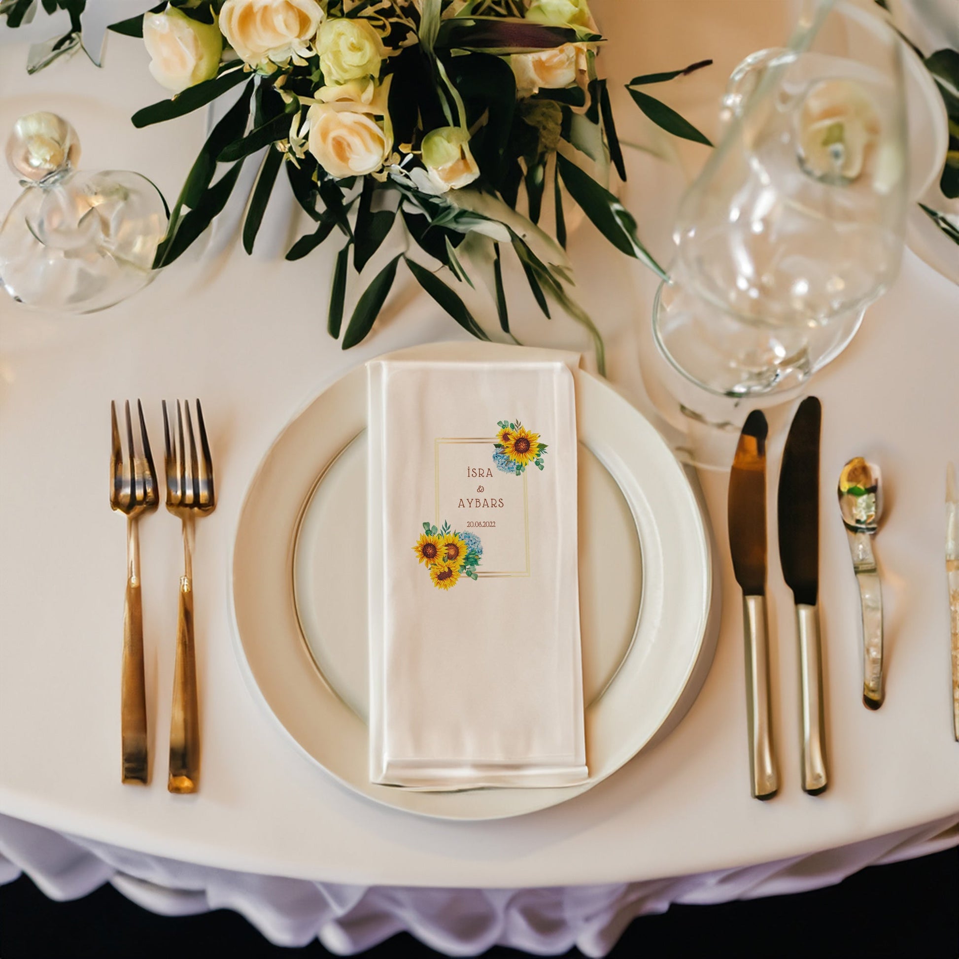Özel günlerinizi unutulmaz kılacak zarif bir dokunuş: Papatyalı Düğün, Nişan, Söz ve Kına Peçetesi Seti!