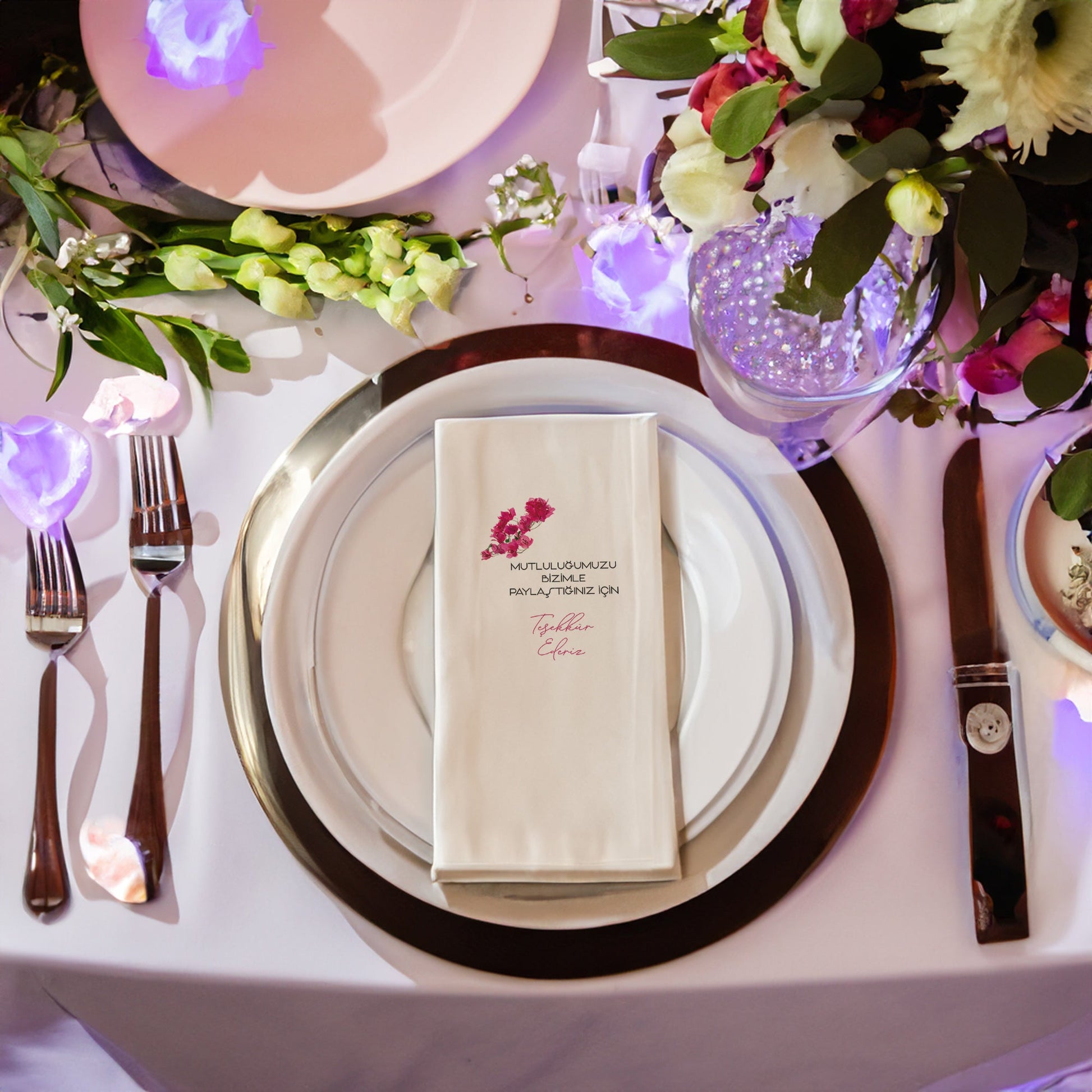 Özel günlerinizi unutulmaz kılacak zarif bir dokunuş: Begonvil Detaylı Düğün, Nişan, Söz ve Kına Peçetesi Seti!