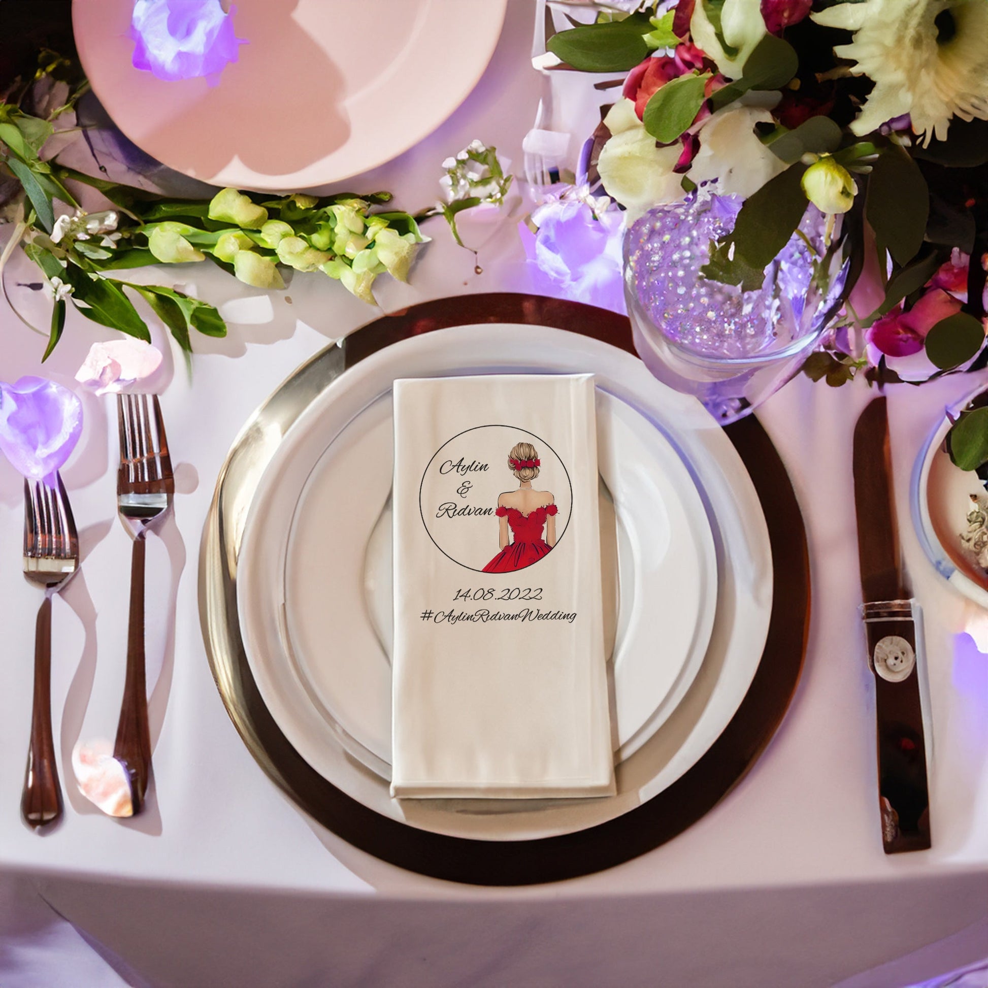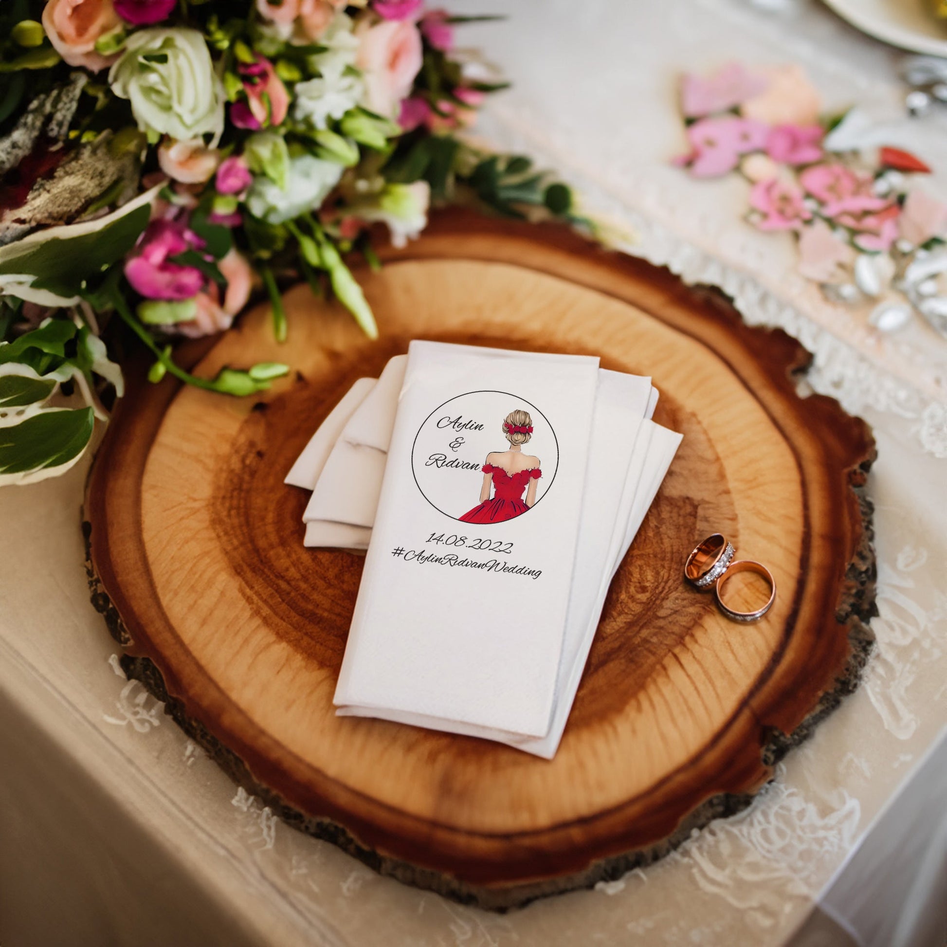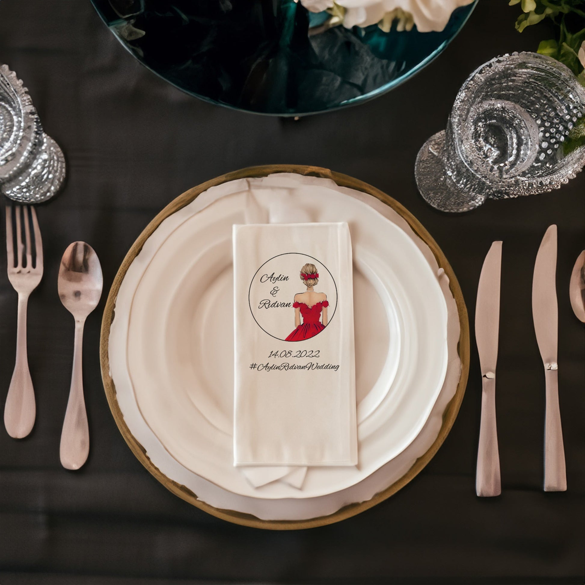 Özel günlerinizi unutulmaz kılacak zarif bir dokunuş: Kırmızılı Gelin Düğün, Nişan, Söz ve Kına Peçetesi Seti!