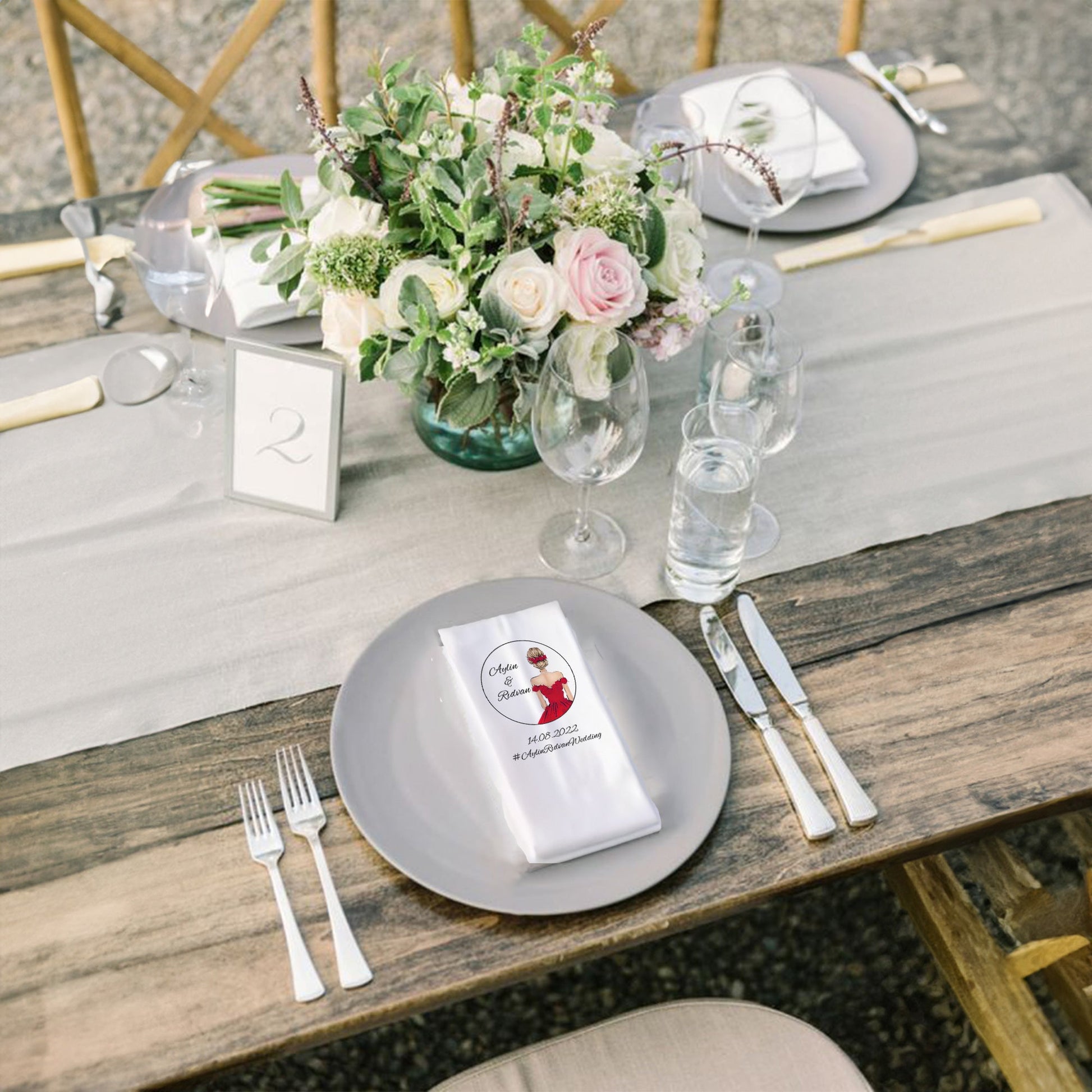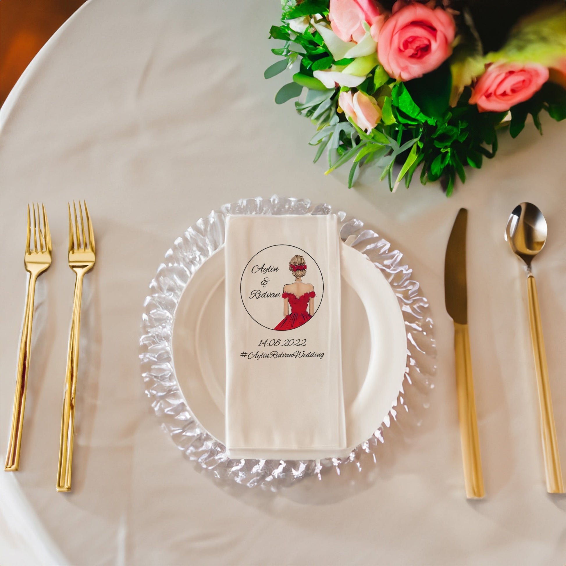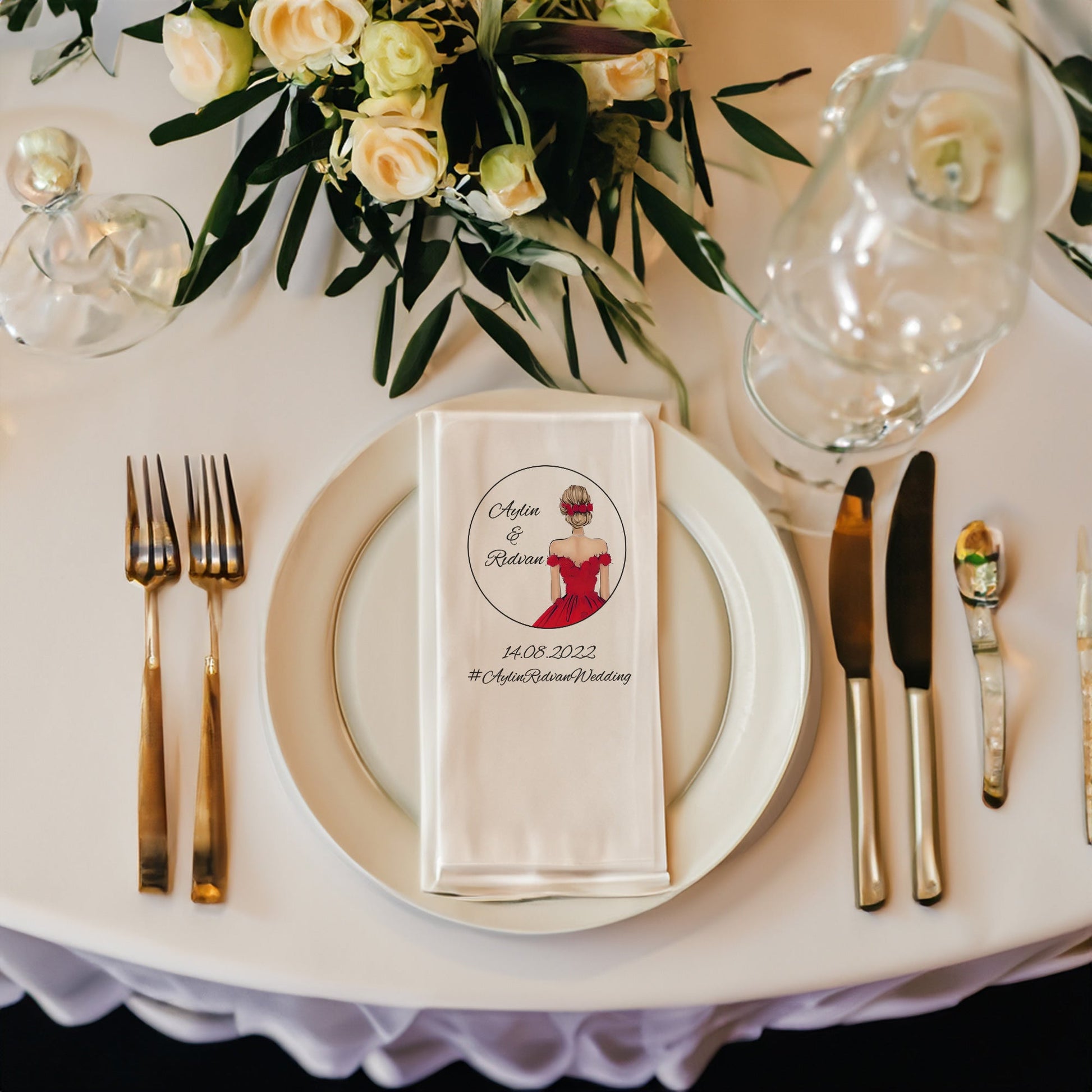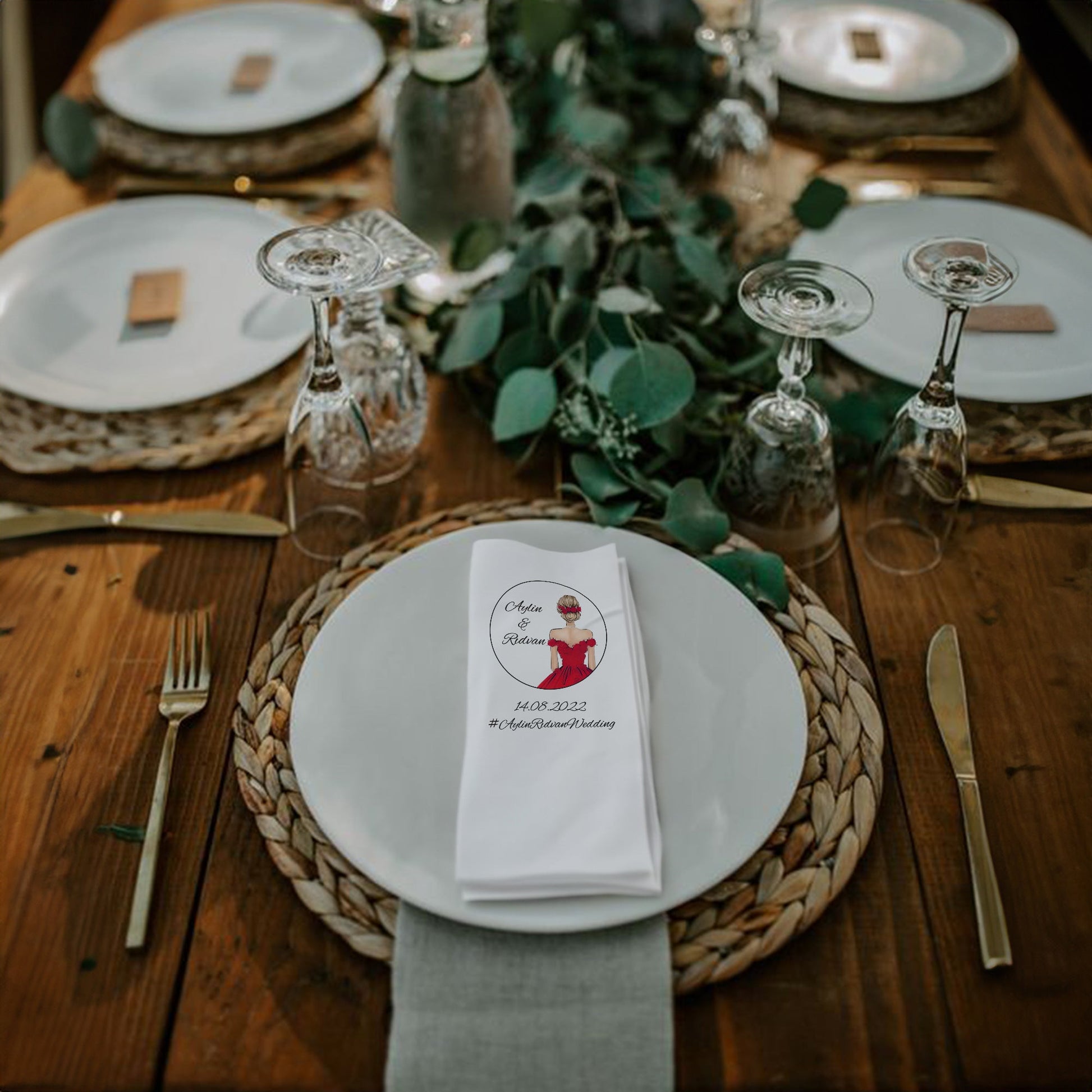 Özel günlerinizi unutulmaz kılacak zarif bir dokunuş: Kırmızılı Gelin Düğün, Nişan, Söz ve Kına Peçetesi Seti!