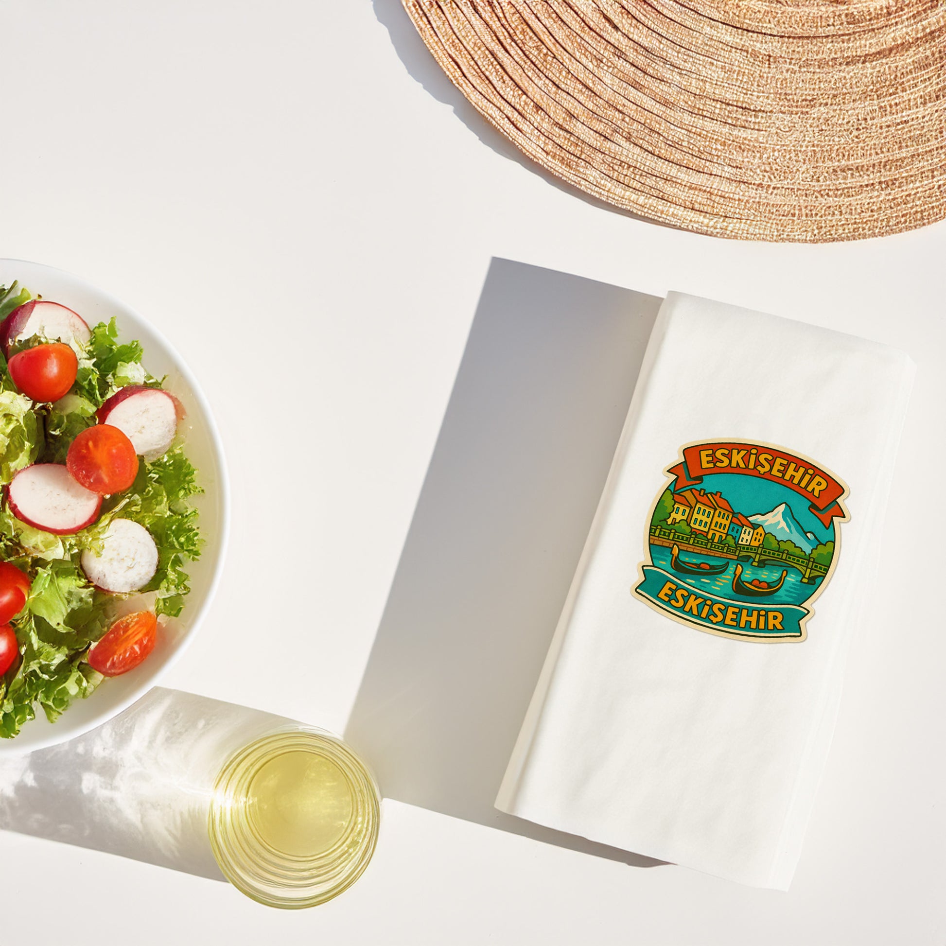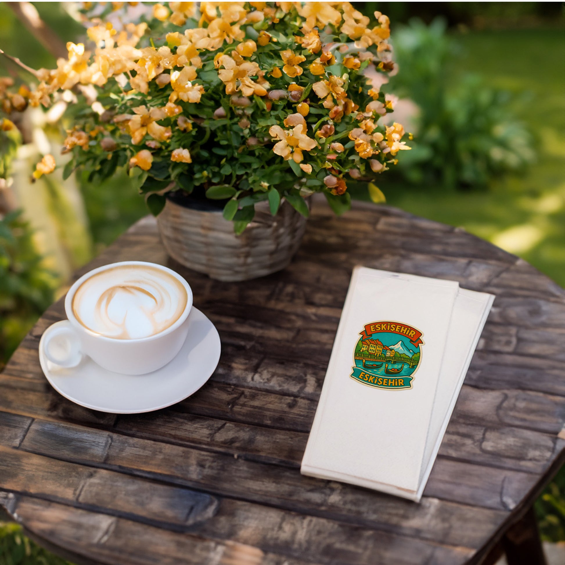 Türkiye’nin en sevilen ve en modern şehirlerinden biri olan Eskişehir, Porsuk Çayı ve gondol manzarasıyla bu özel tasarım baskılı peçetede hayat buluyor. Şehrin romantik, genç ve kültürel ruhunu yansıtan bu tasarım; şehir temalı sofraları, özel davetleri ve hediyelik konseptleri şık bir şekilde tamamlar.