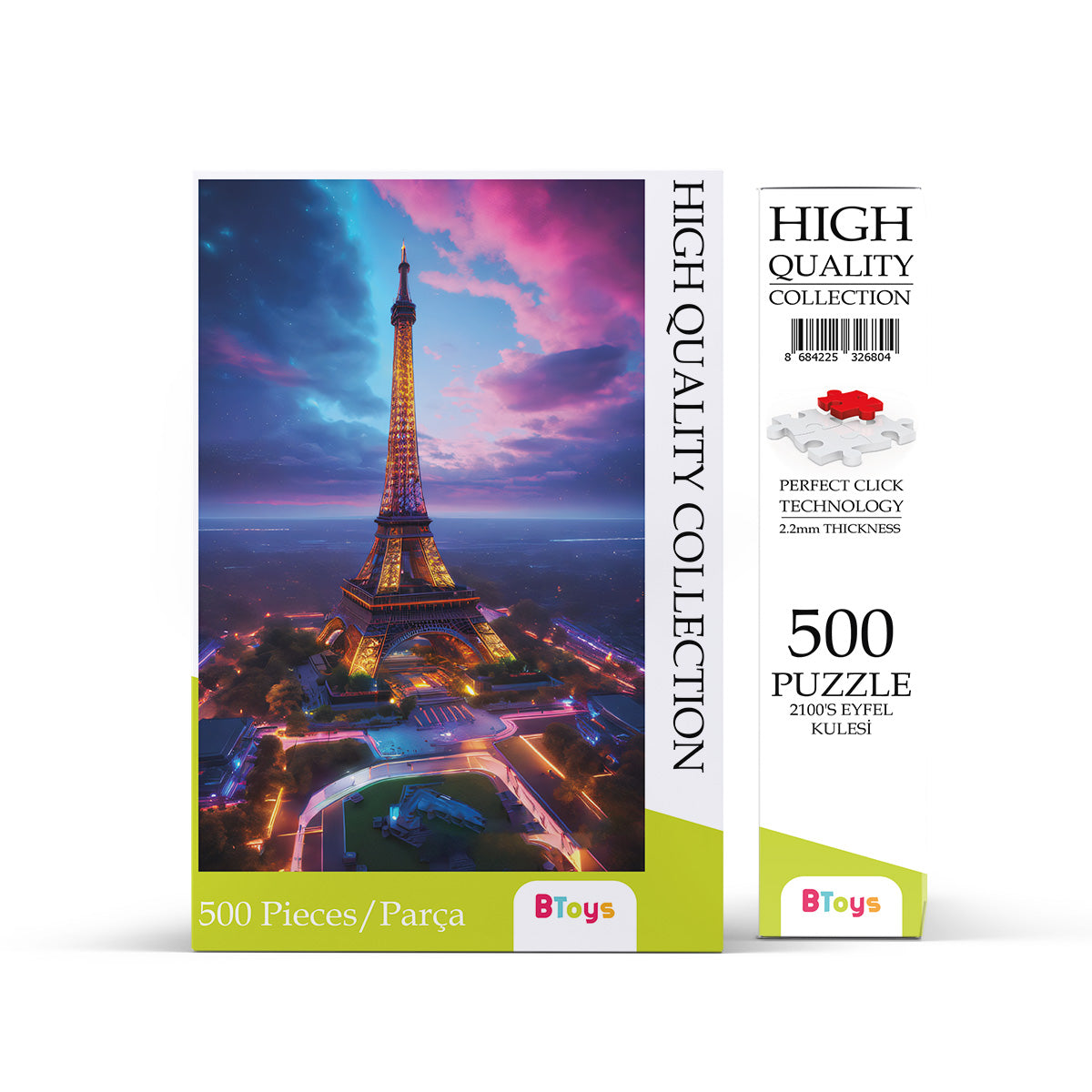 Geleceğin Paris`inde, 2100`lerde Eyfel Kulesi`ni keşfetmeye hazır mısınız? "Eyfel Kulesi 2100`ler" temalı 500 parçalık bu puzzle, hem çocuklar hem de yetişkinler için mükemmel bir eğlence ve zihin egzersizi sunuyor.