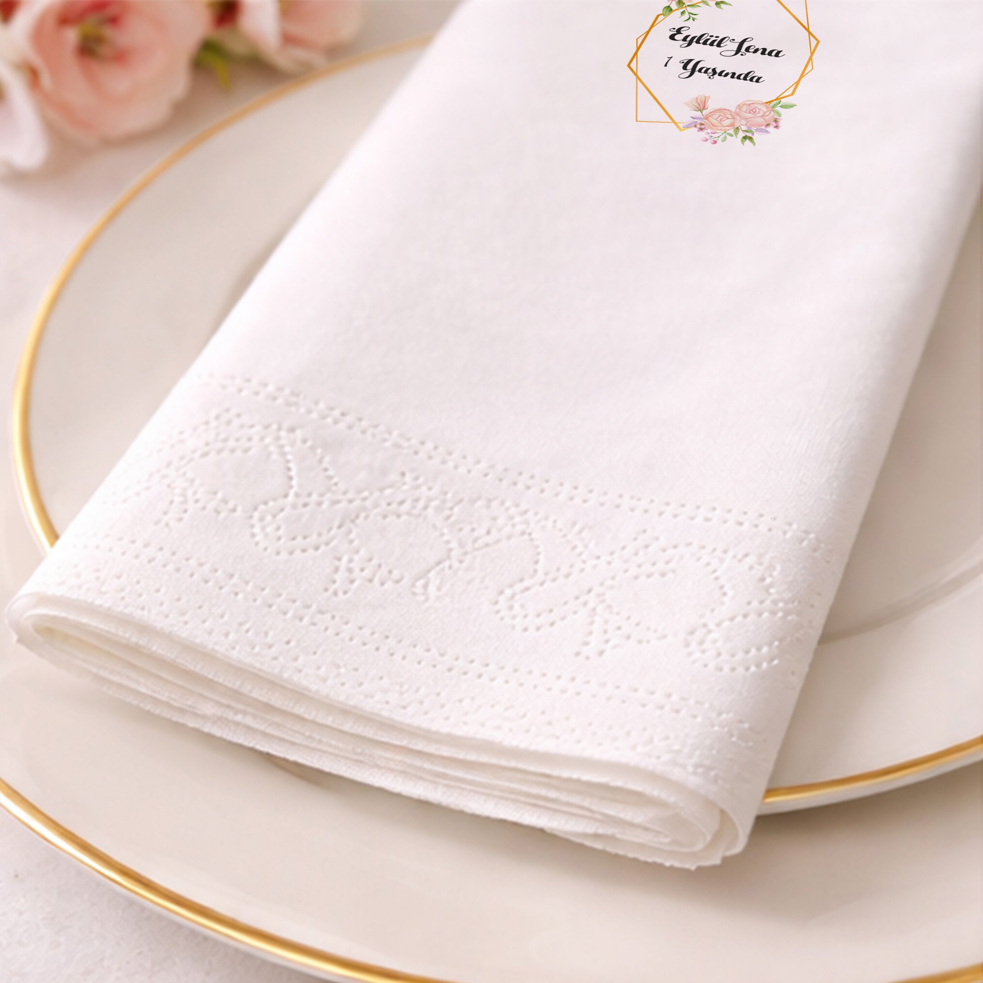 Eylül Lena 1 Yaşında Çiçekli Geometrik Çerçeveli Peçete