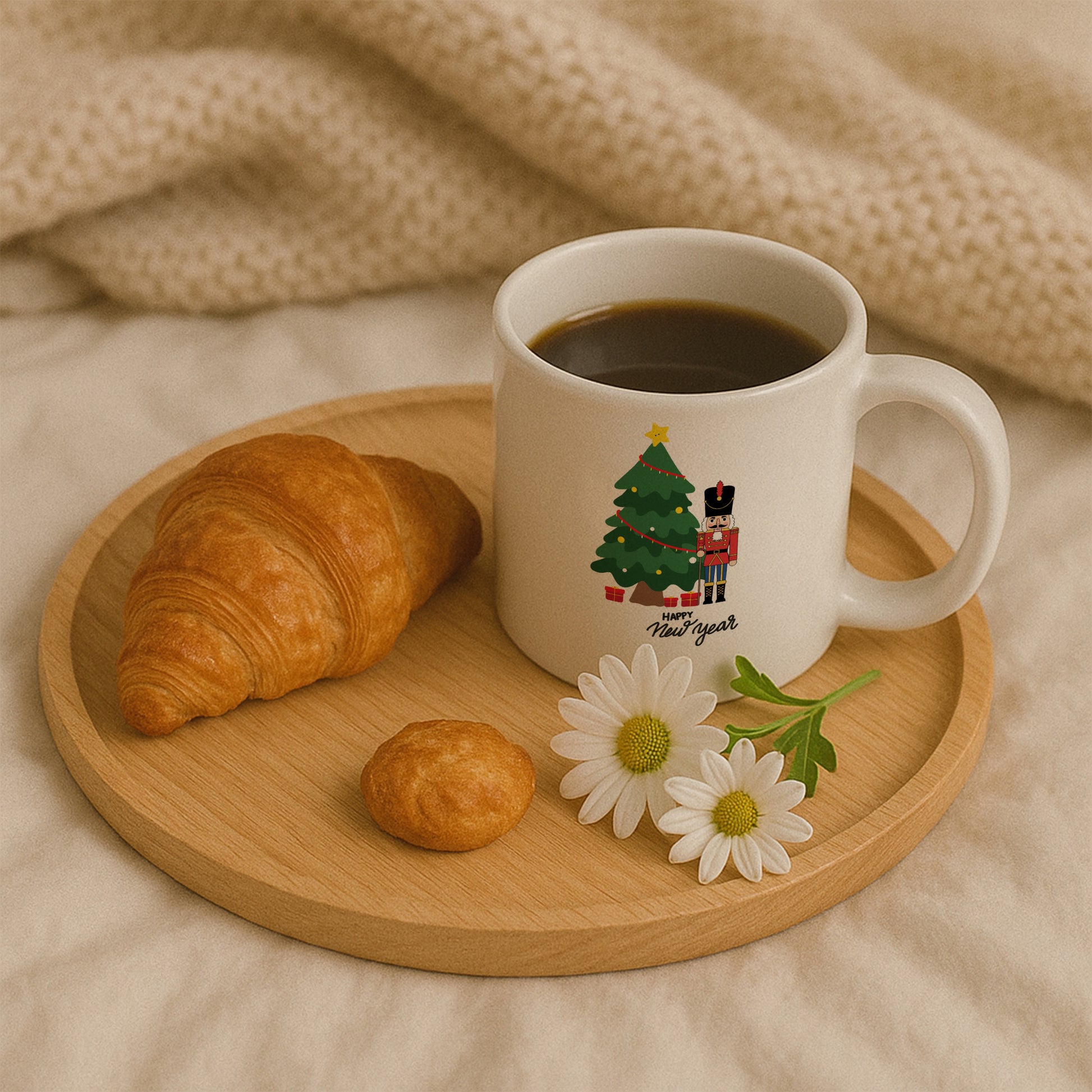 Bu özel tasarım kupa, yılbaşının en sevilen sembollerinden fındıkkıran figürünü ve süslenmiş yılbaşı ağacını bir araya getirir. Geleneksel Noel estetiğini yansıtan bu desen, çocuklu ailelerden klasik tasarımları sevenlere kadar geniş bir kitleye hitap eder.