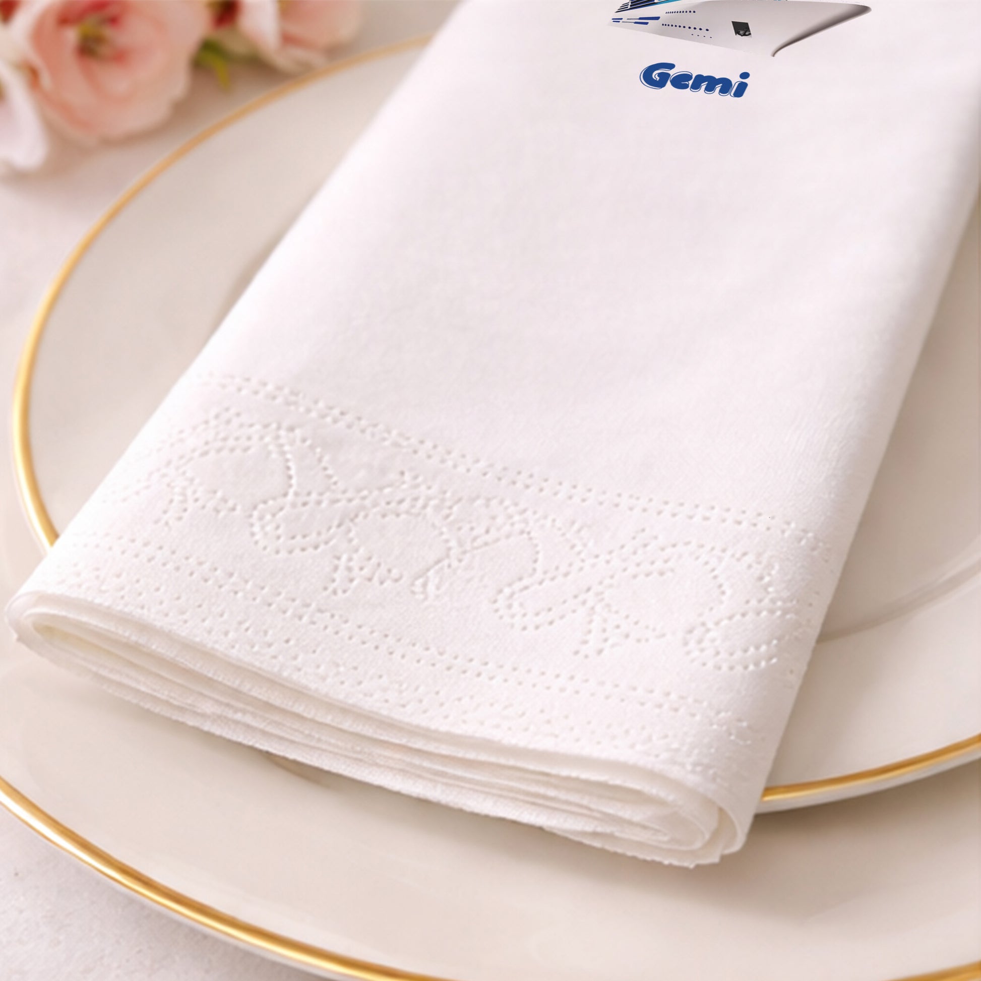 Tasarım, peçetenin ön yüzünde tam merkezde olacak şekilde yüksek çözünürlüklü baskı ile uygulanır. Dilersen özel konumlandırma taleplerini de iletebilirsin.