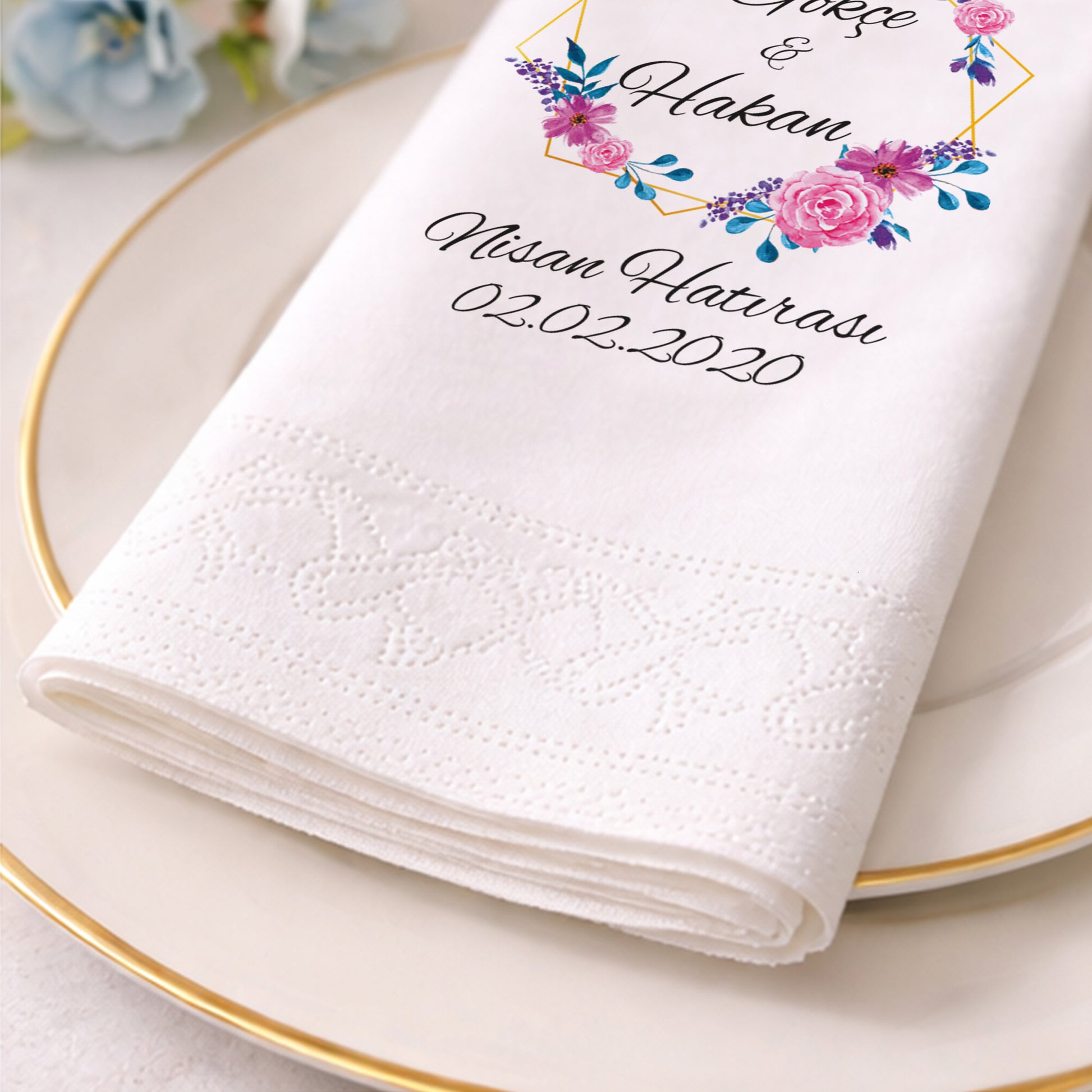 Gül Çerçeveli İsimli Nişan Hatırası Baskılı Peçete
