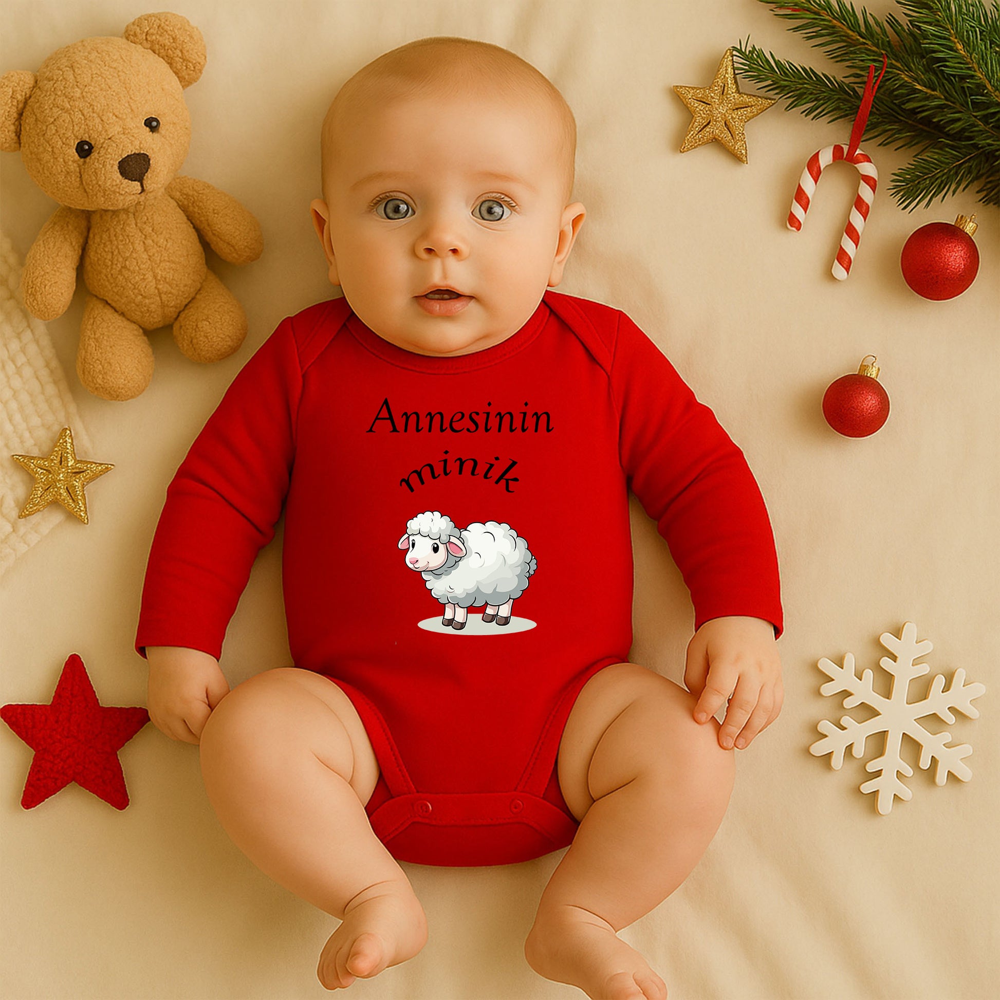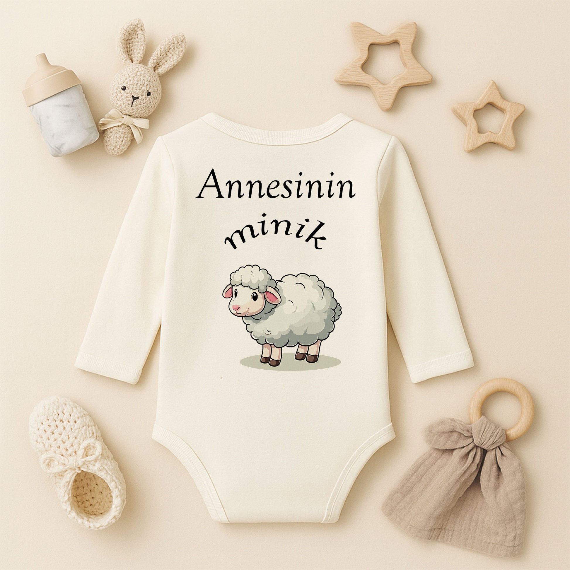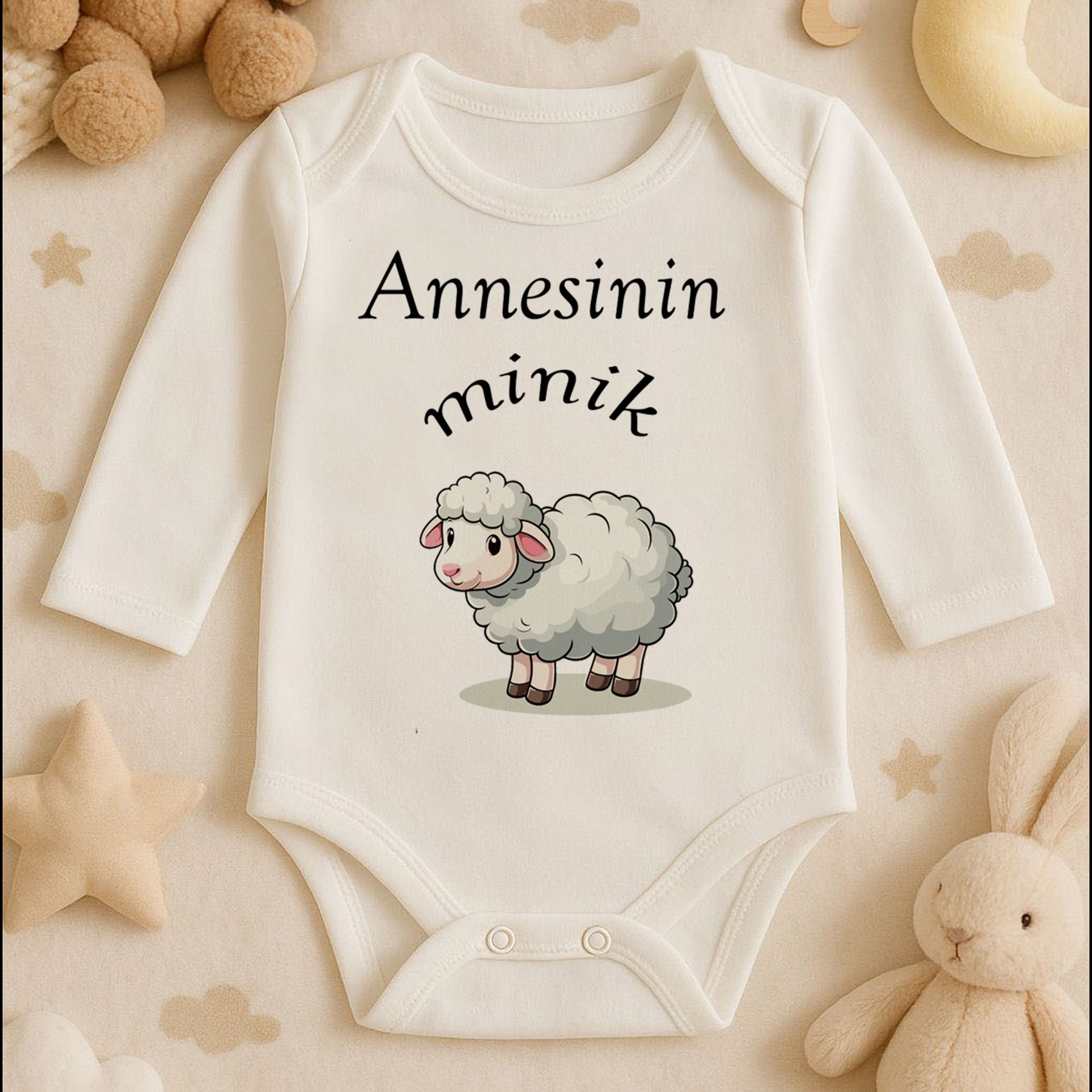 Sevimli kuzu illüstrasyonu ve sıcak mesajıyla bu bebek zıbını; haladan yeğene alınabilecek en tatlı hediyelerden biri. Günlük kullanımda rahat, hatıra fotoğraflarında ise kalpleri eriten bir tasarıma sahiptir.