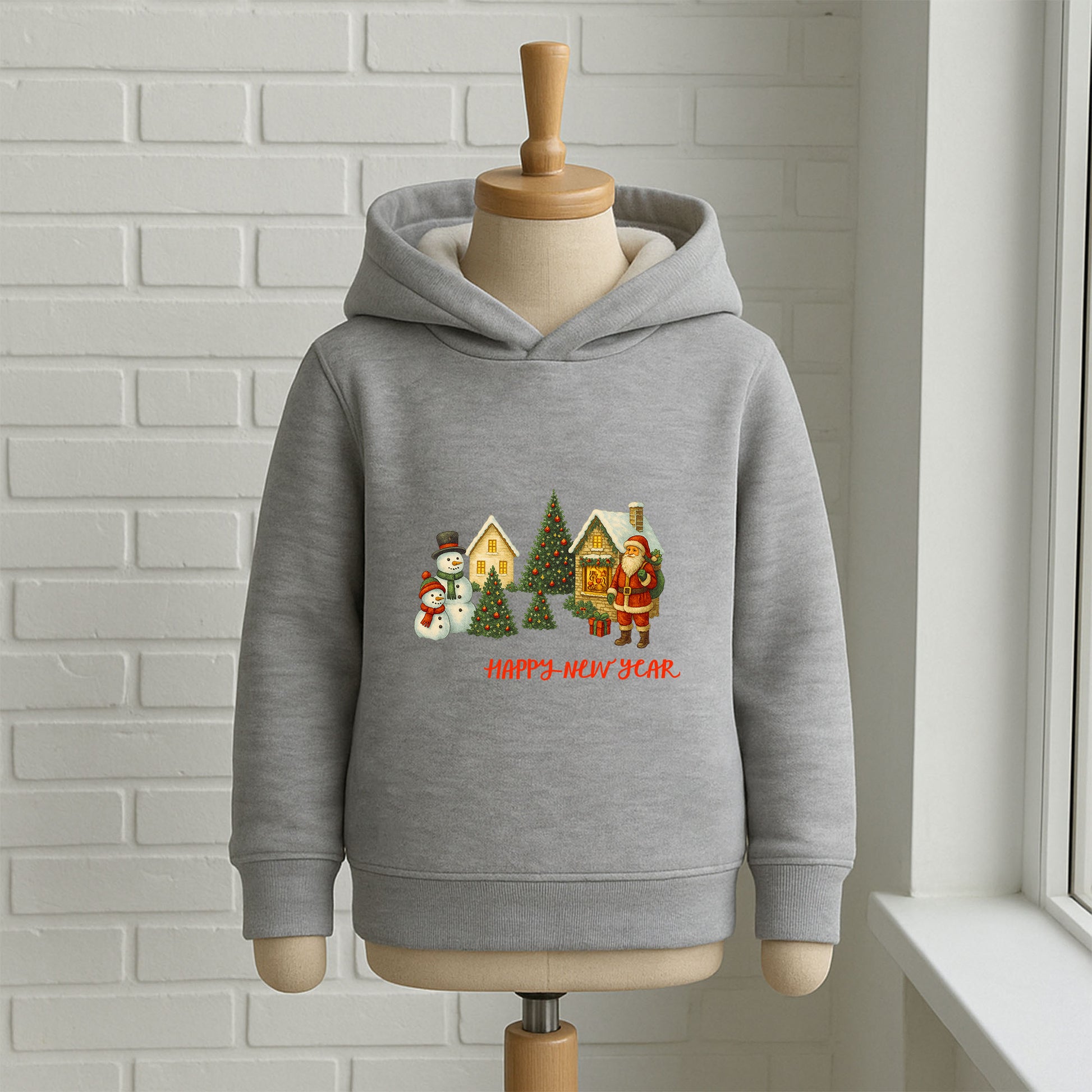 Happy New Year Köy Temalı Çocuk Sweatshirt – Kışlık Yılbaşı