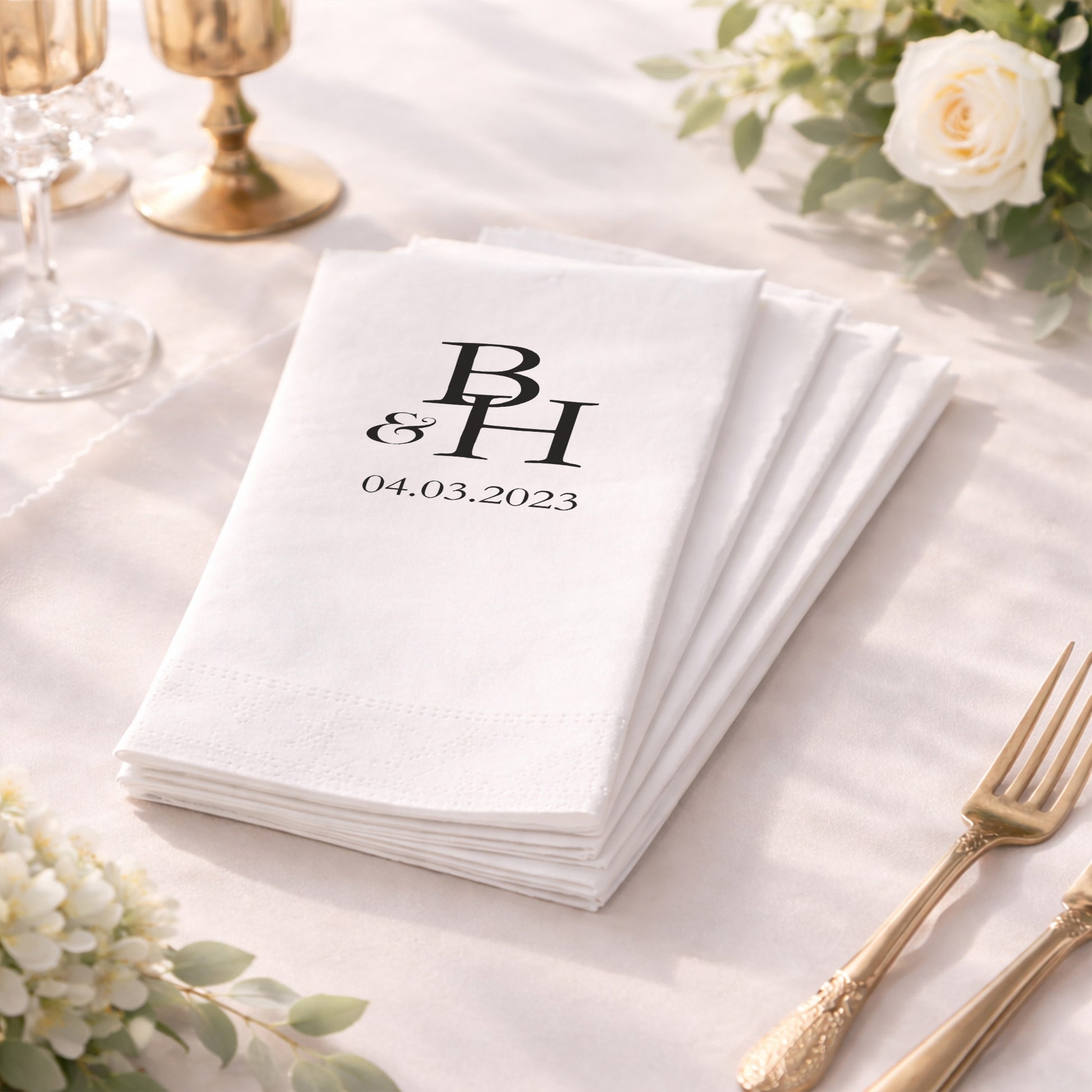 Harf Logolu Modern Düğün ve Nişan Baskılı Peçete Tasarımı