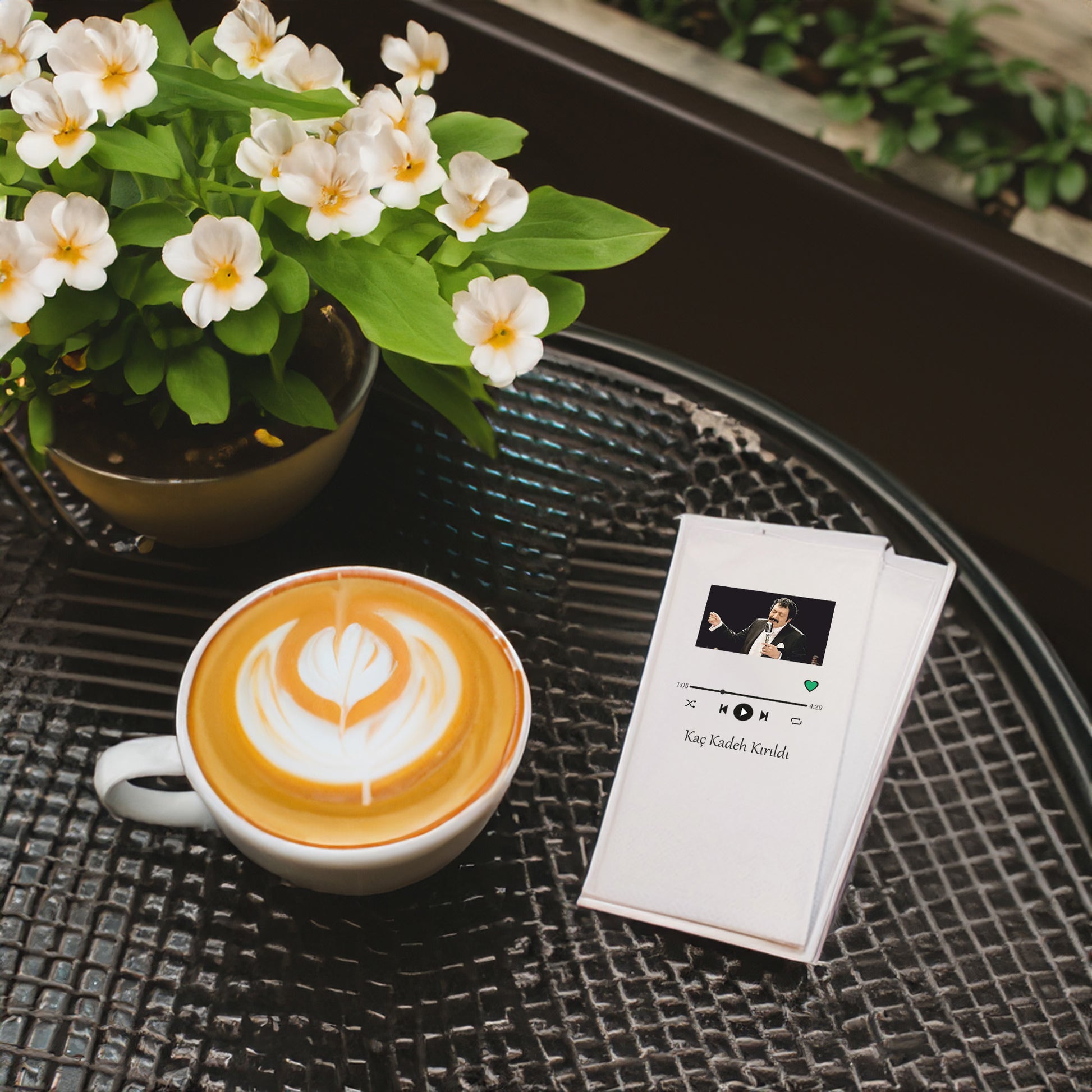 Sevilen klasiklerden “Kaç Kadeh Kırıldı” şarkısından ilham alınarak tasarlanan bu özel baskılı peçete, masalarınıza nostaljik, duygusal ve estetik bir dokunuş katıyor.
