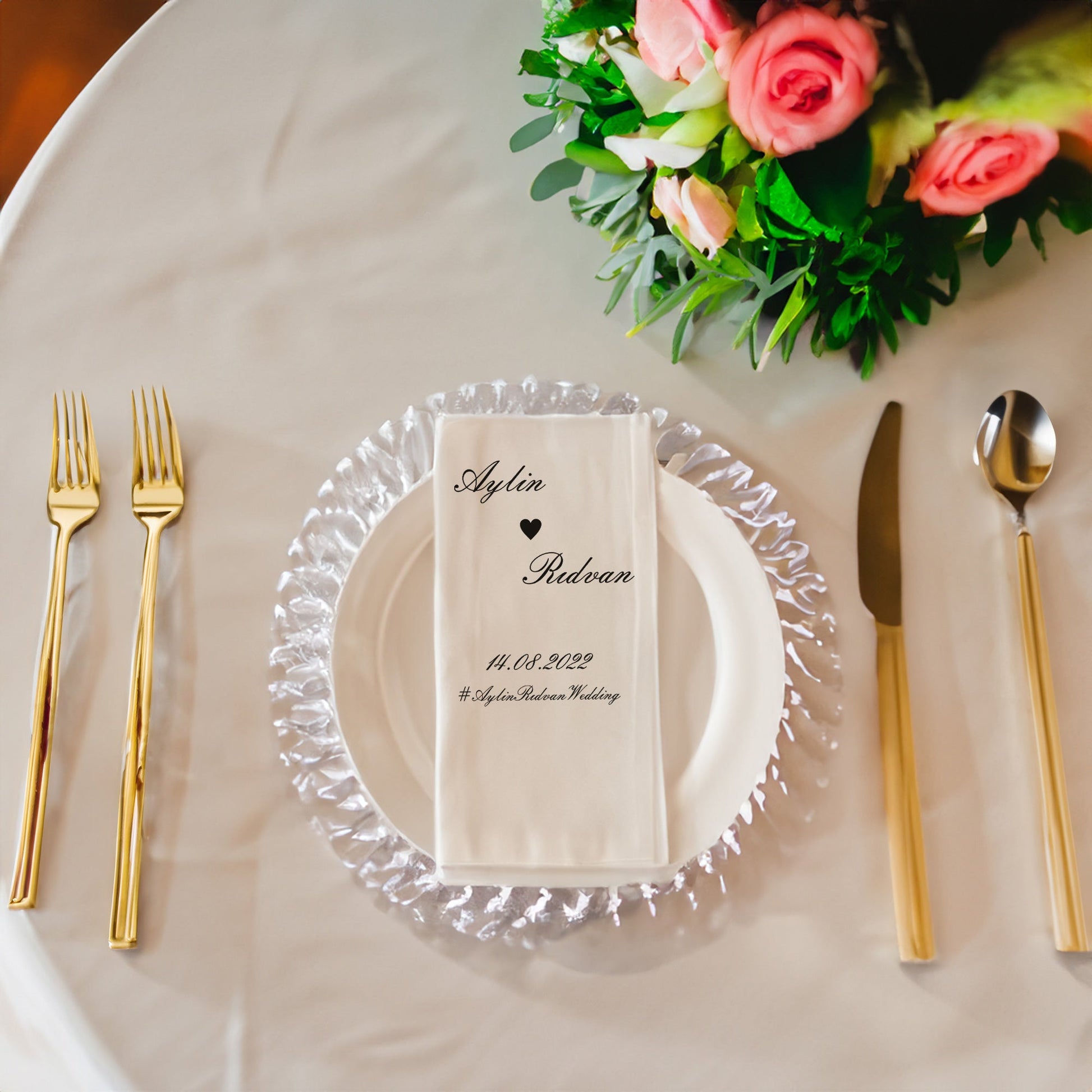 Özel günlerinizi unutulmaz kılacak zarif bir dokunuş: Etiketli İsim Detaylı Düğün, Nişan, Söz ve Kına Peçetesi Seti!