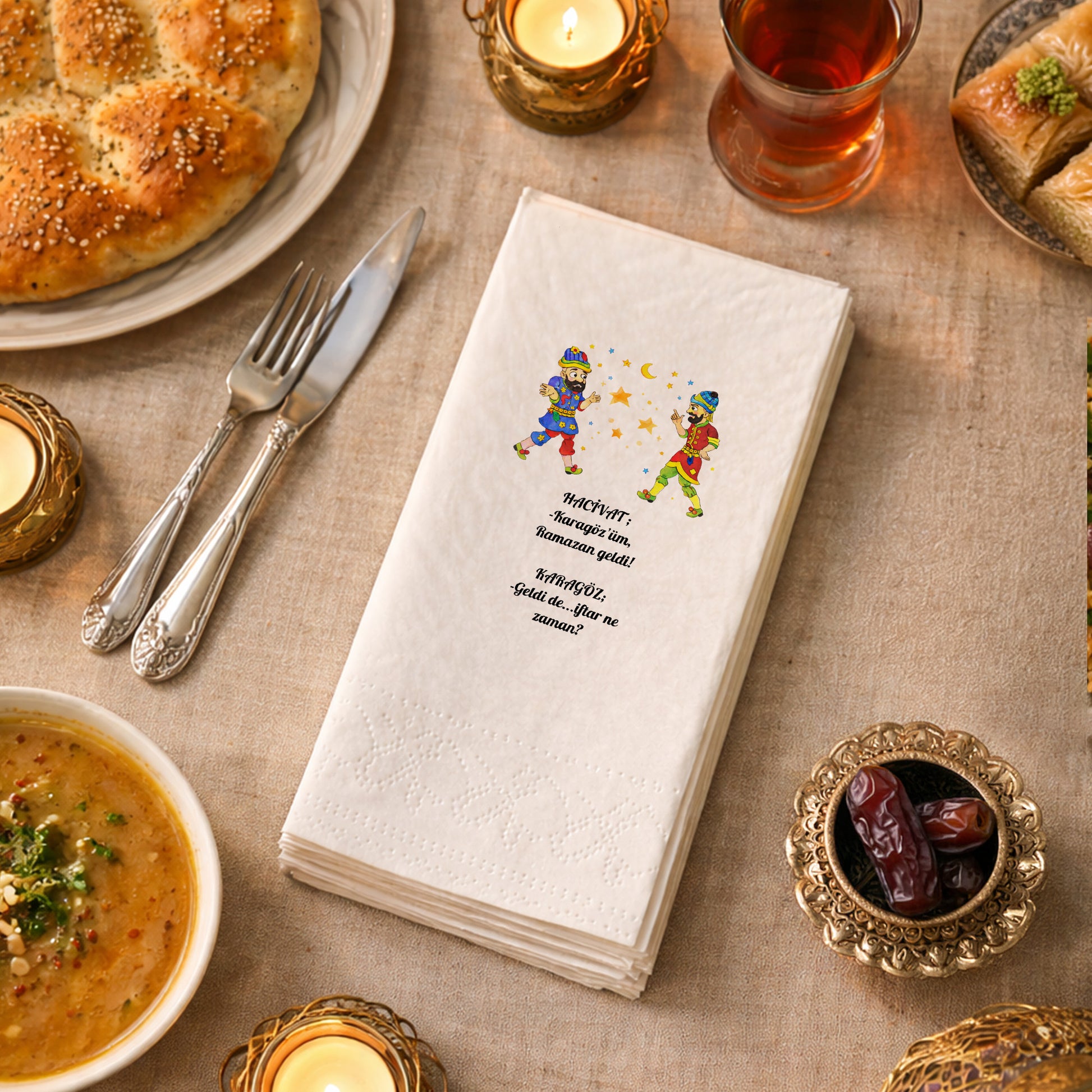 Karagöz Hacivat Ramazan Baskılı Peçete – Komik Diyaloglu | 33x33 cm Çift Katlı
