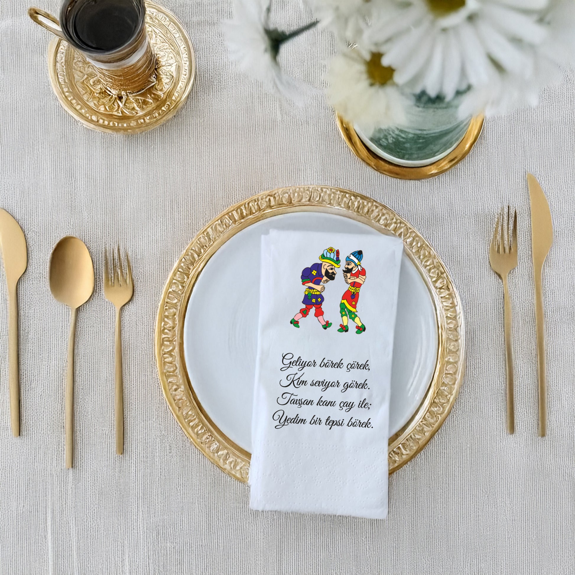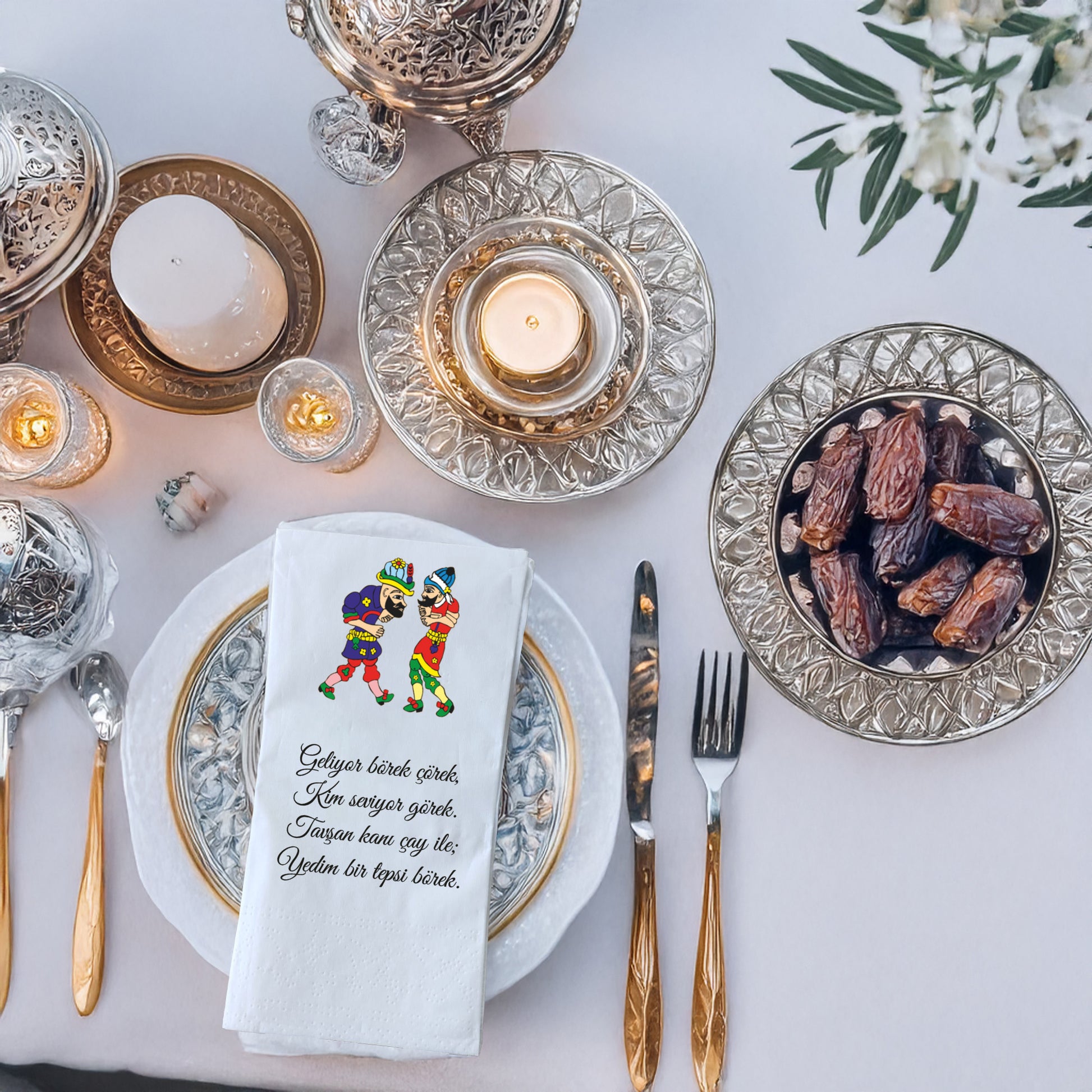 Kidzia Hacivat & Karagöz Ramazan Peçetesi – Mani Yazılı, 33x33 cm Çift Katlı, 20’li Paket