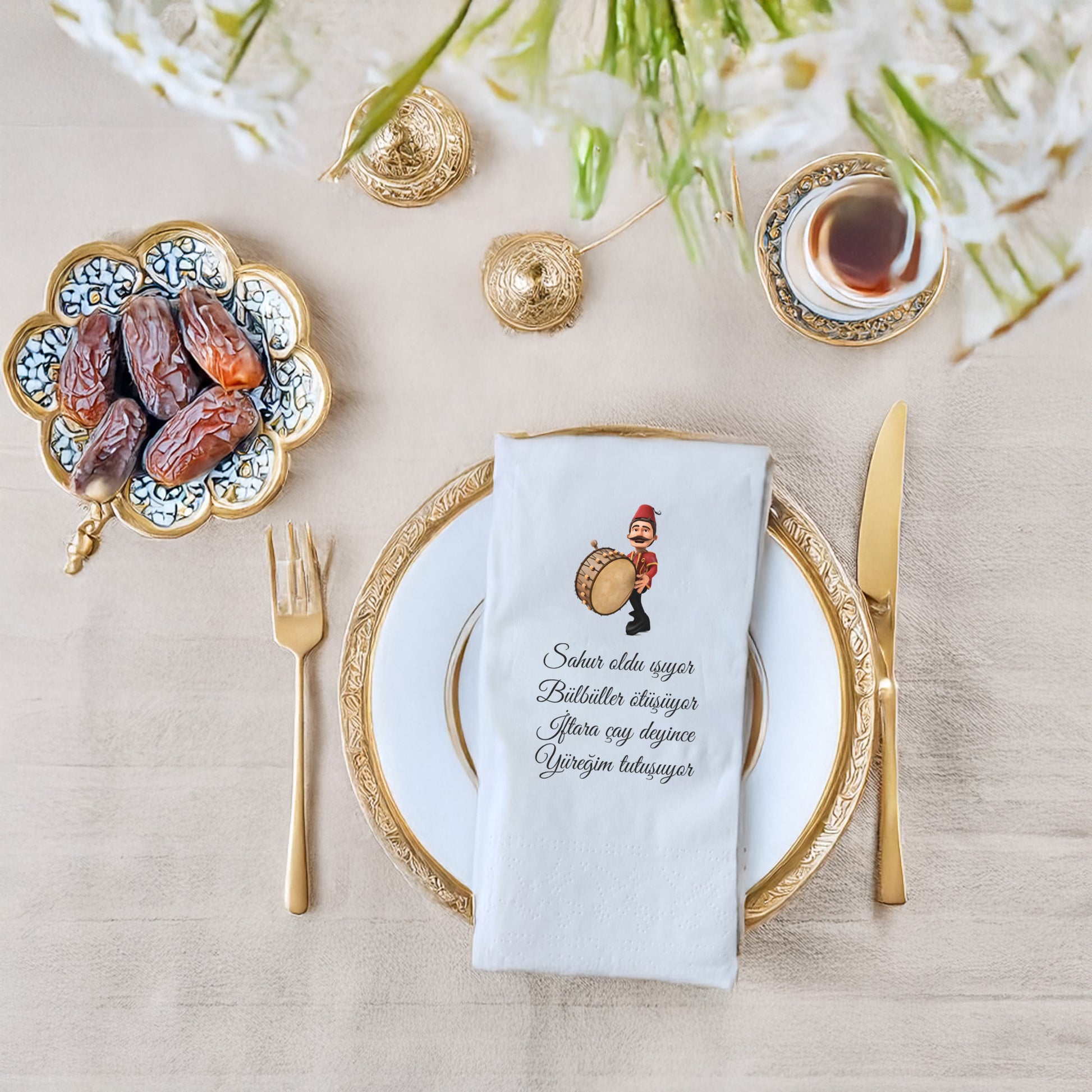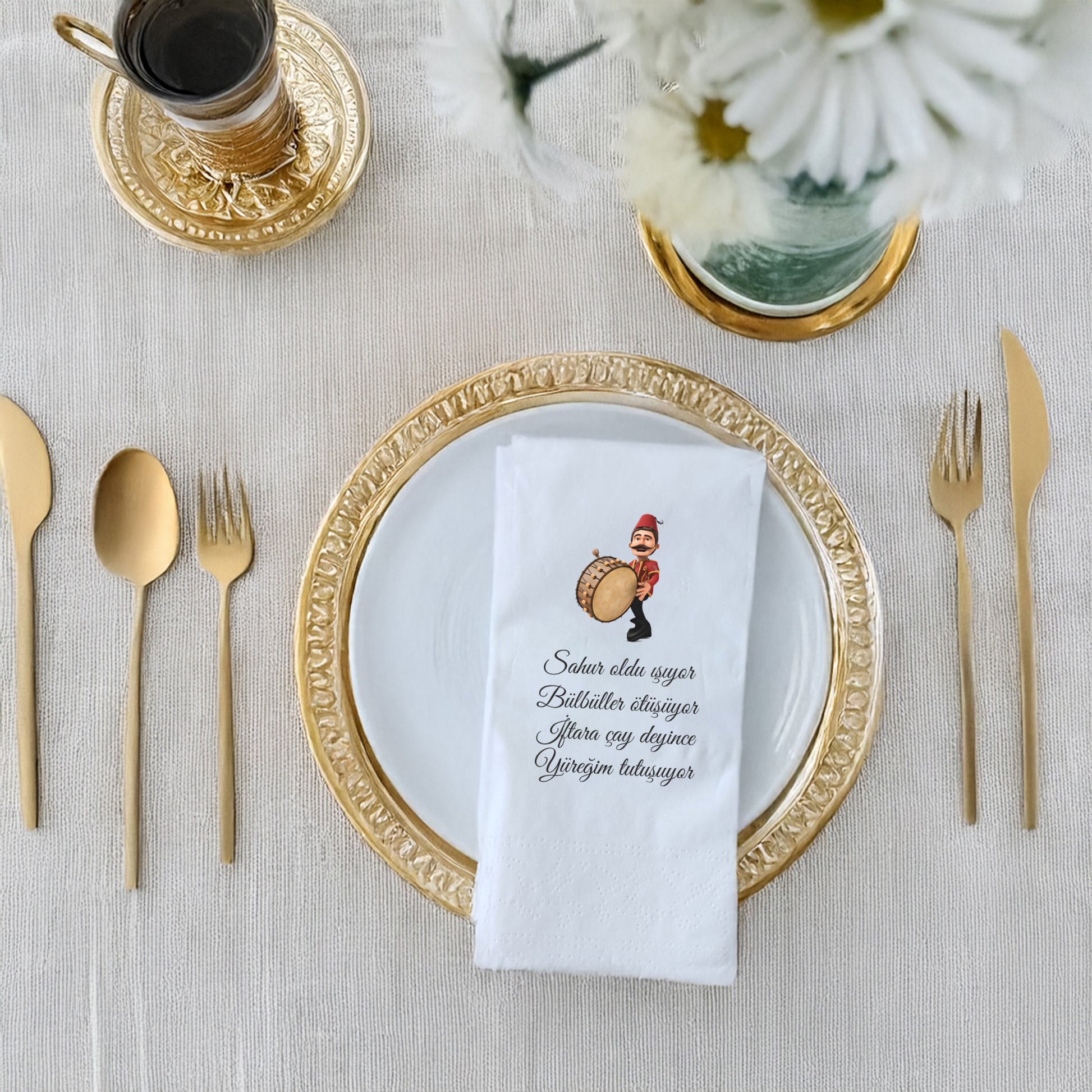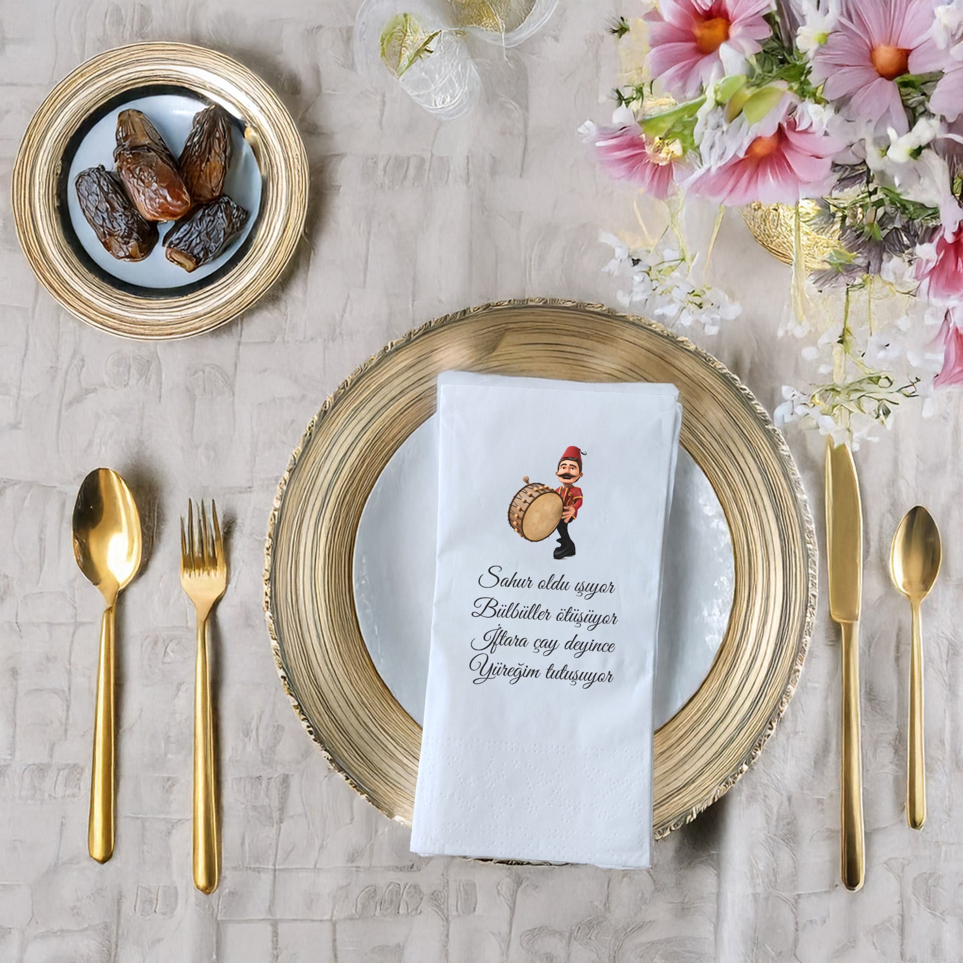 Kidzia Ramazan Davulcusu Çizimli Peçete – Mani Yazılı, 33x33 cm Çift Katlı, 20’li Paket