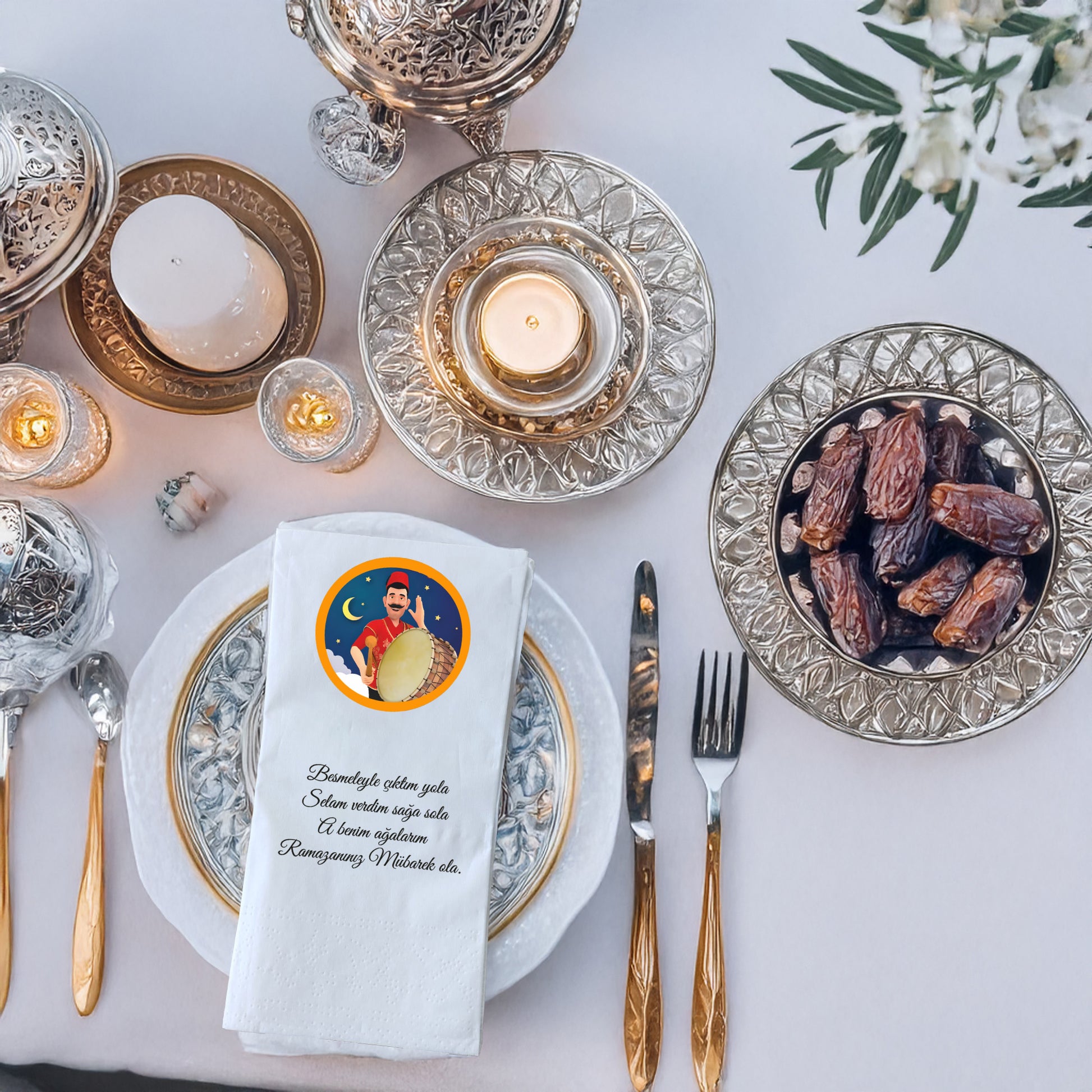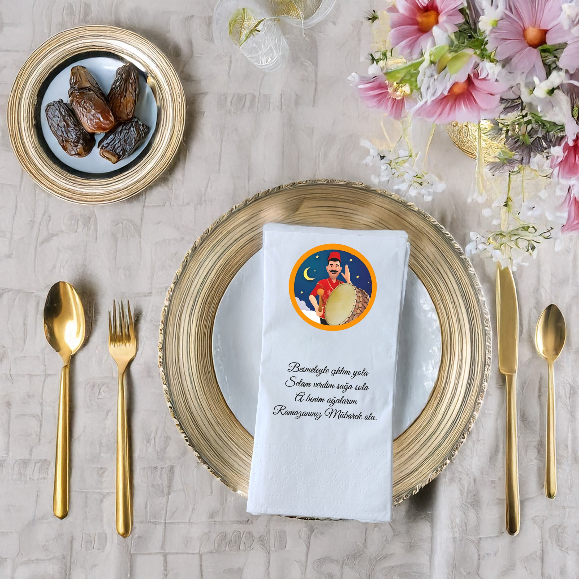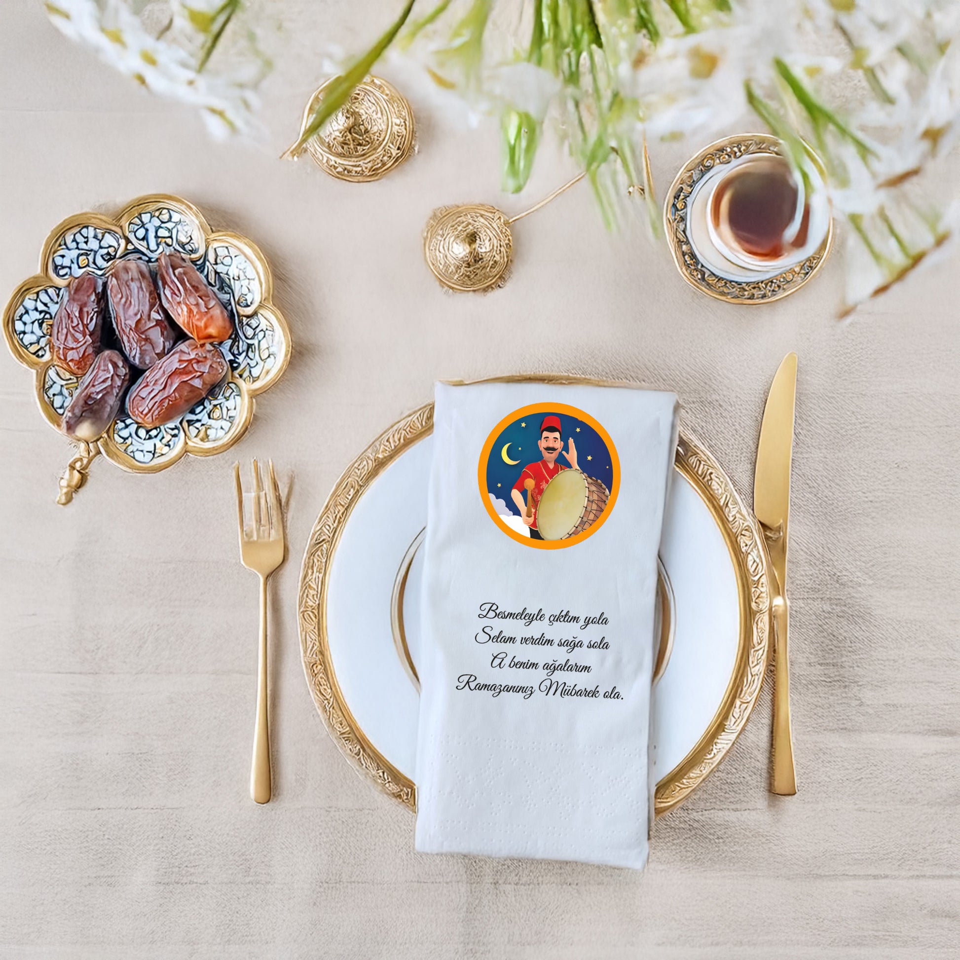 Kidzia Ramazan Davulcusu Yuvarlak Motif Baskılı Peçete – Mani Yazılı, 33x33 cm Çift Katlı, 20’li Paket