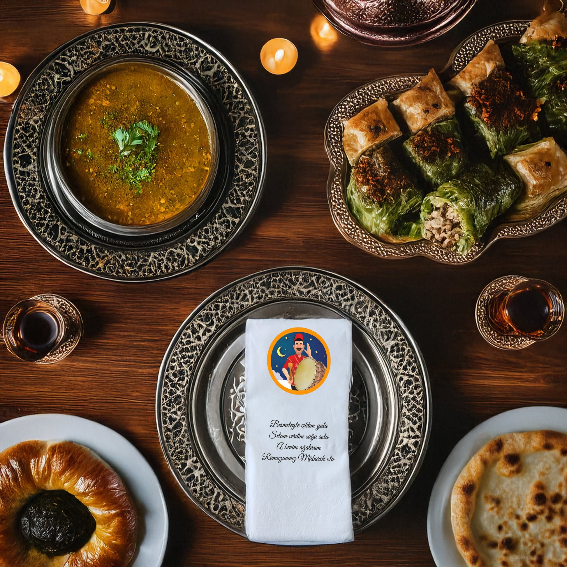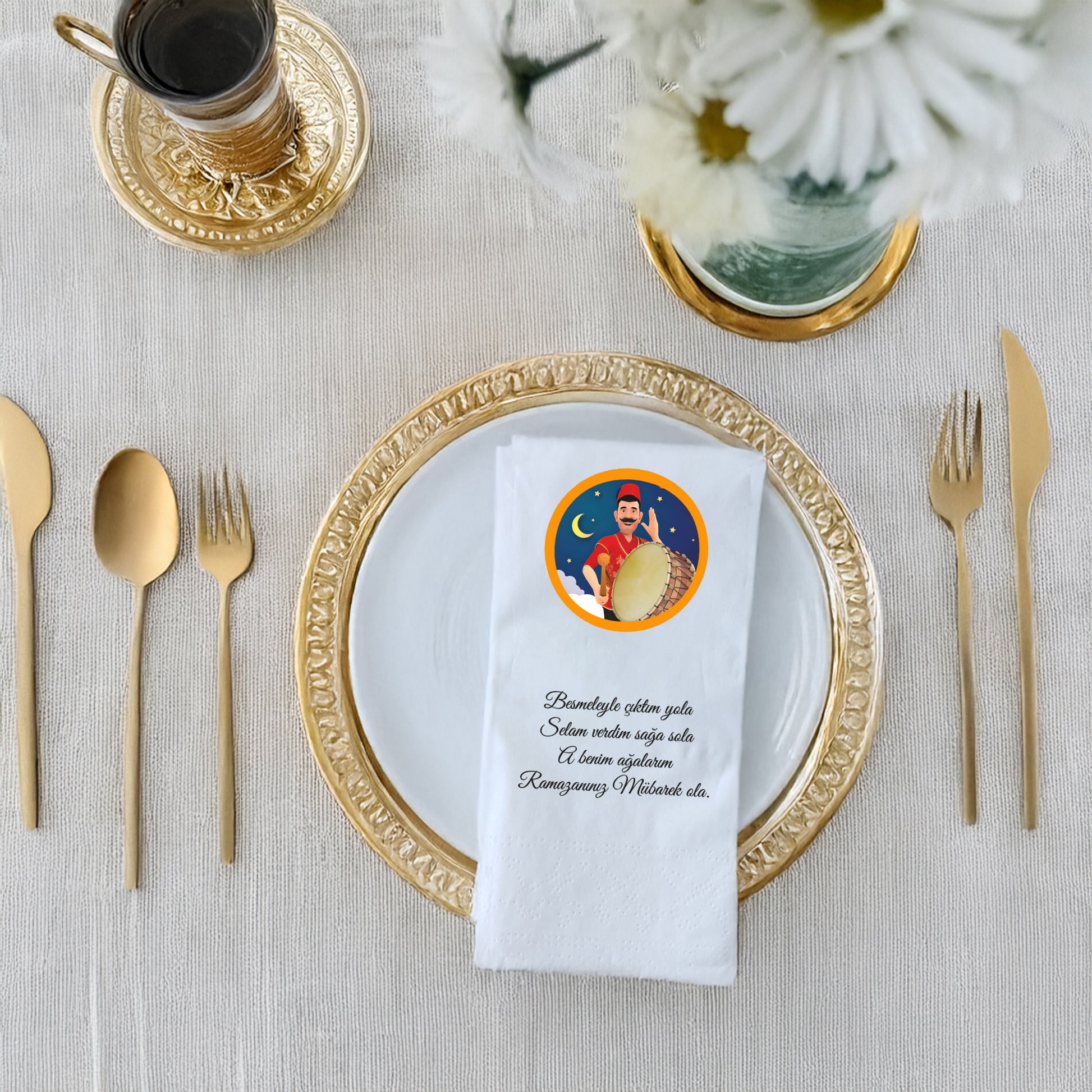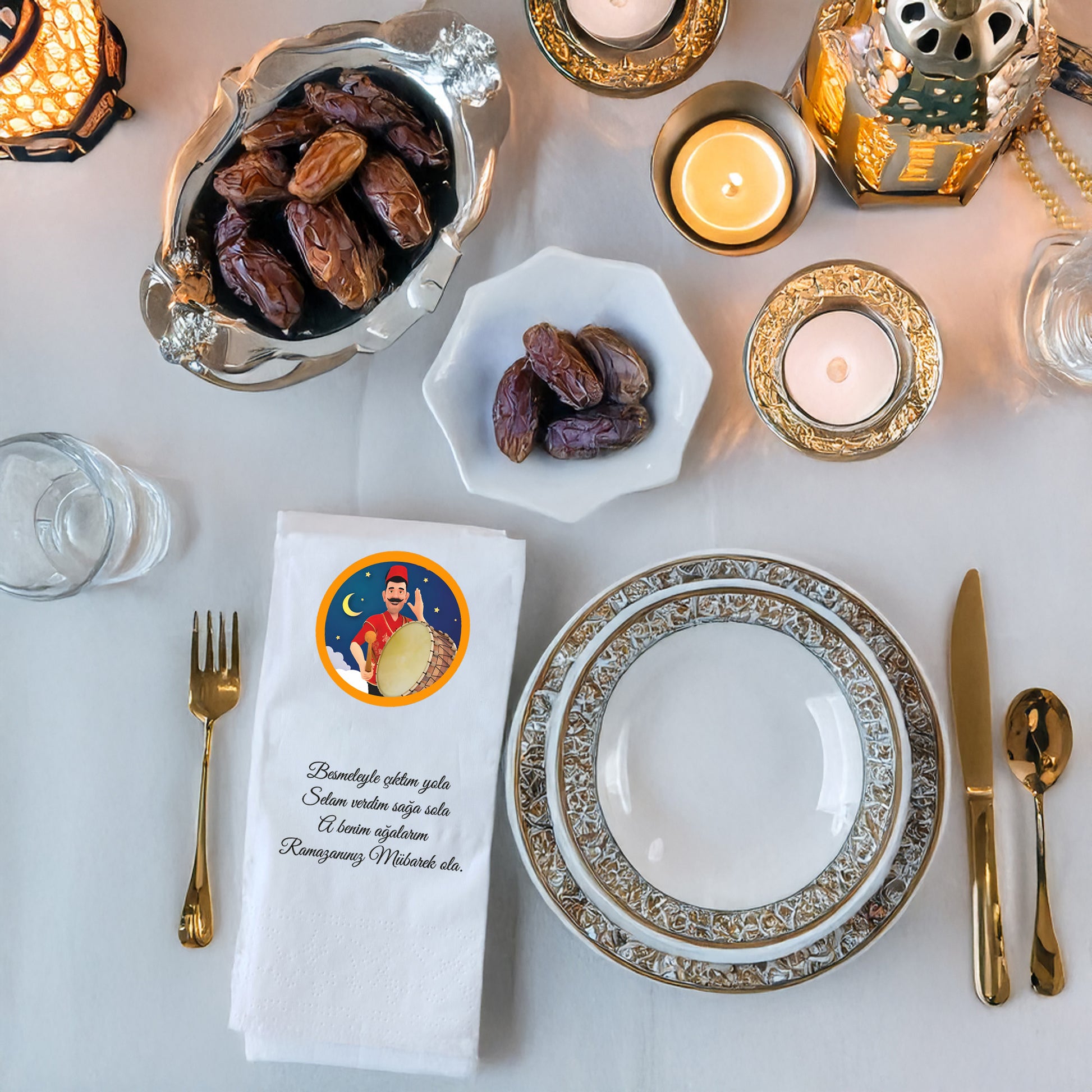 Kidzia Ramazan Davulcusu Yuvarlak Motif Baskılı Peçete – Mani Yazılı, 33x33 cm Çift Katlı, 20’li Paket