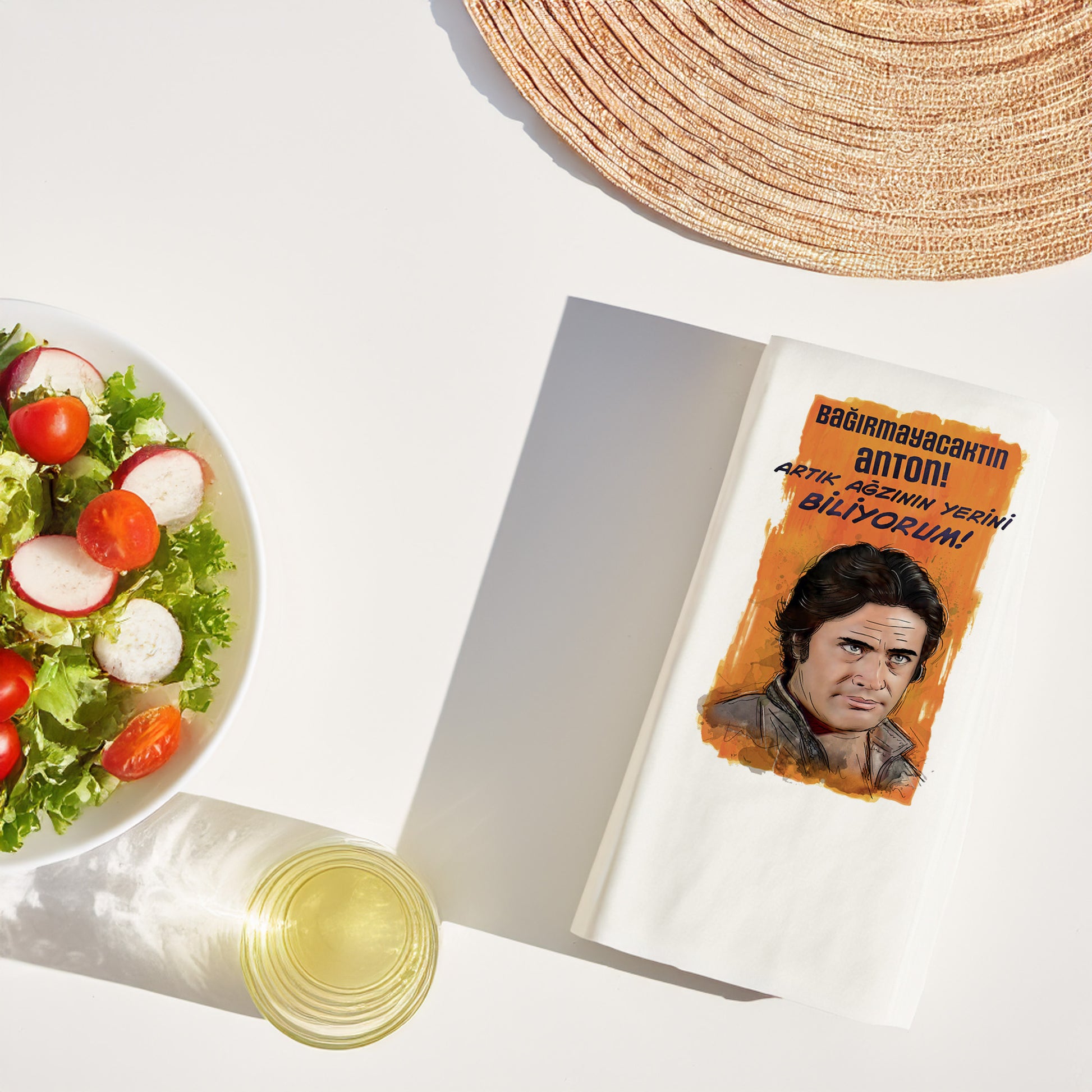 Yeşilçam ruhunu sofralara taşıyan Kidzia Anton Temalı Baskılı Peçete, nostalji ve modern tasarımın birleştiği özel bir koleksiyondur.
