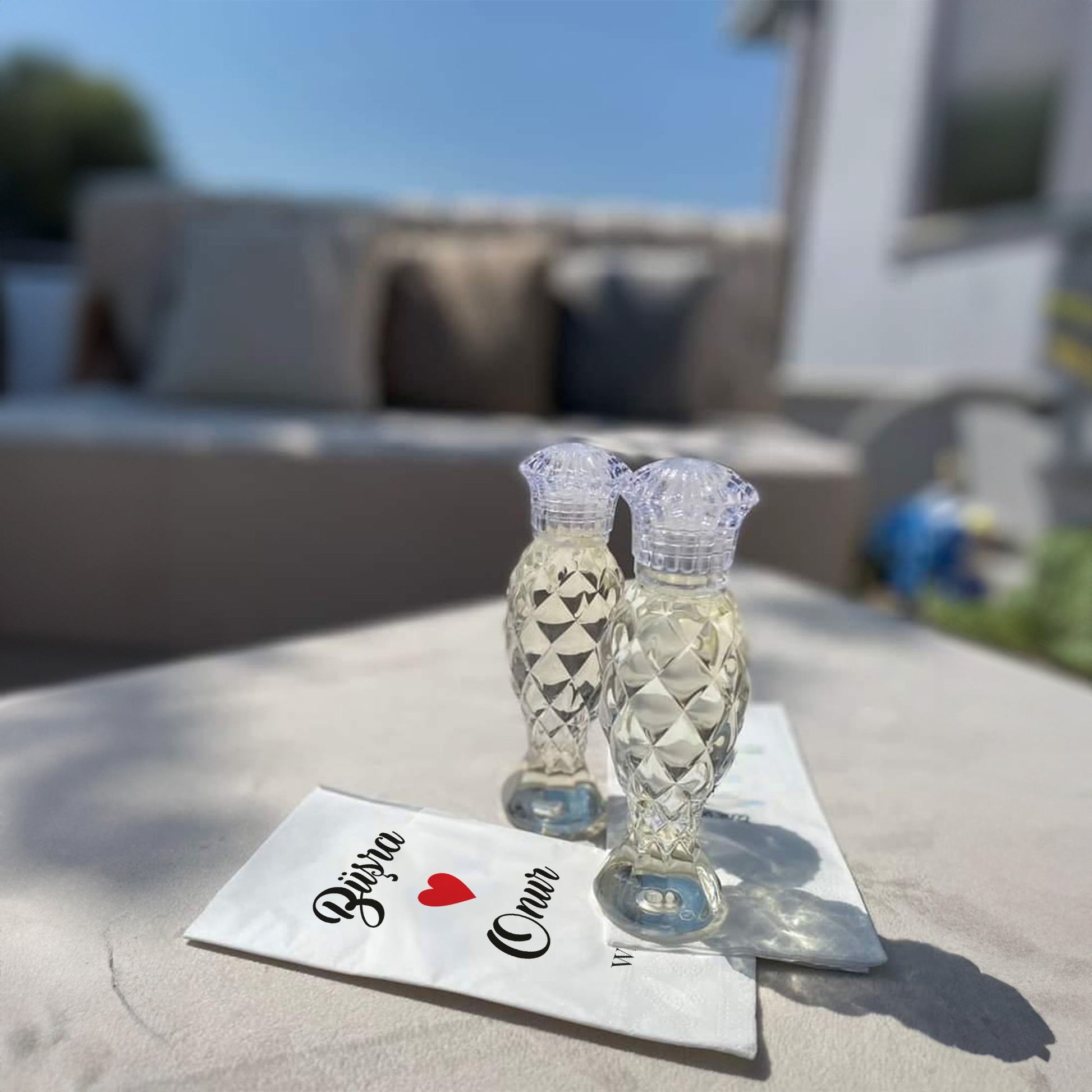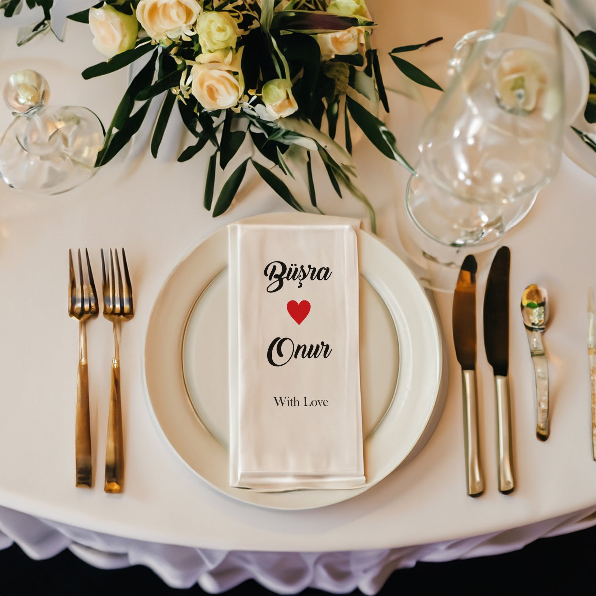 - Kırmızı Kalpli İsim detayıyla süslenmiş peçeteler, özel günlerinizde masanızı renklendirir ve zarafet katmanıza yardımcı olur.