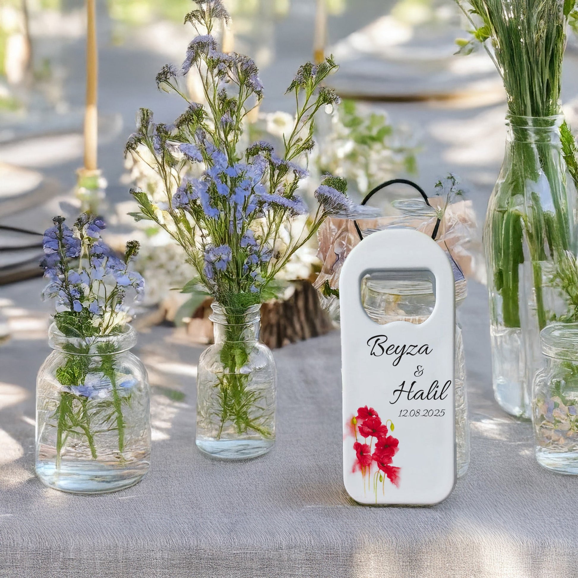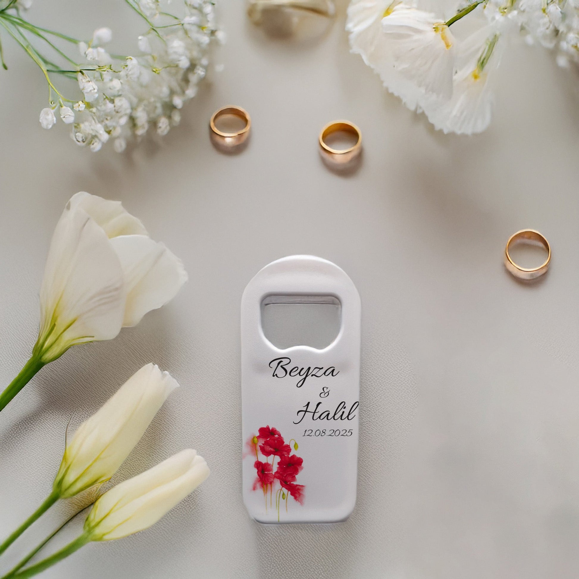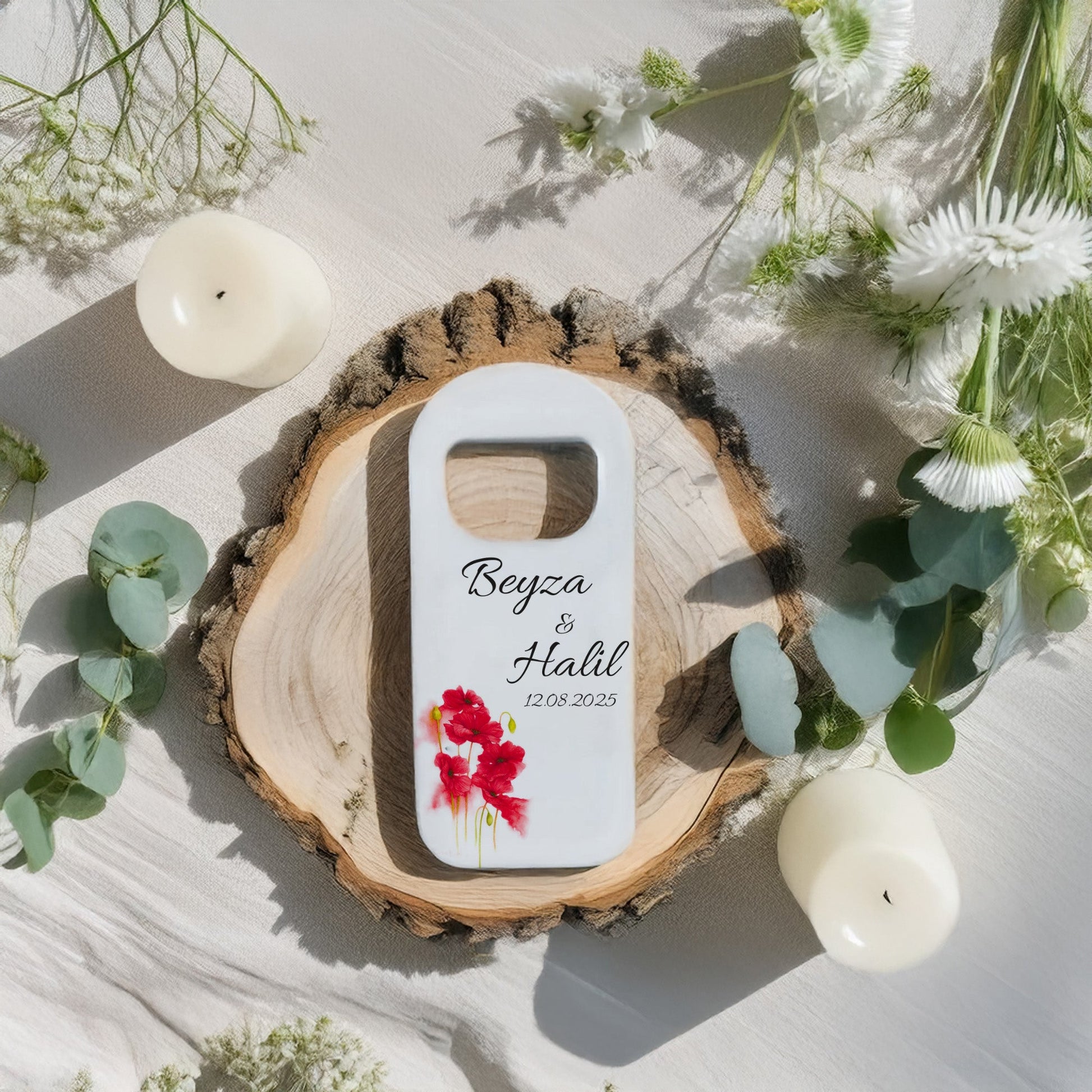 Kişiye özel desenlerimizle süslenmiş plastik açacak magnetlerimizle düğün,nişan, söz ya da kına gecenize unutulmaz bir hava katın!