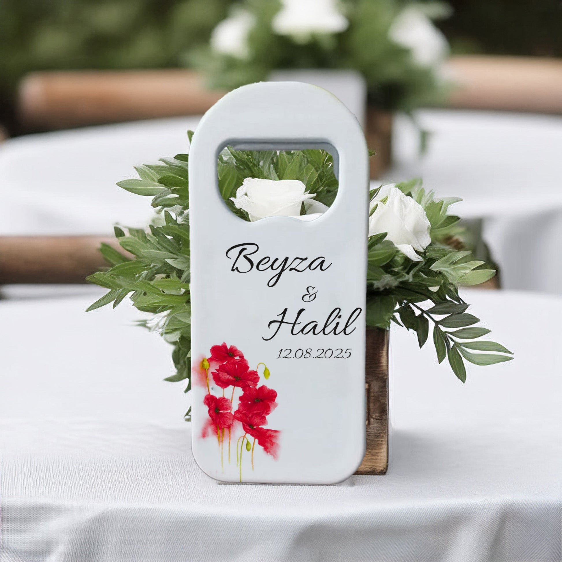 Kırmızı Gelincik Tasarımlı – Kişiye Özel Plastik Açacak Magnet