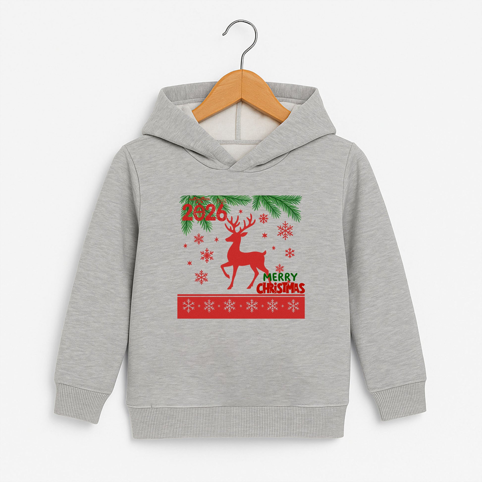 Kırmızı Geyik Merry Christmas 2026 Çocuk Sweatshirt – Yılbaşı Temalı
