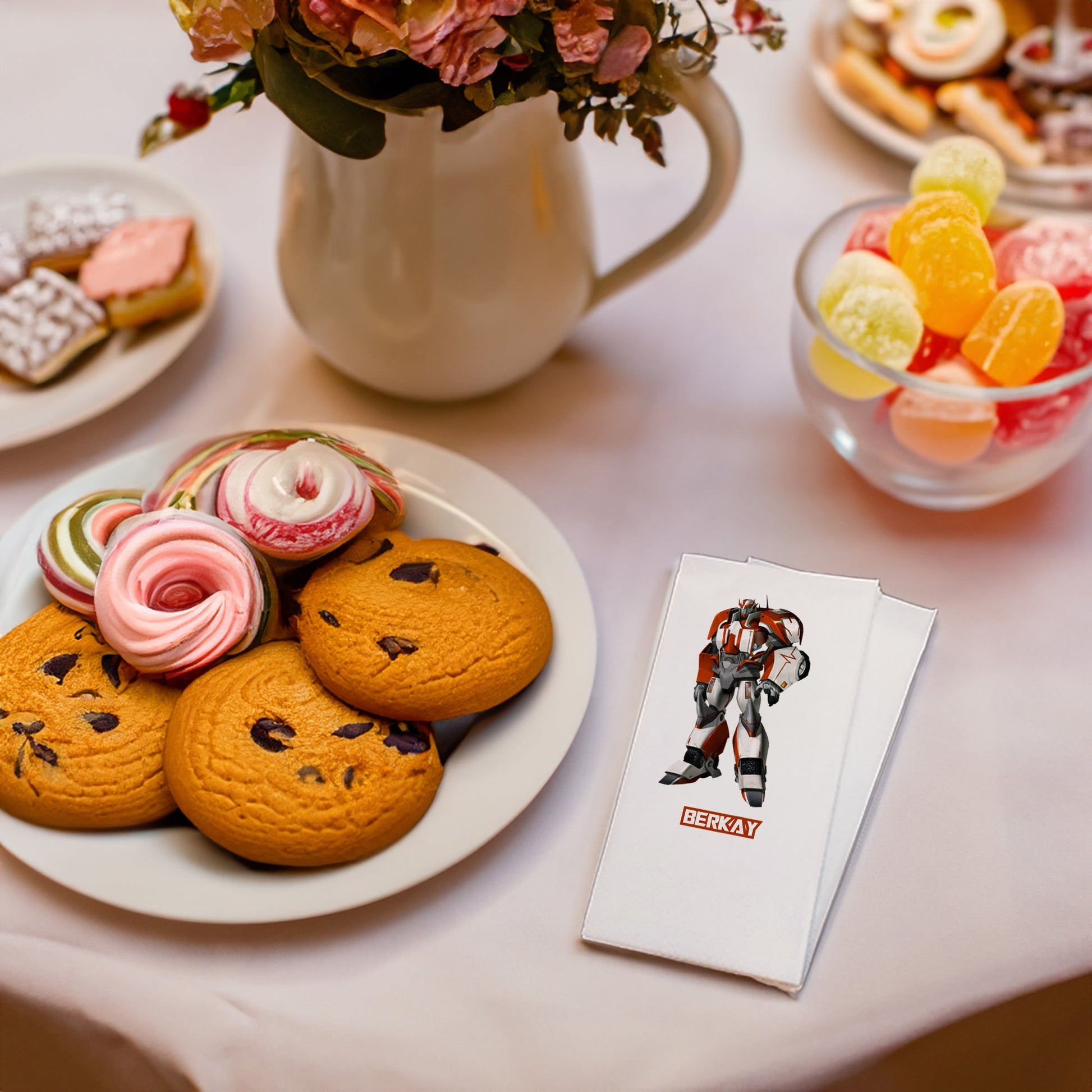 Her anınıza anlam katan ve duygularınızı yansıtan özel bir dokunuş: "Kırmızı Robot Temalı " Baskılı Peçeteler! Doğum günü, Babyshower,Diş Buğdayı ve Sünnet Organizasyonlarınıza daha anlamlı hale getirecek ve sevdiklerinizle paylaşacağınız samimi anları renklendirecek.
