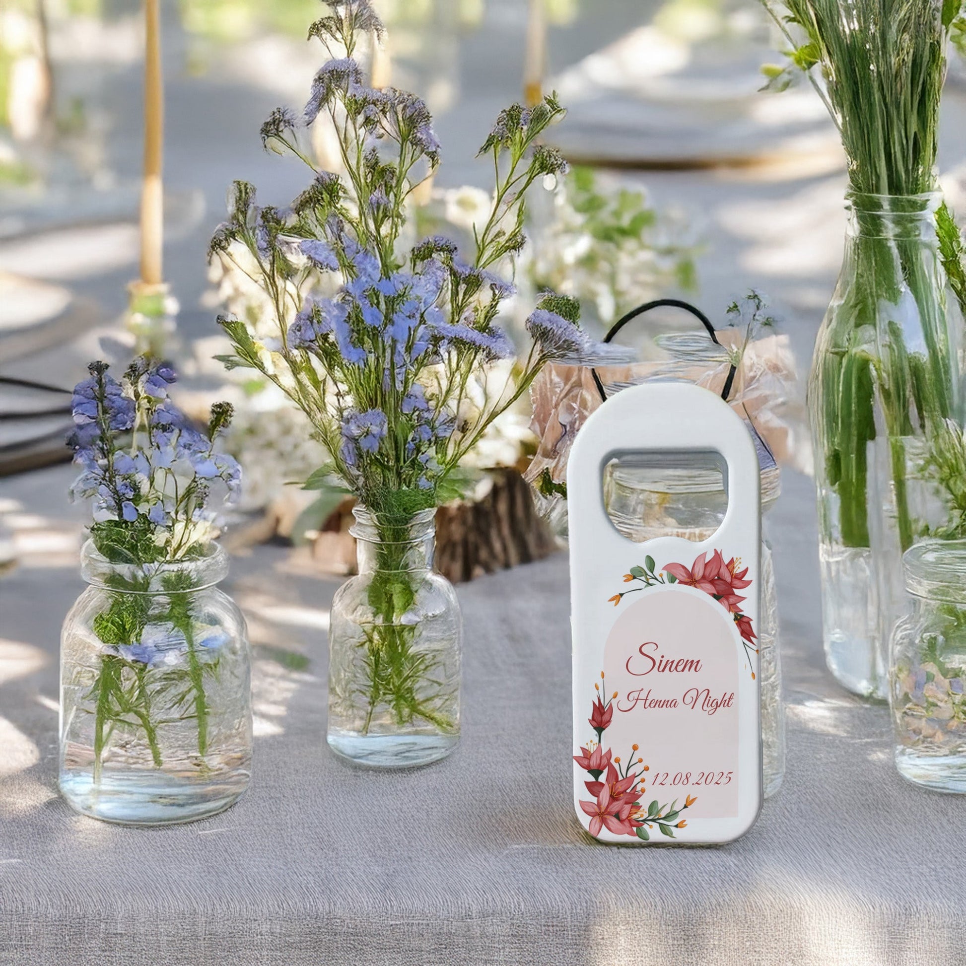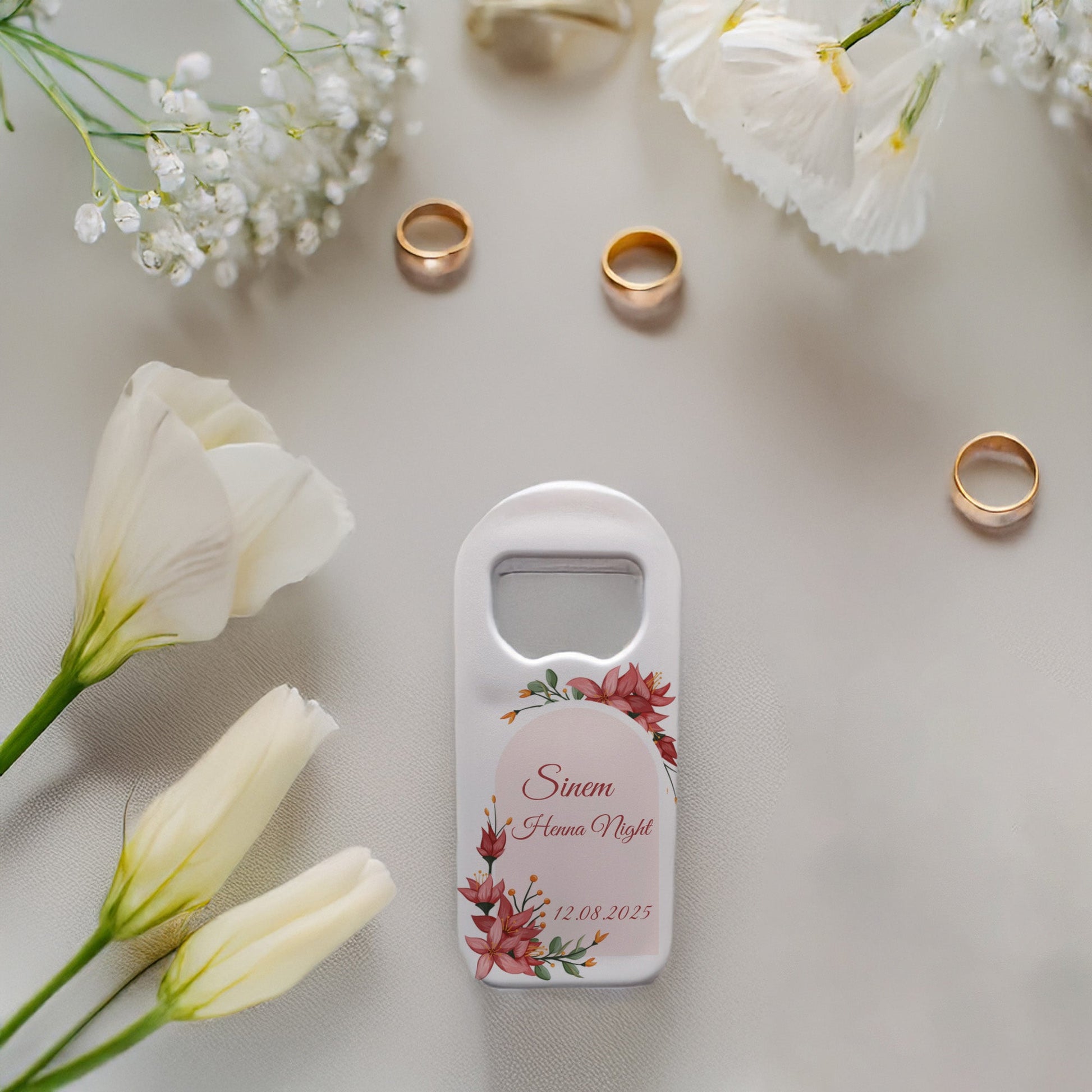 Kişiye özel desenlerimizle süslenmiş plastik açacak magnetlerimizle düğün,nişan, söz ya da kına gecenize unutulmaz bir hava katın!
