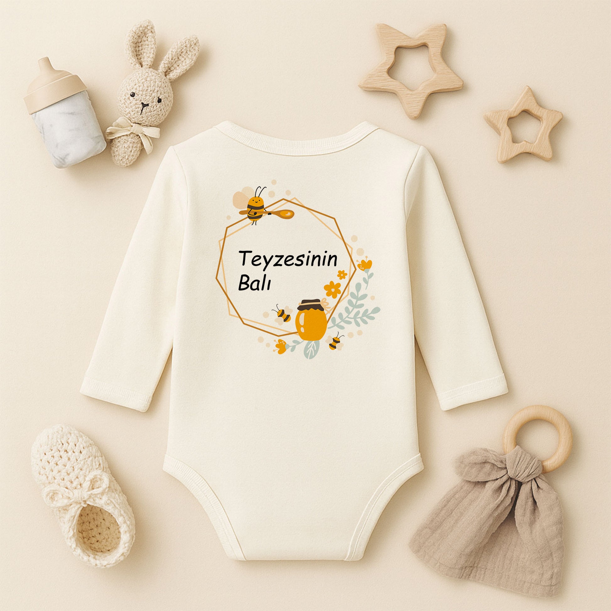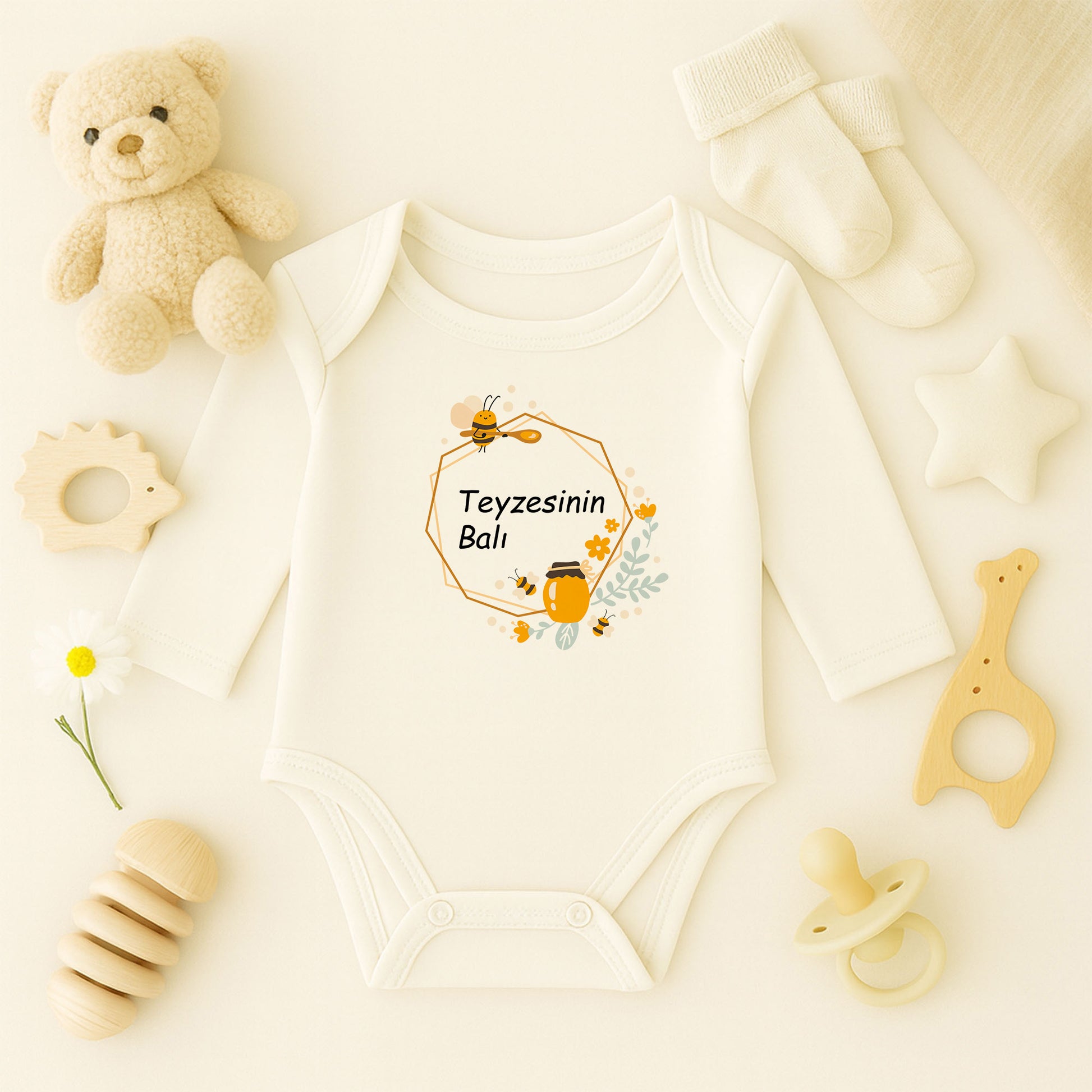 Kişiye Özel Arı & Bal Çerçeveli Bebek Zıbını | 1–36 Ay, DTF Baskı, Hassas Cilt Uyumlu